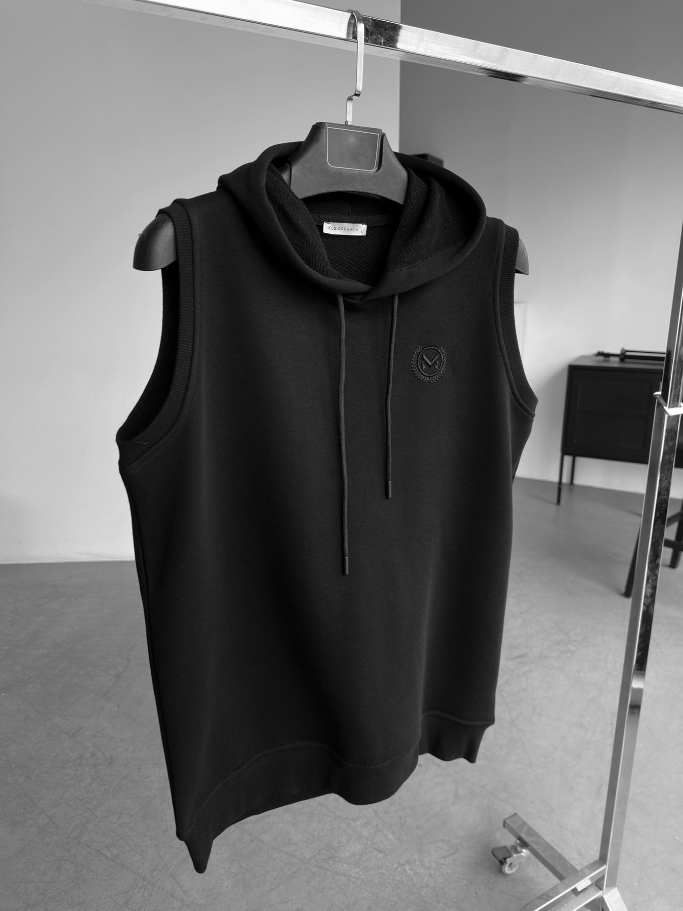 Loose Fit Sleeveless Hoodie - Black