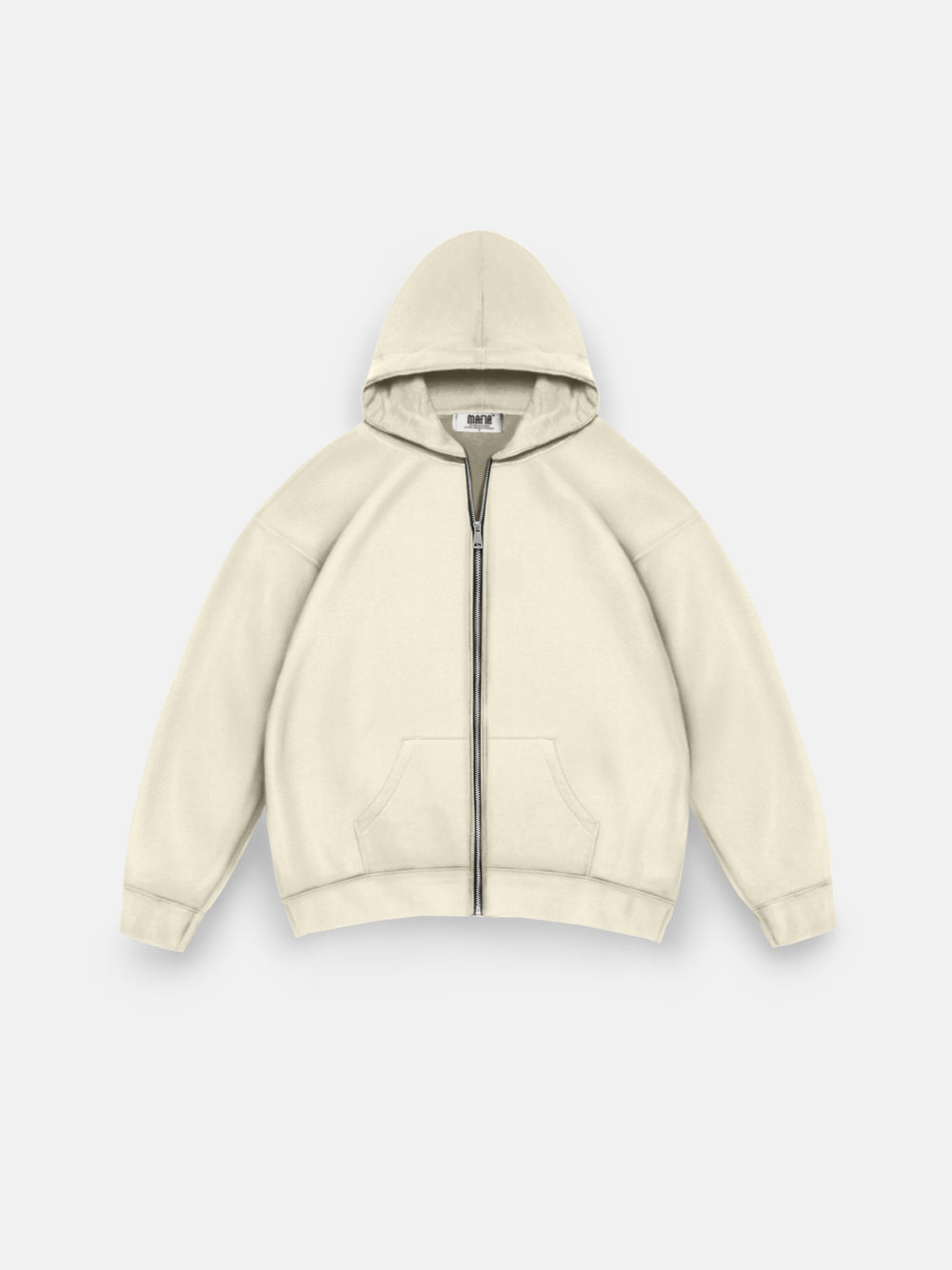 Our basic zipper hoodie features an oversized, unisex fit, ensuring both comfort and timeless style. Avoid excessive spinning in the washing machine to maintain its quality.