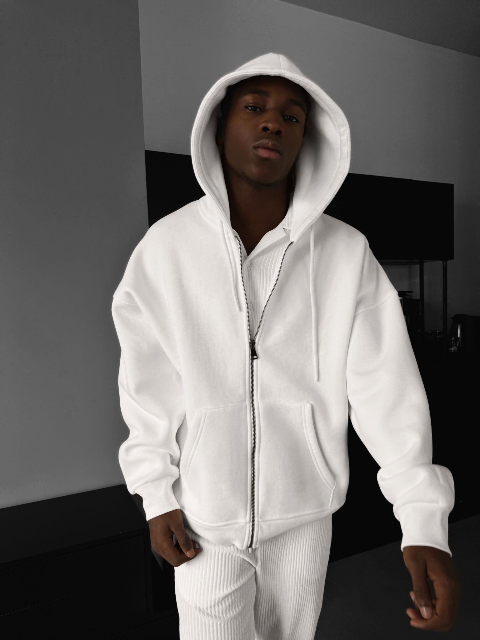 Our basic zipper hoodie features an oversized, unisex fit, ensuring both comfort and timeless style. Avoid excessive spinning in the washing machine to maintain its quality.