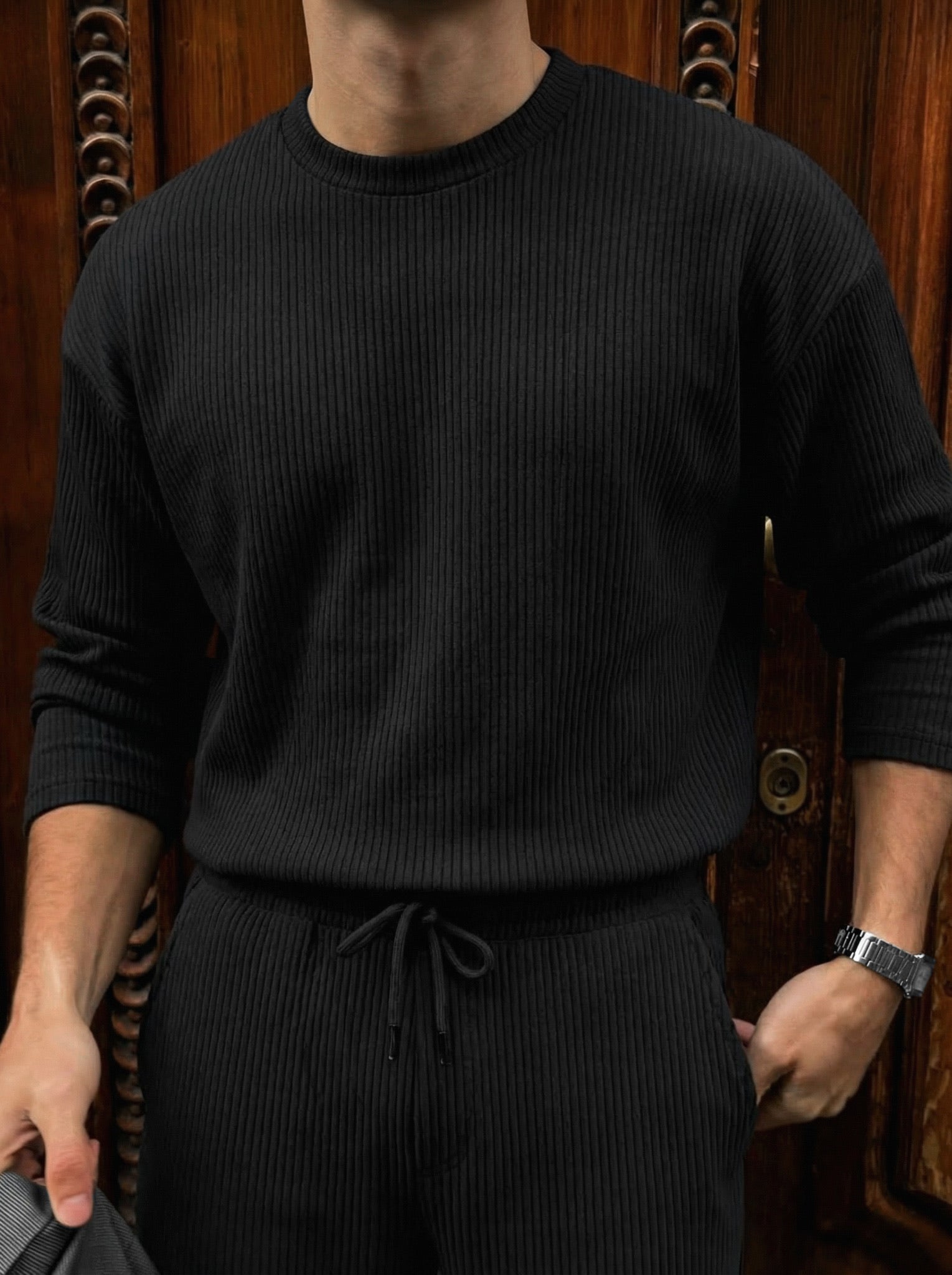 Oversize Ribbed Long Arm T-shirt - Black