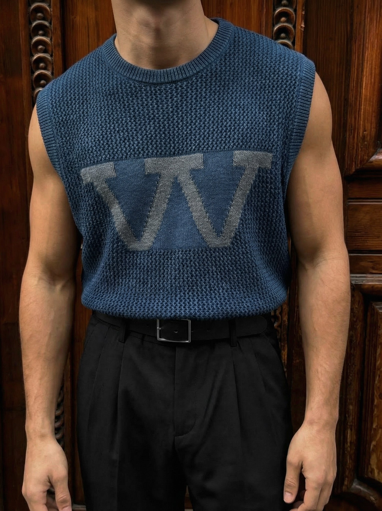 Oversize Washed Knit 'W‘ Tanktop - Blue
