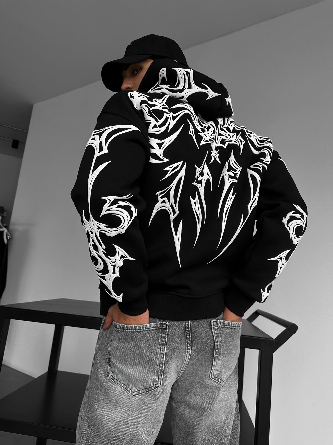 Oversize Mafia Tribal Hoodie - Black