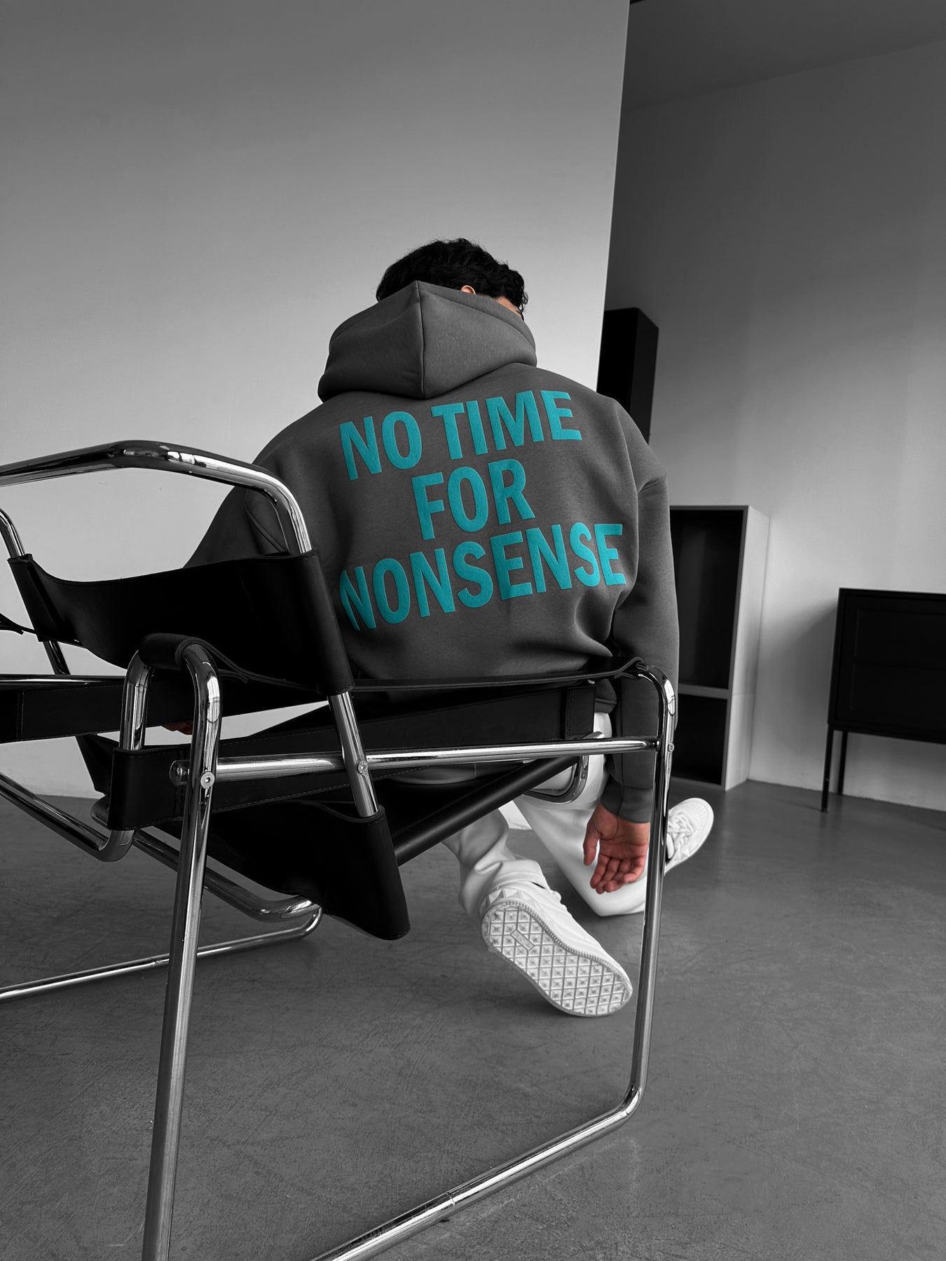 Oversize “No Time for Nonsense” Hoodie - Anthracite and Blue