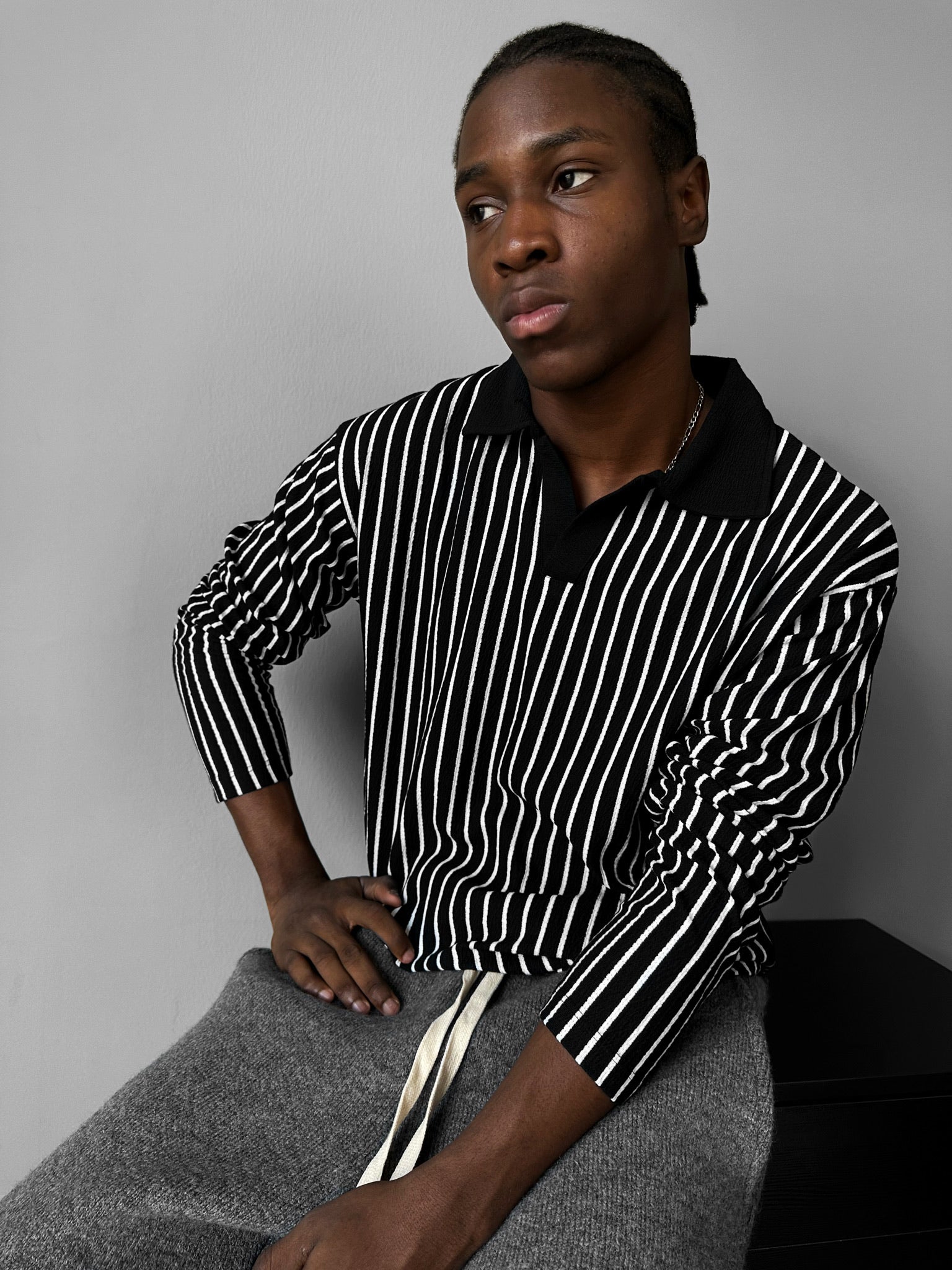 Striped Polo Sweatshirt - Black