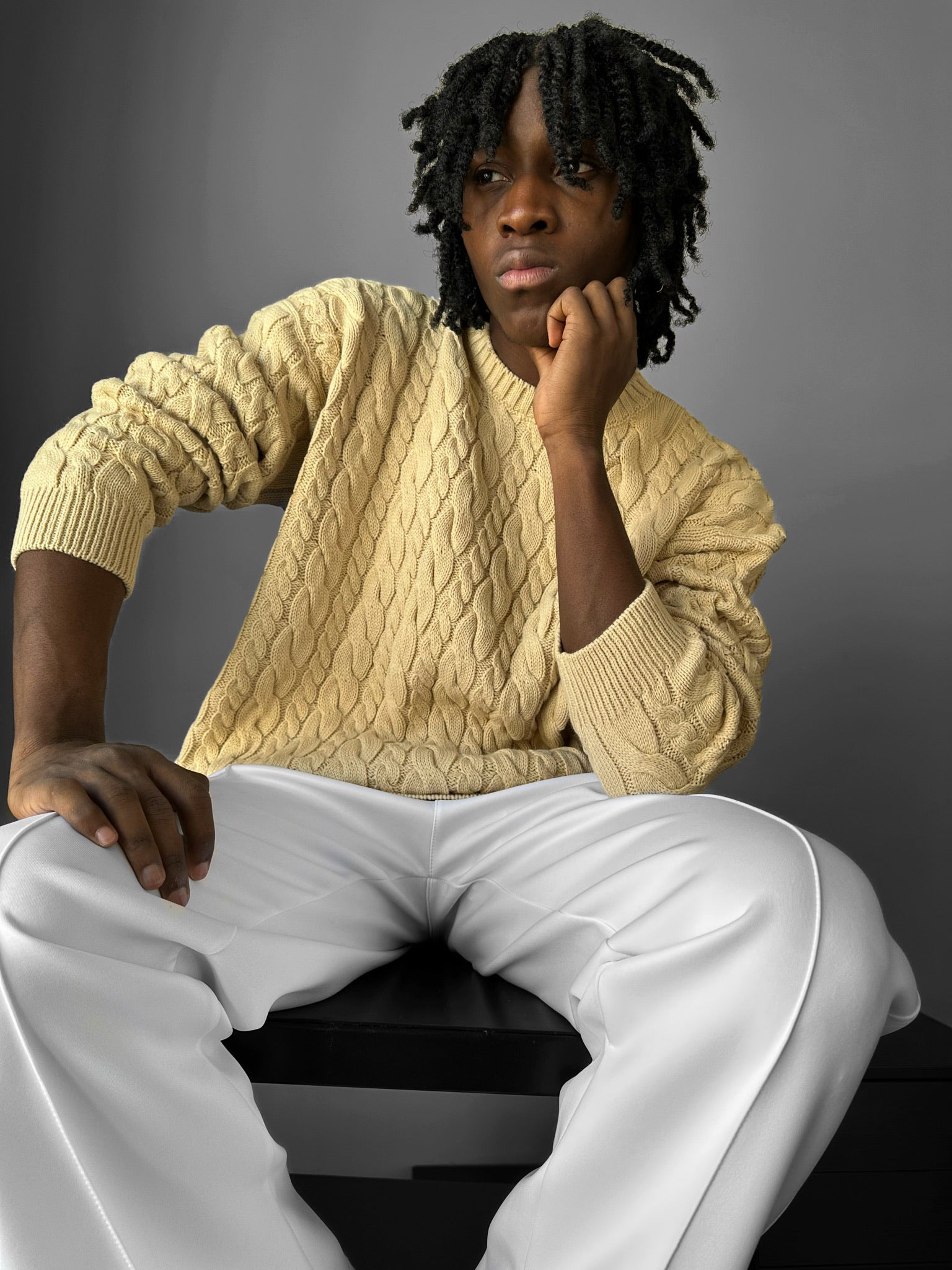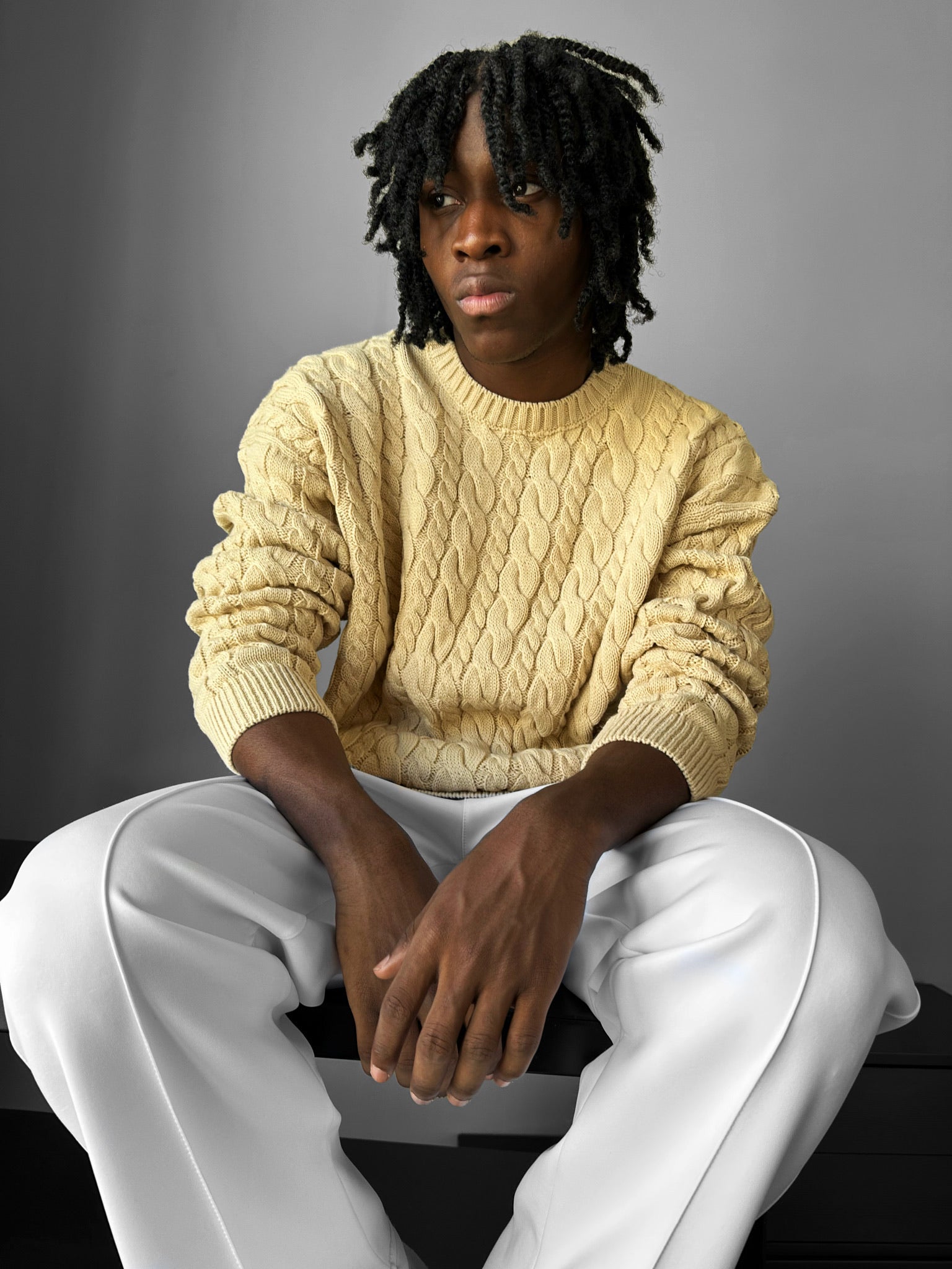 Oversize Knit Braid Sweater - Beige