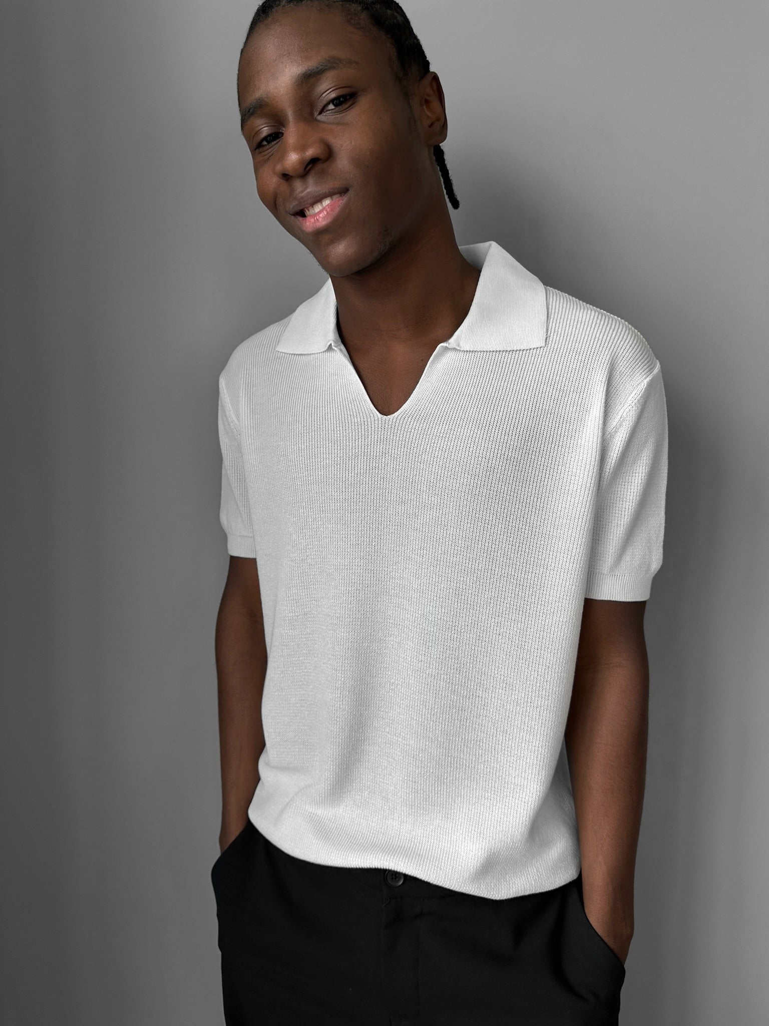 Loose fit fine knit collar T-Shirt - Ecru