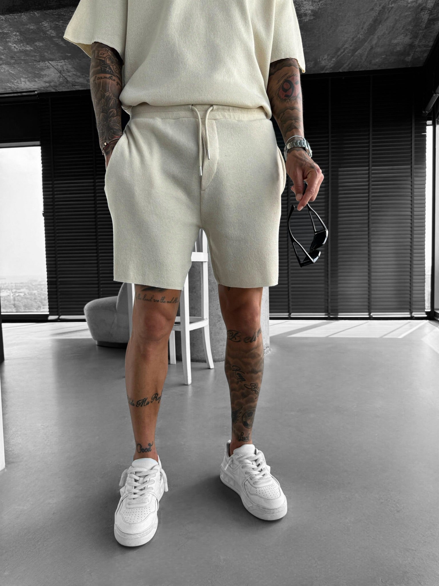Loose Fit Knit Shorts - Cremé