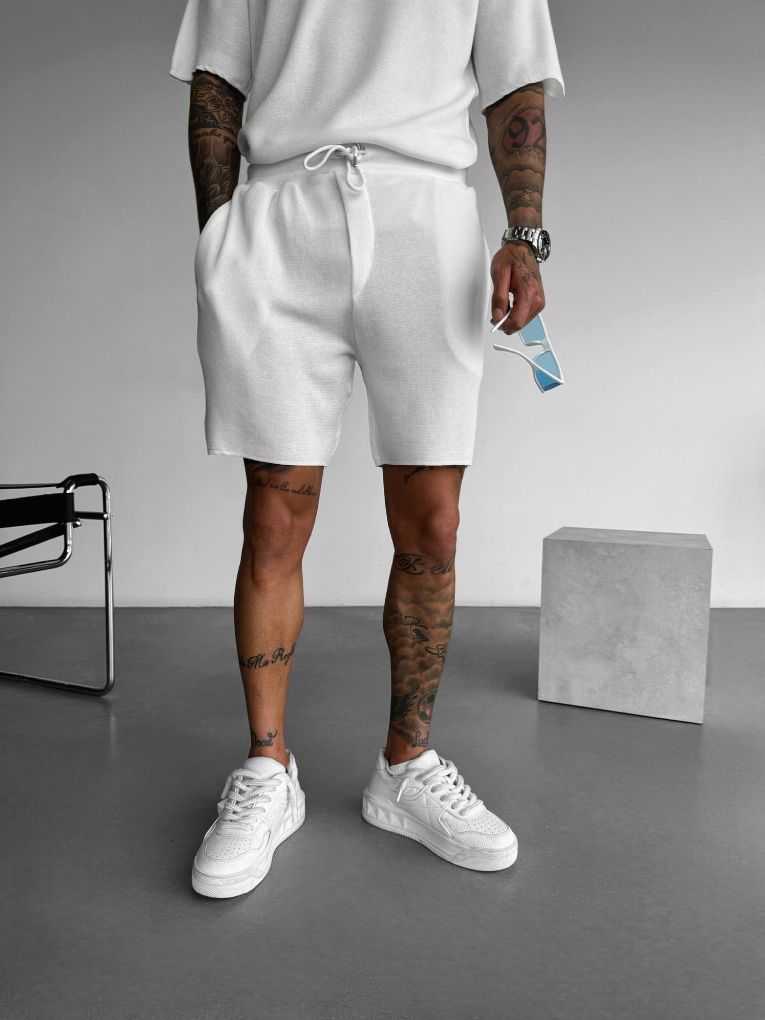 Loose Fit Knit Shorts - White