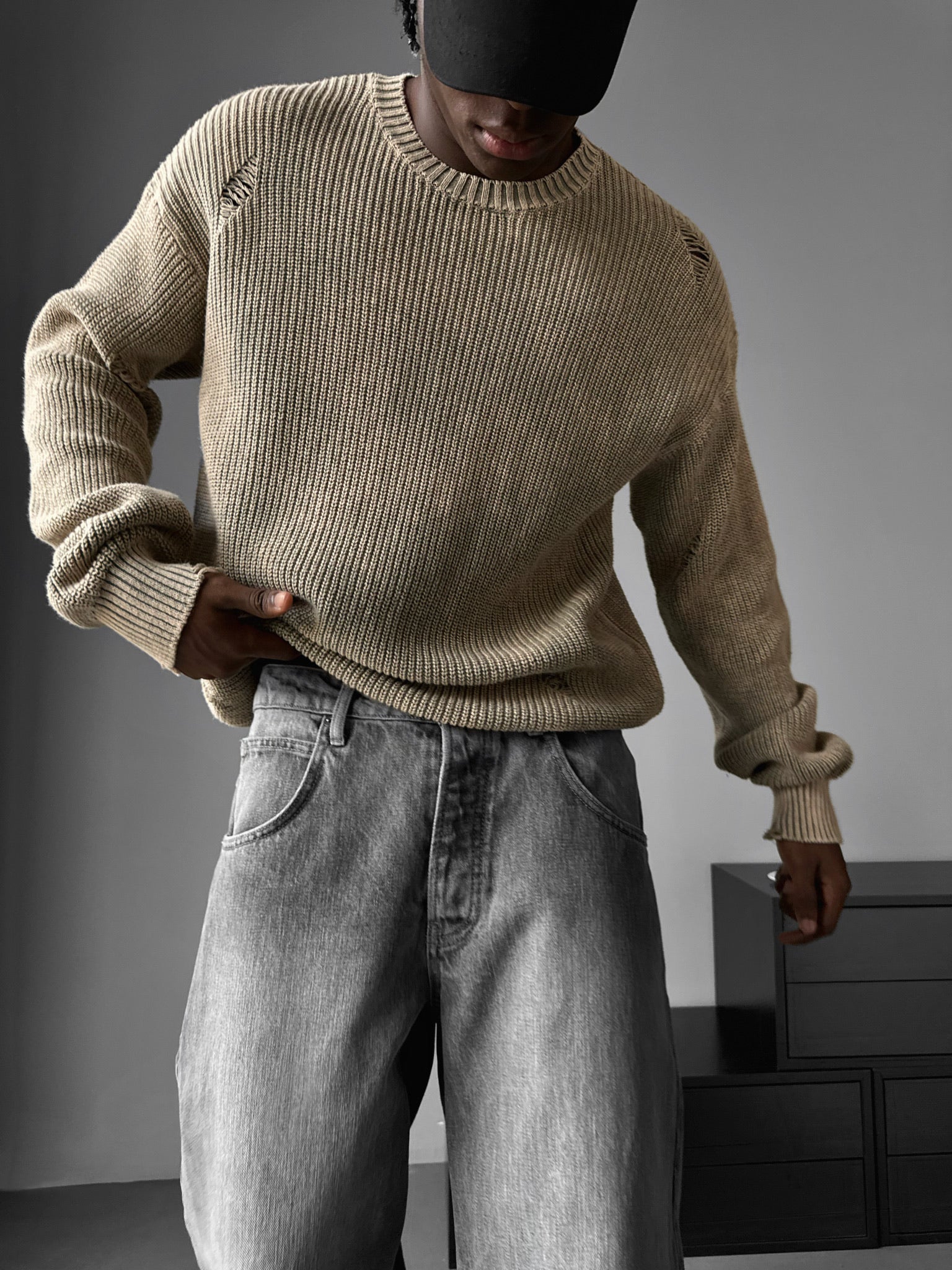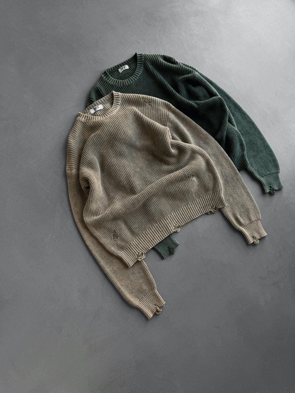 Loose Fit Knit Torn Sweater - Stone