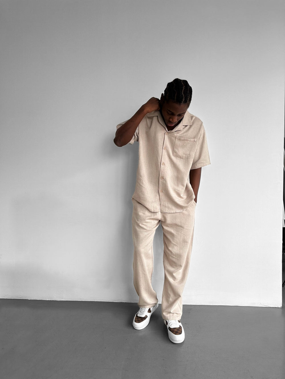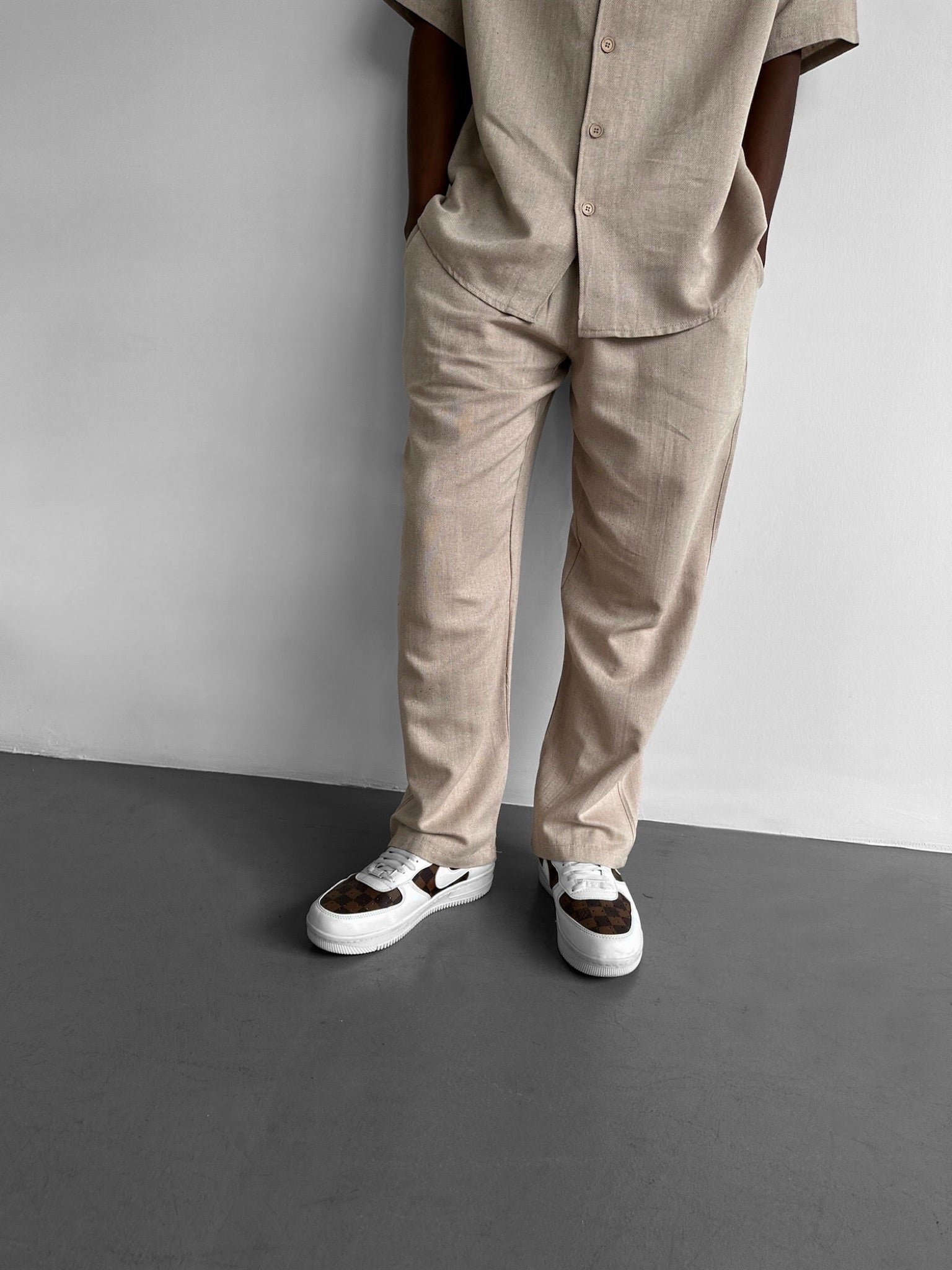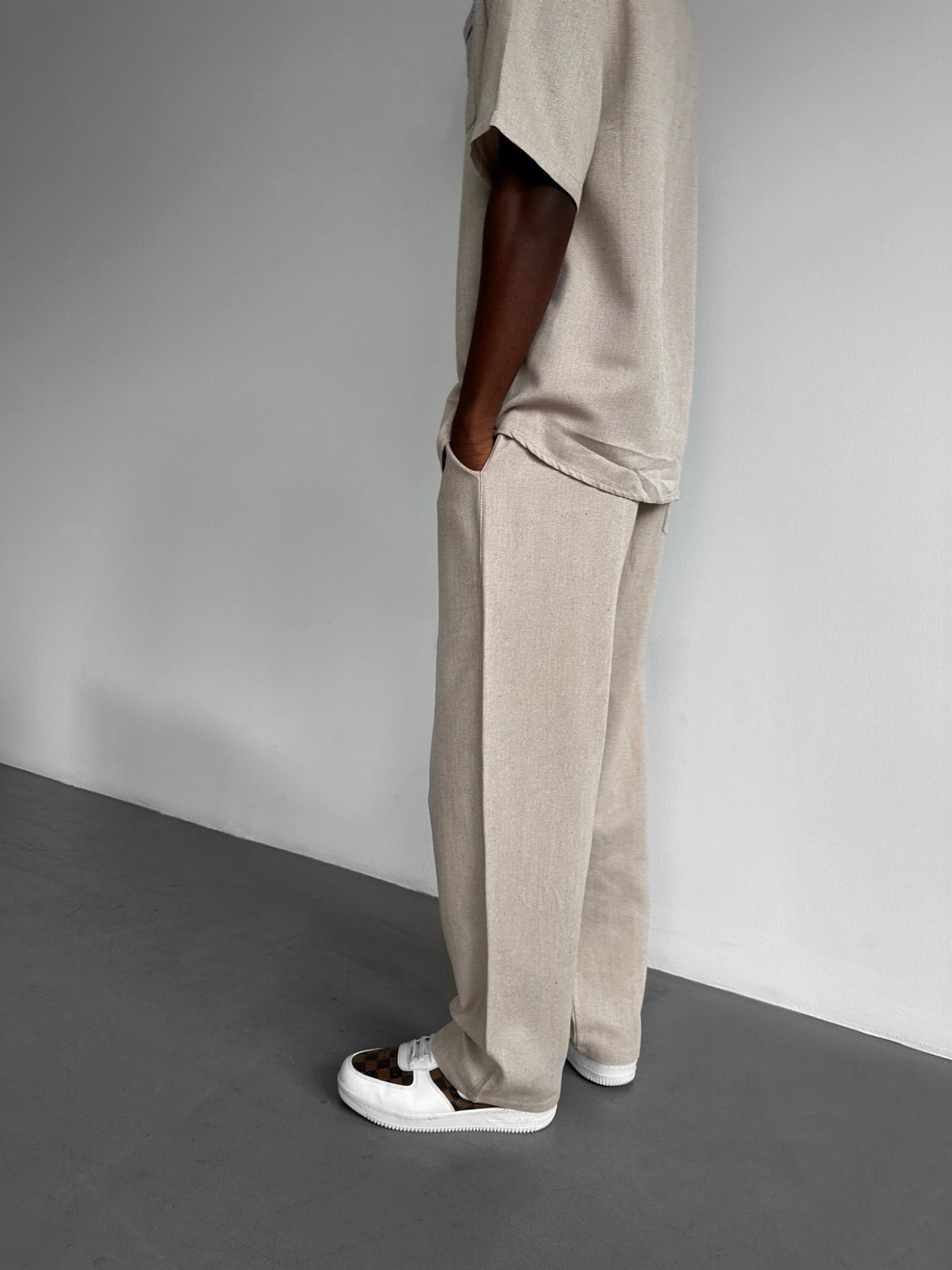 Loose Fit Linen Trousers - Stone