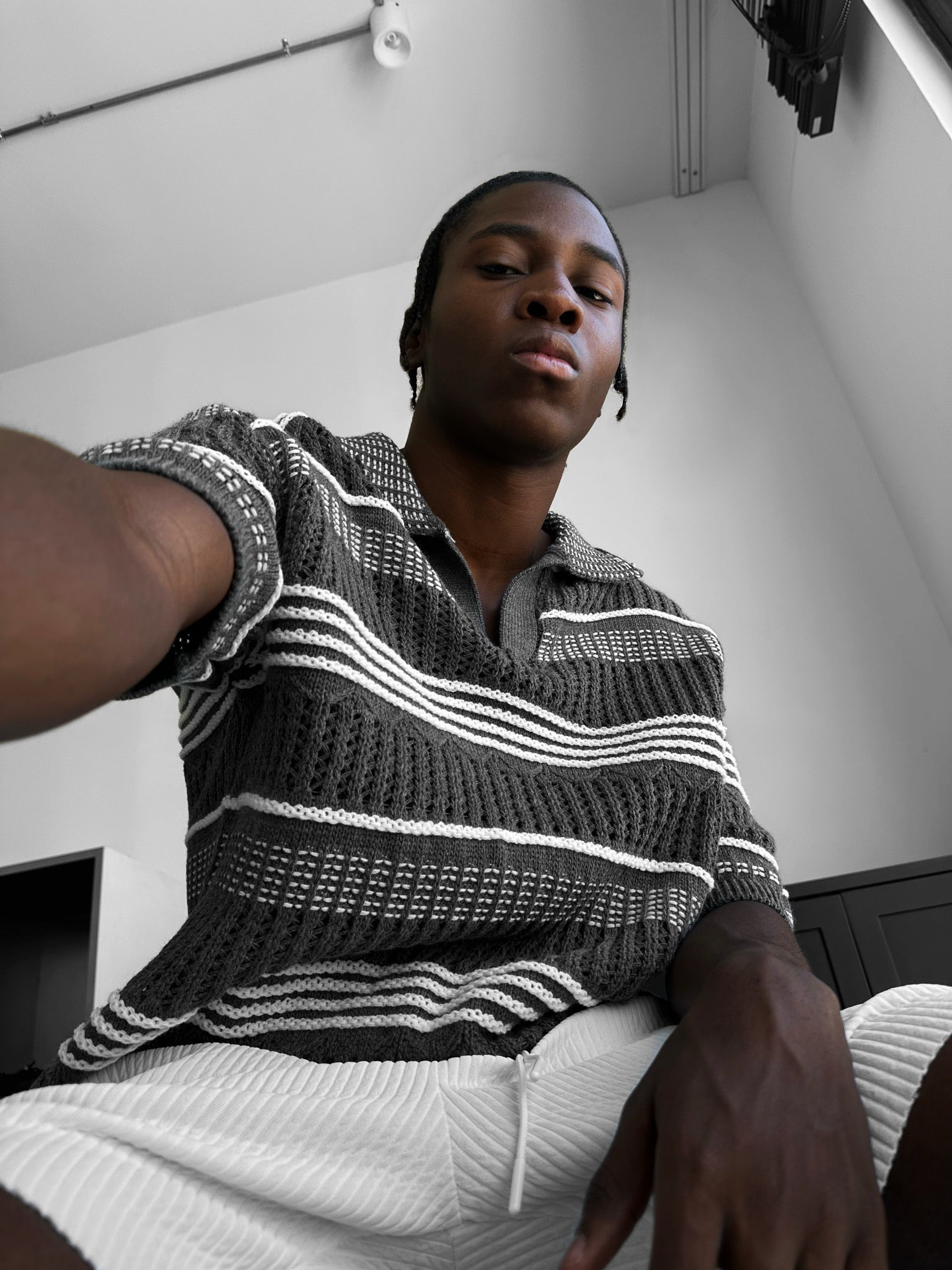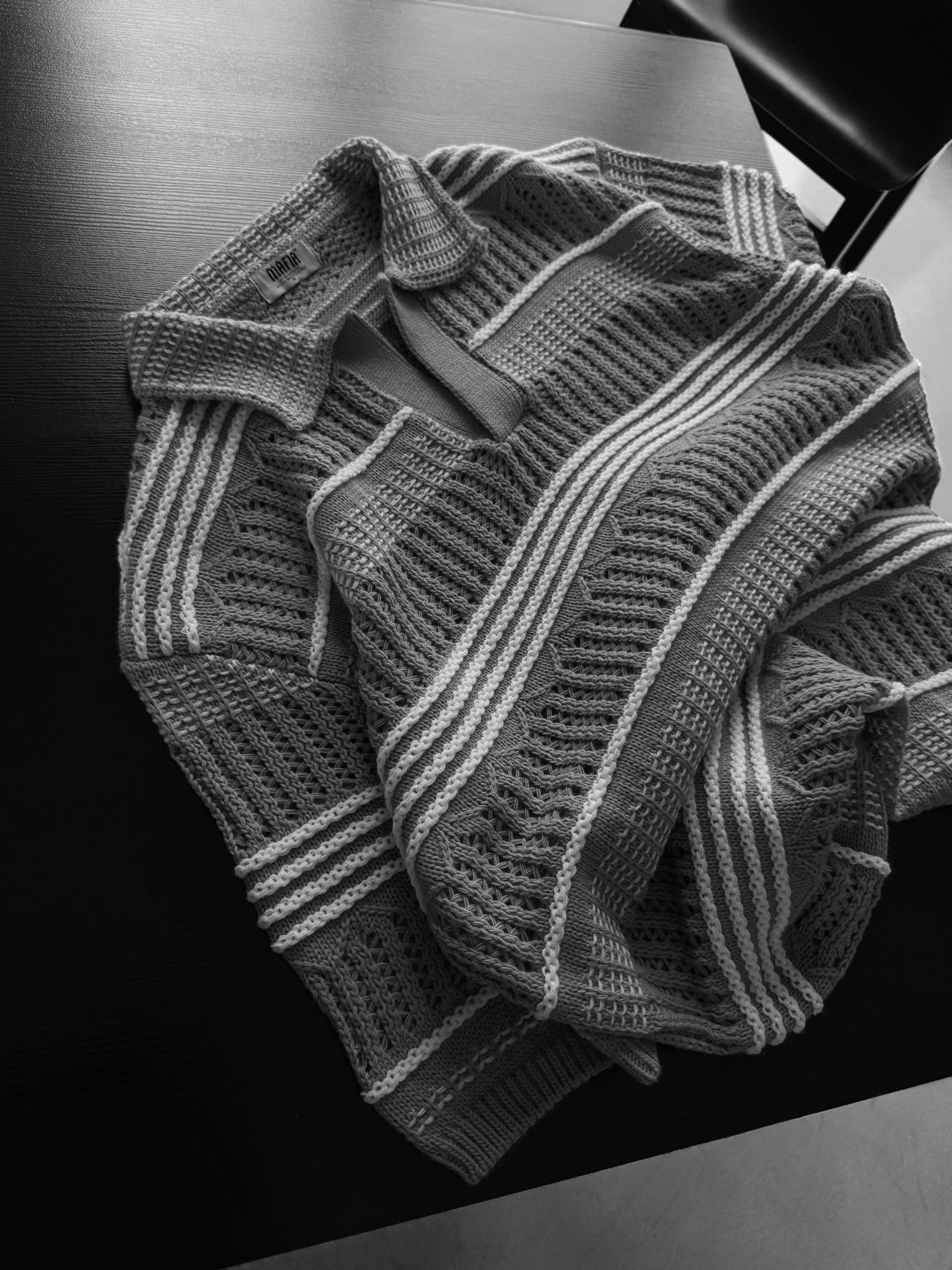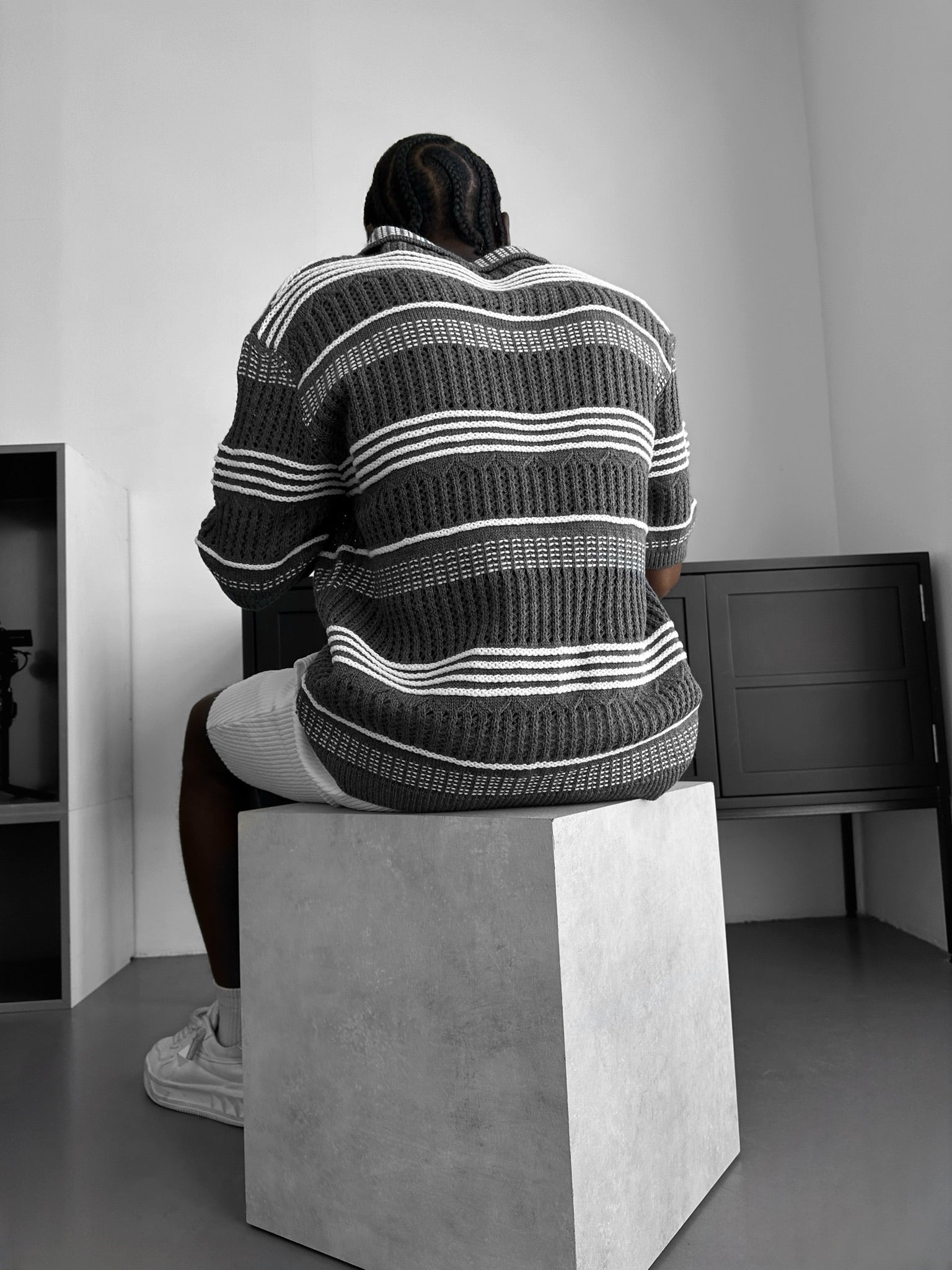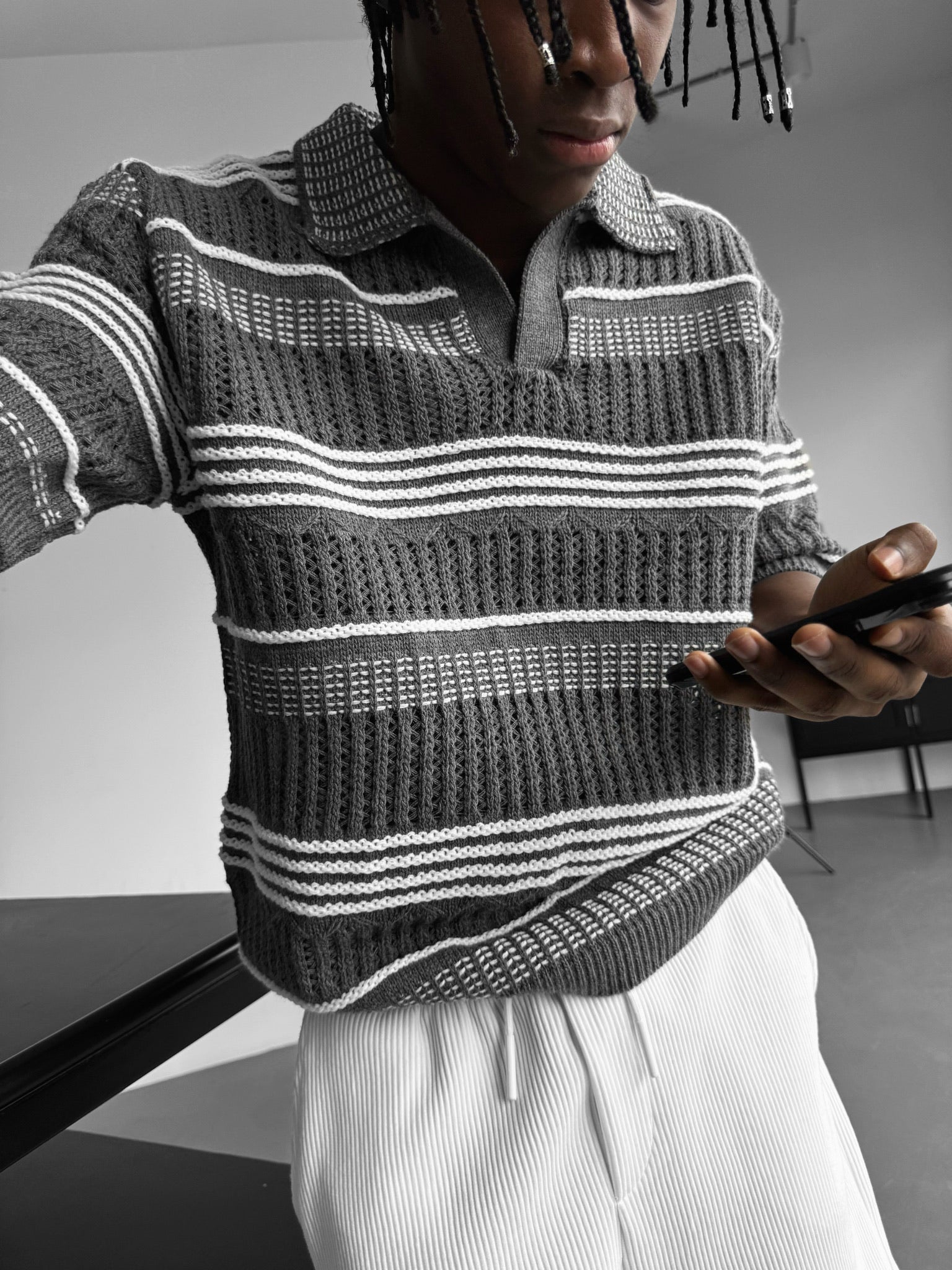 Loose Fit Patterned collar knit T-Shirt - Anthracite