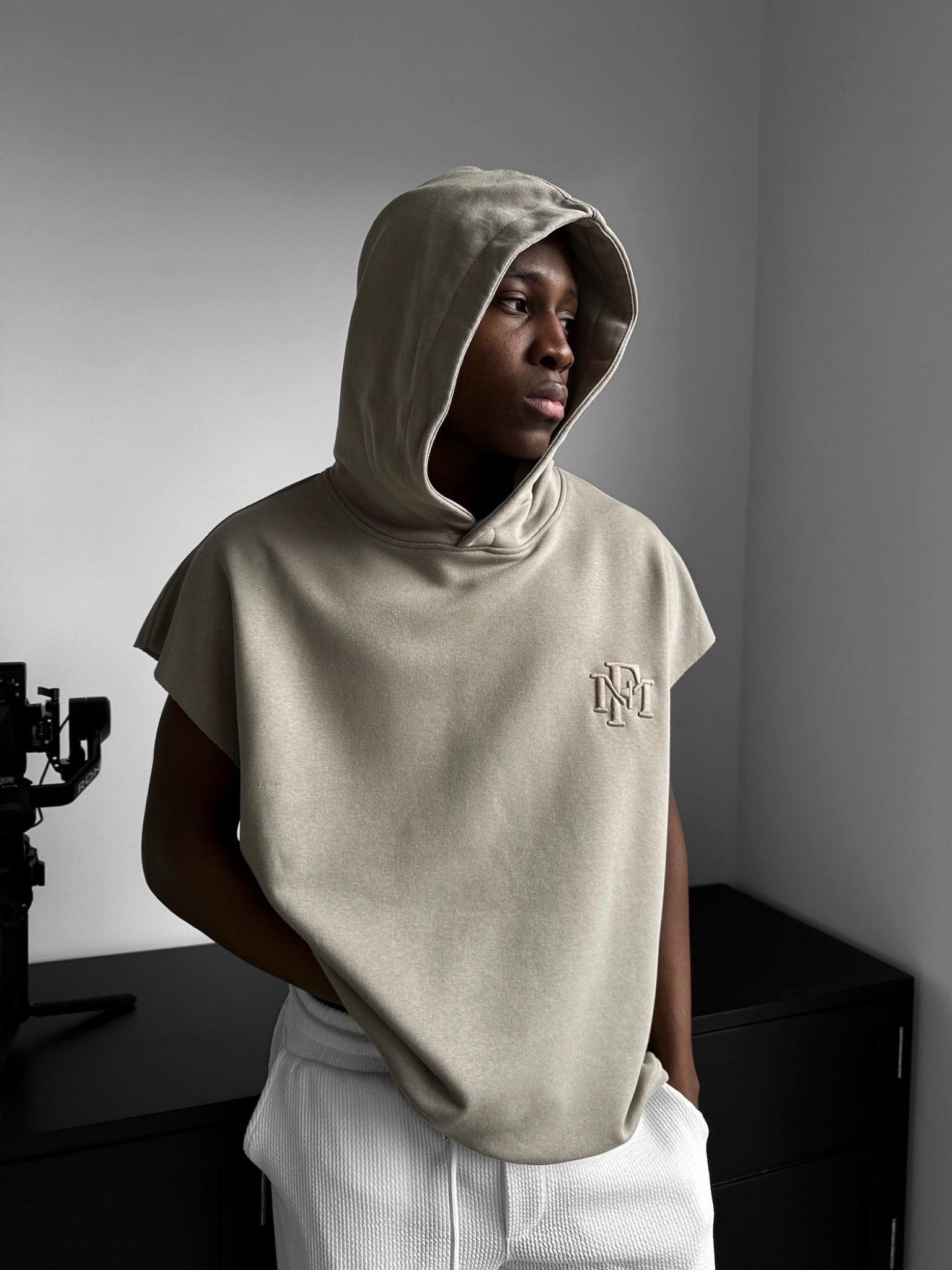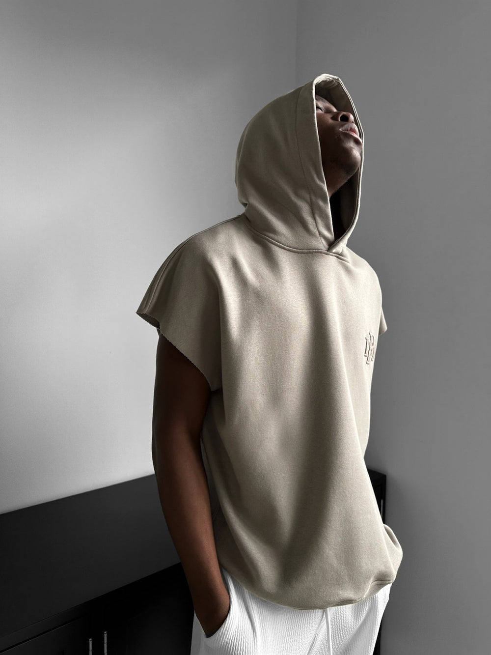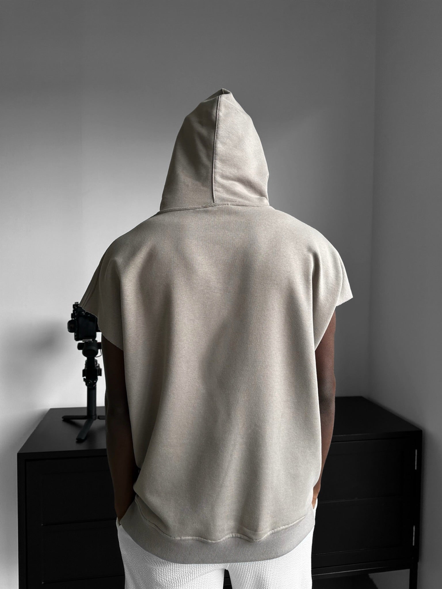 Loose Fit Sleeveless Hoodie - Warm Grey Pale