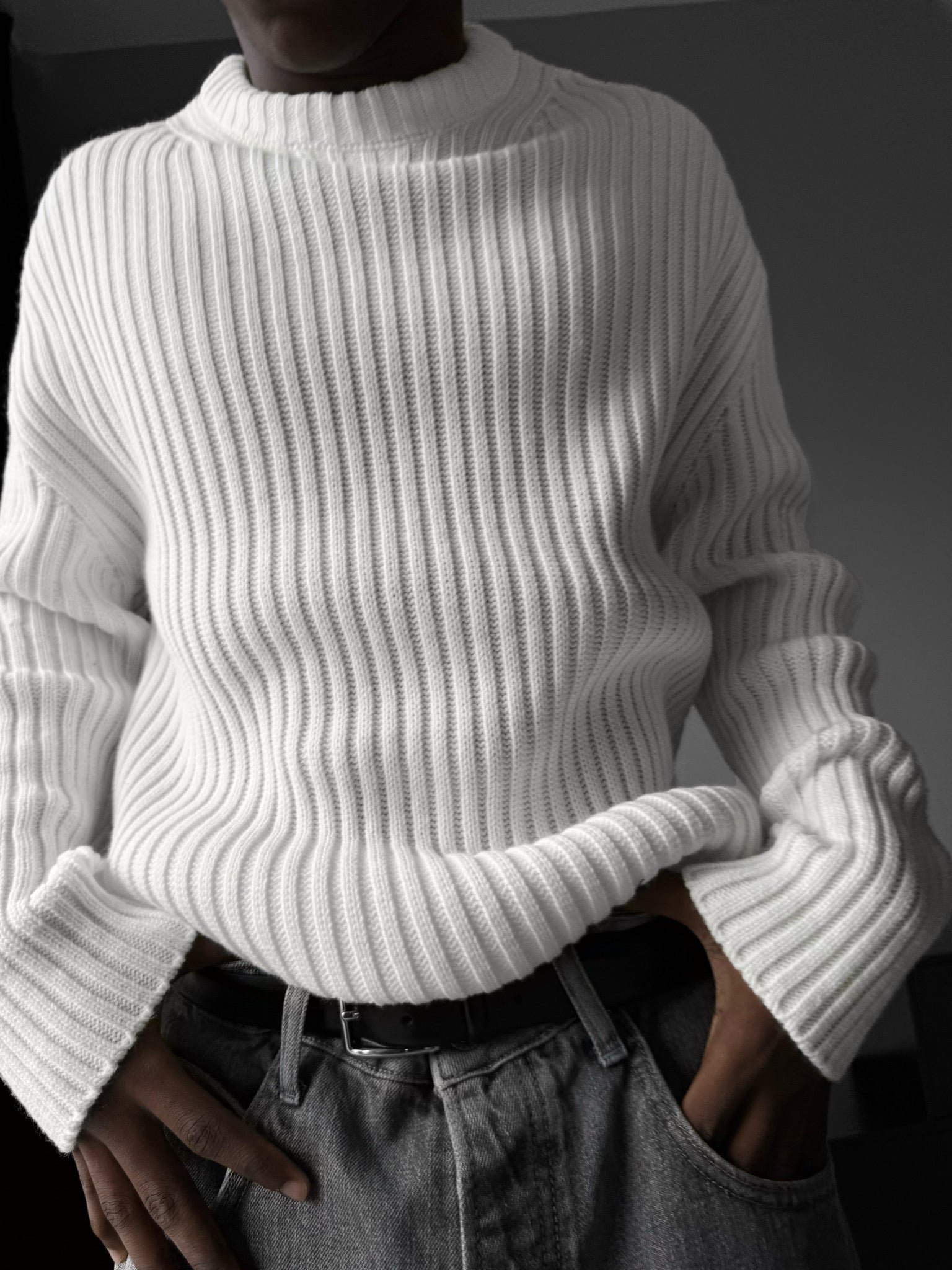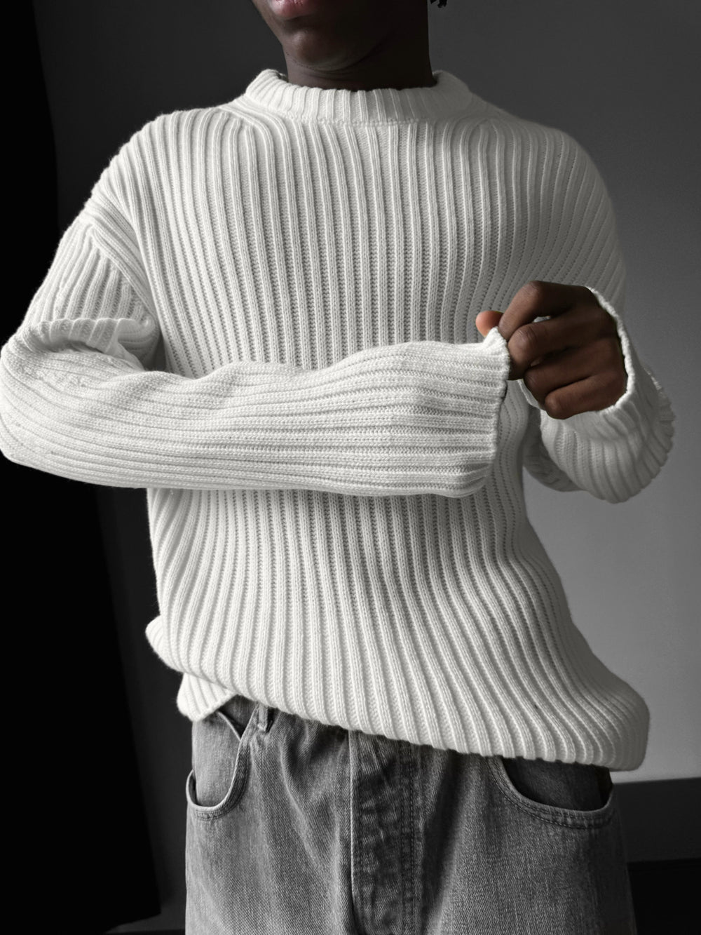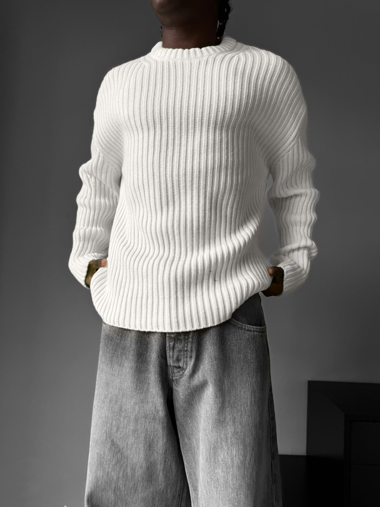 Loose Fit Striped Structure Pullover - Ecru