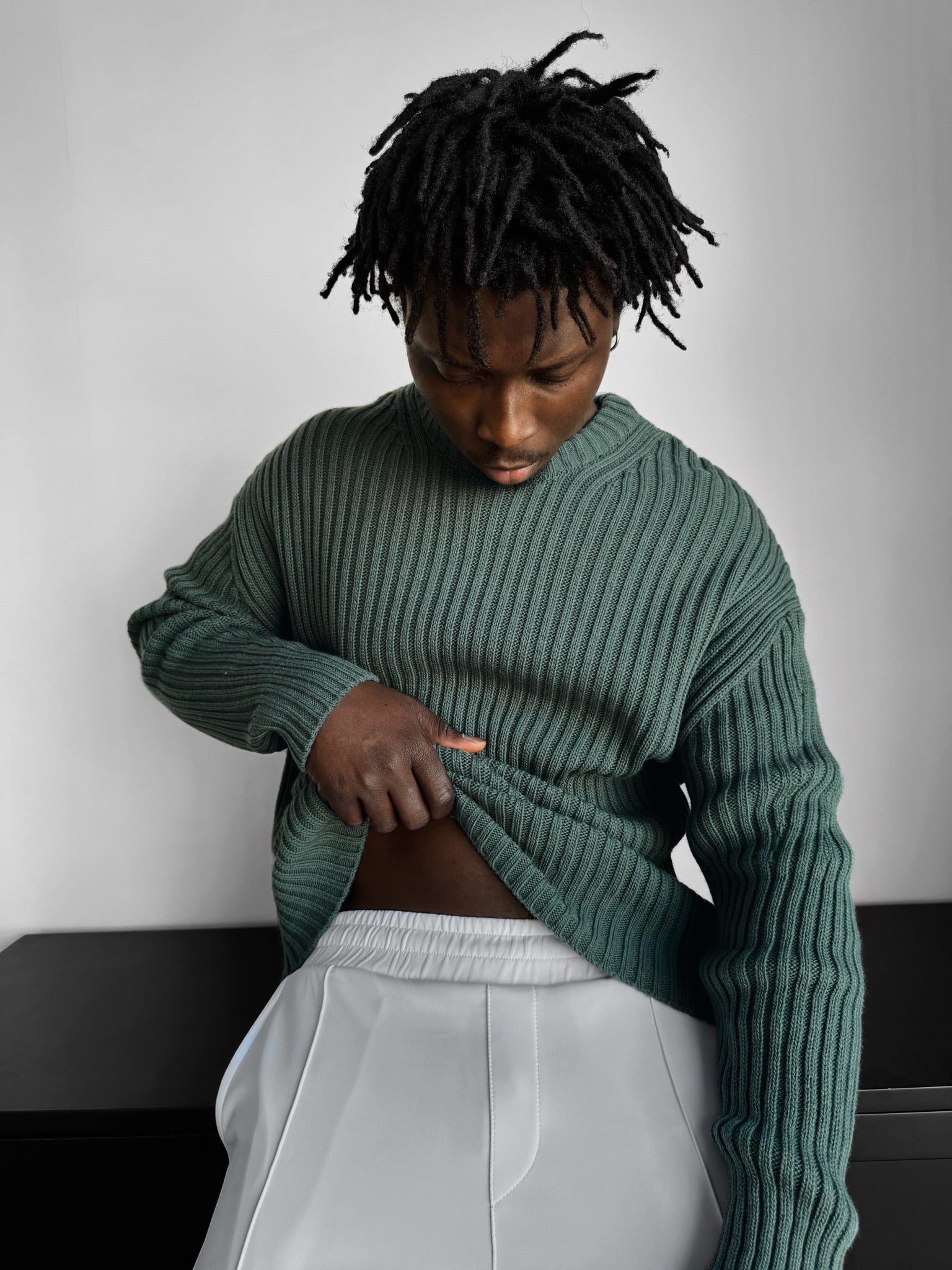 Loose Fit Striped Structure Pullover - Petrol
