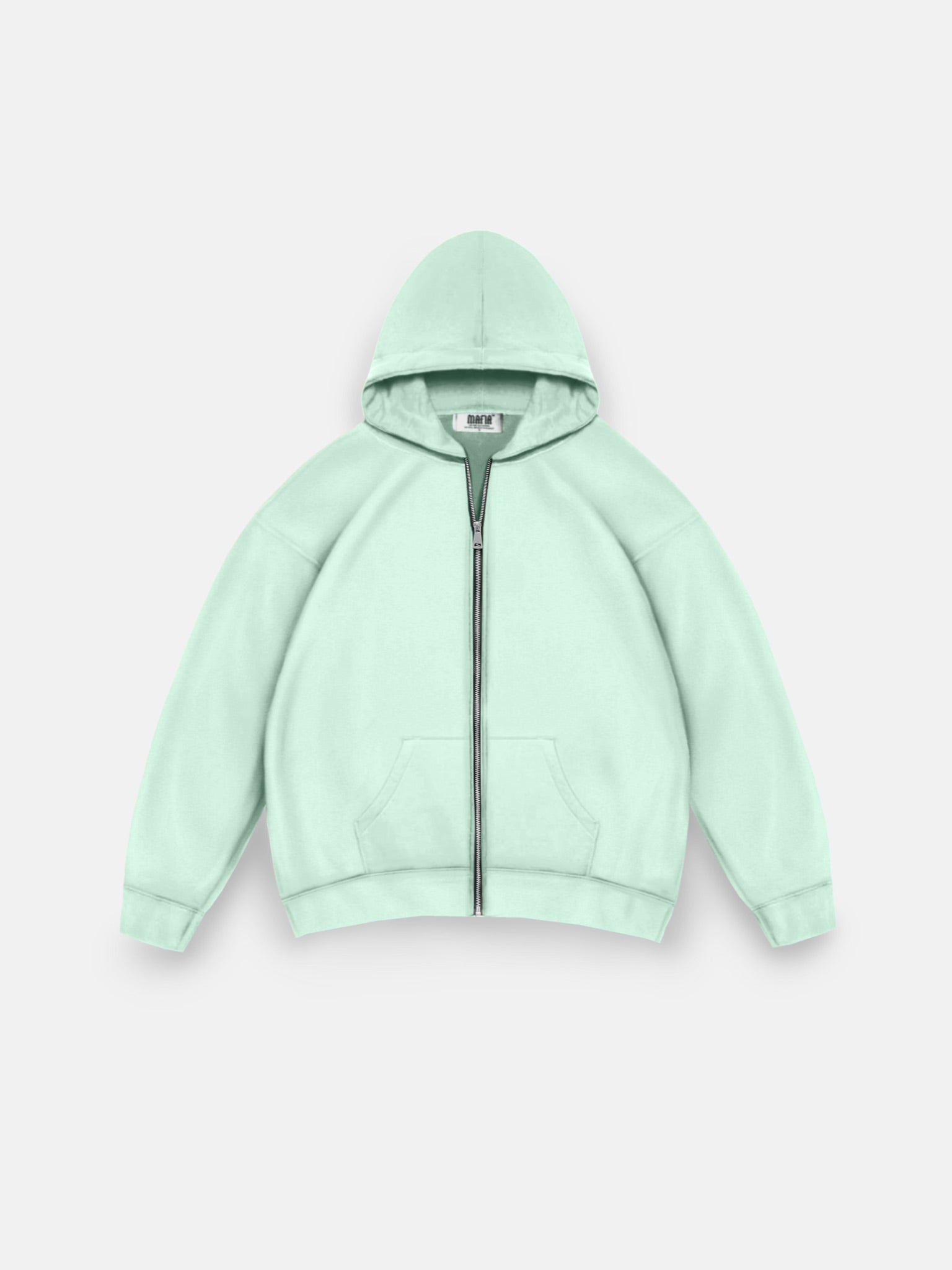 Our basic zipper hoodie features an oversized, unisex fit, ensuring both comfort and timeless style. Avoid excessive spinning in the washing machine to maintain its quality.