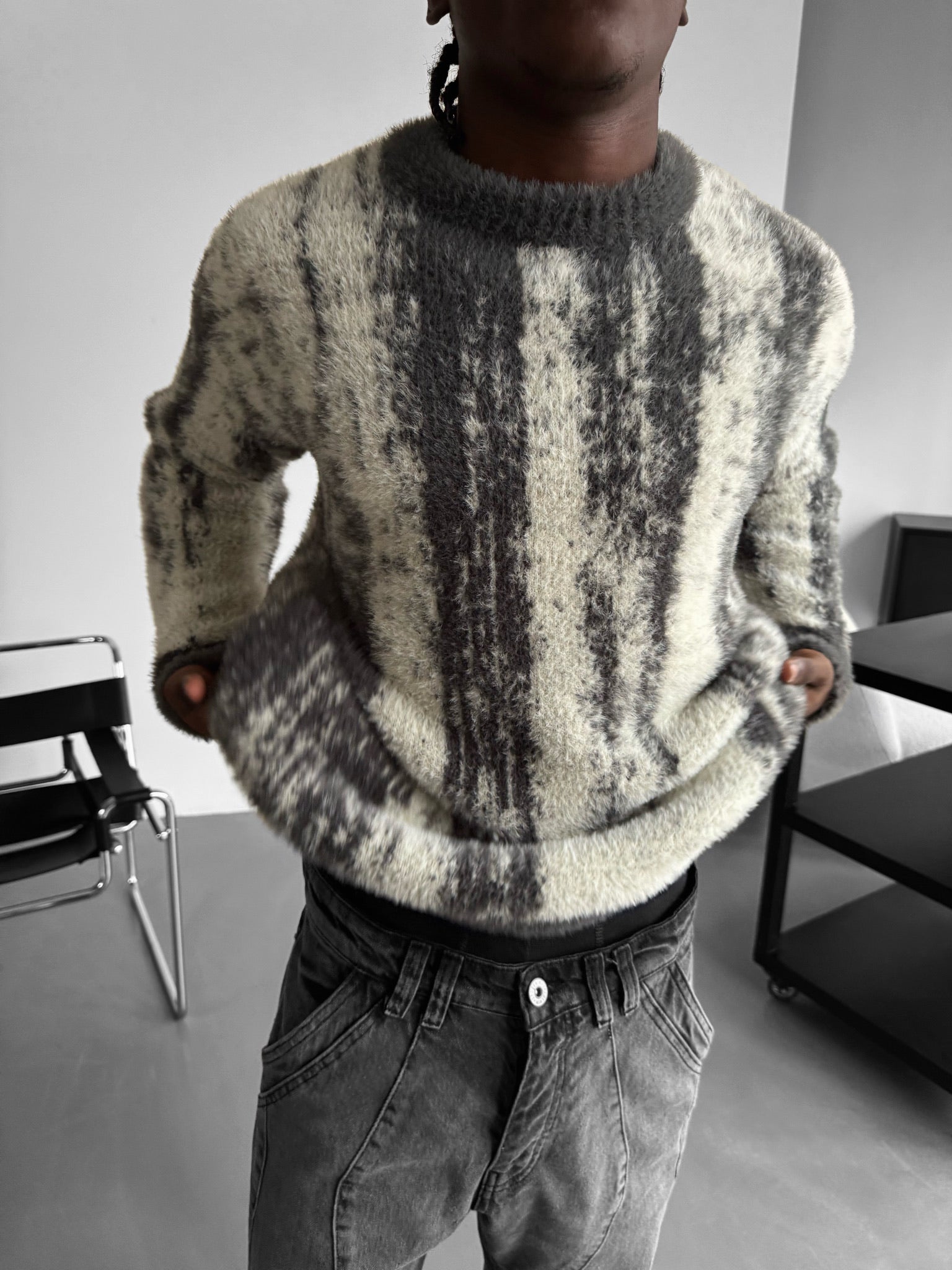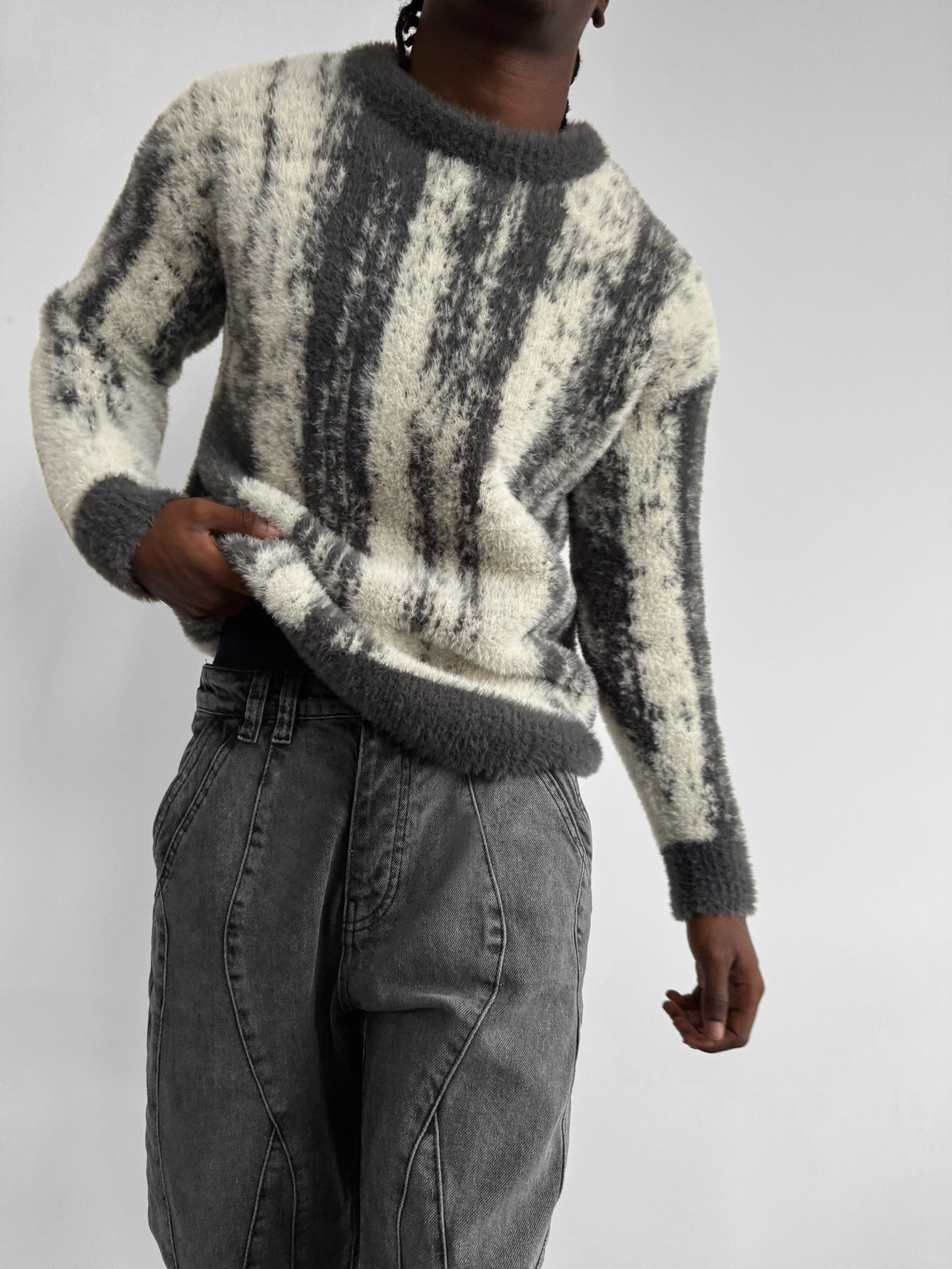 Oversize Brushstroke Effect Knit Pullover - Dark Grey
