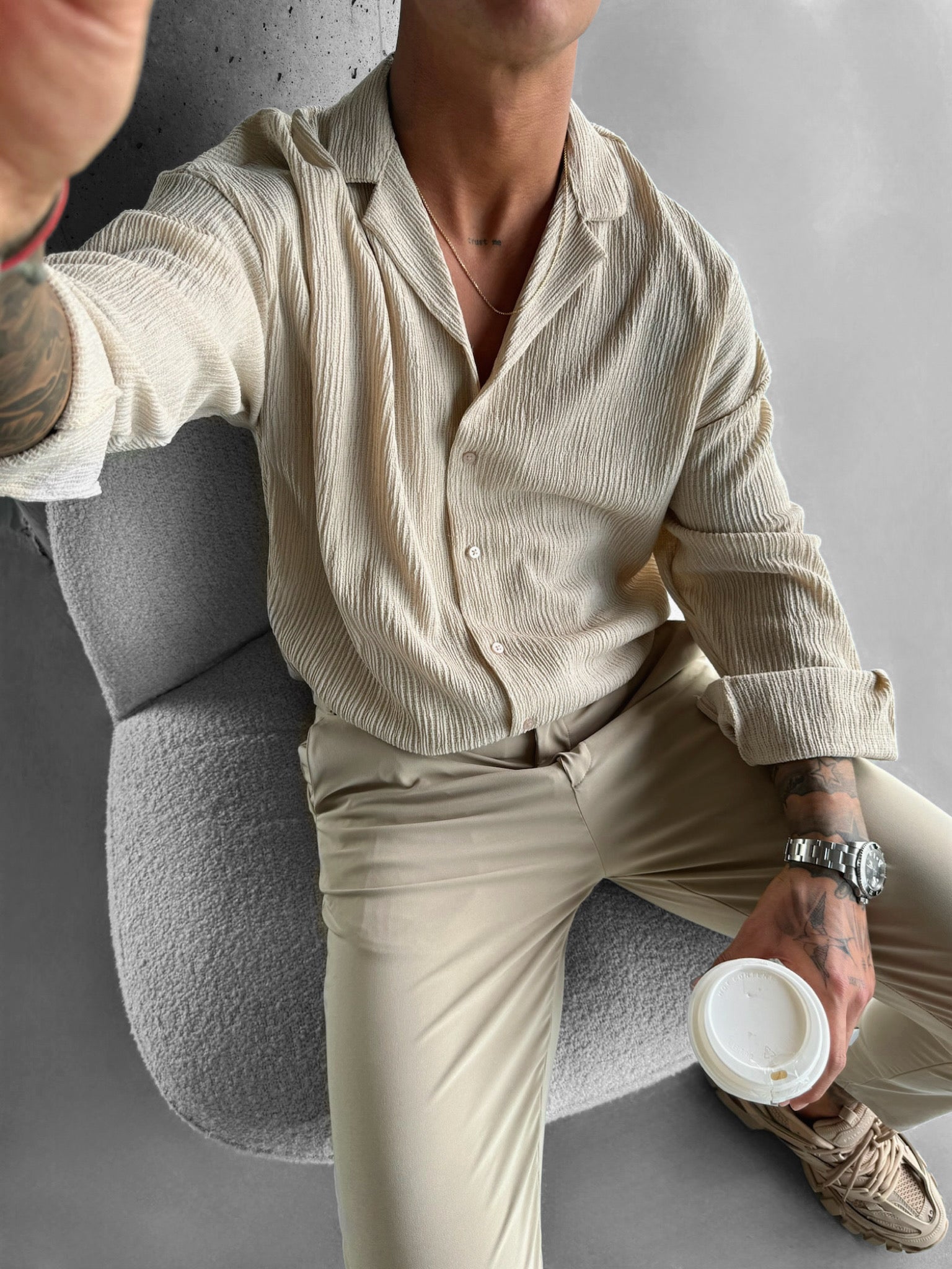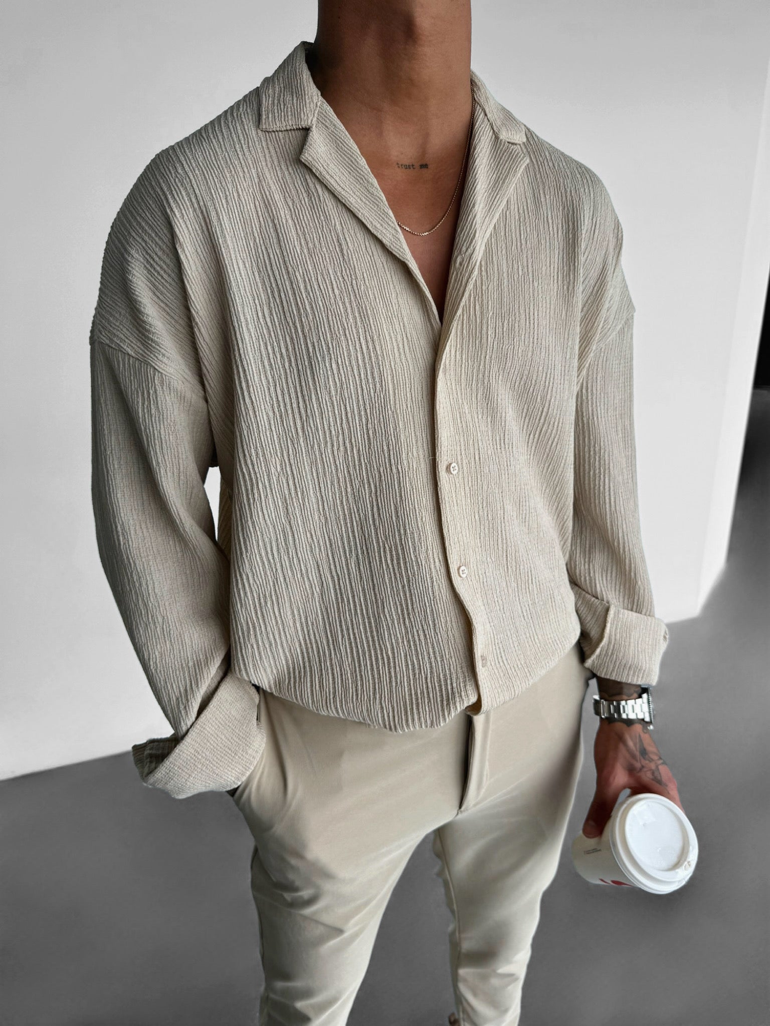 Oversize Crepe Long Arm Shirt - Beige