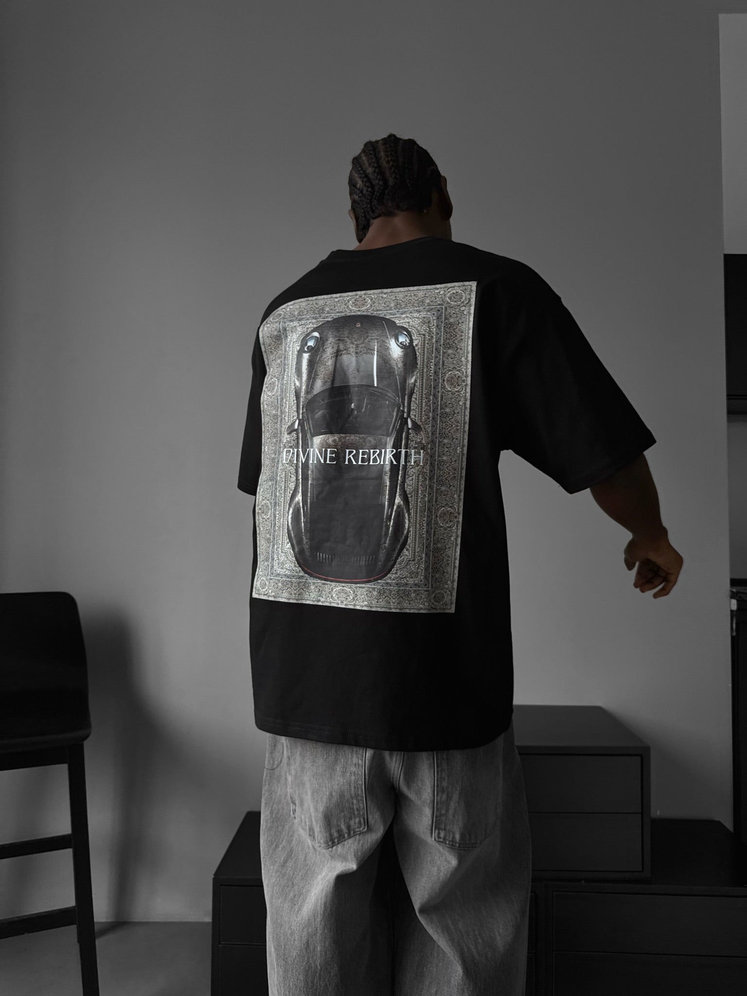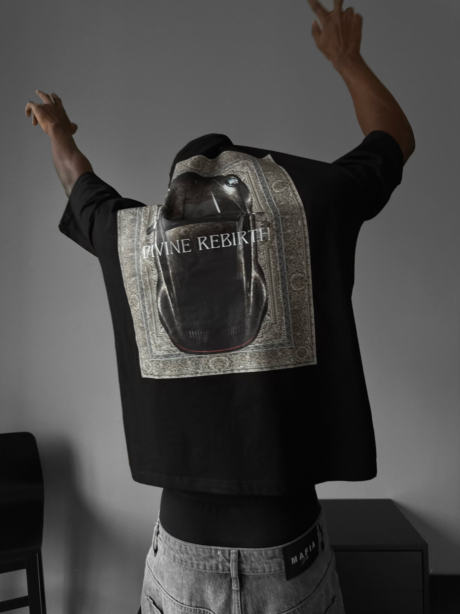 Oversize 'Divine Rebirth' T-Shirt - Black