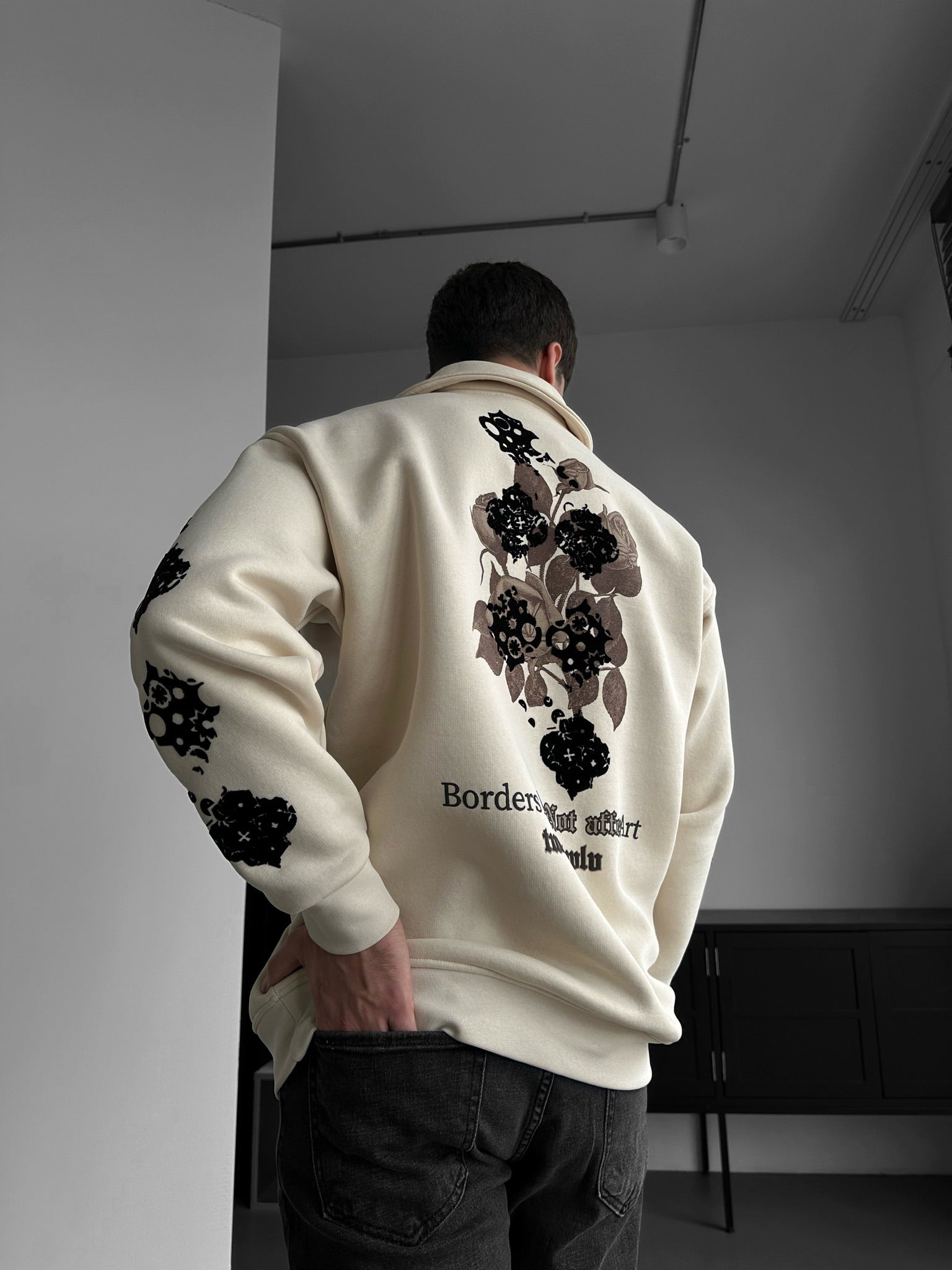Oversize Half-Zip Graphic Sweatshirt - Beige