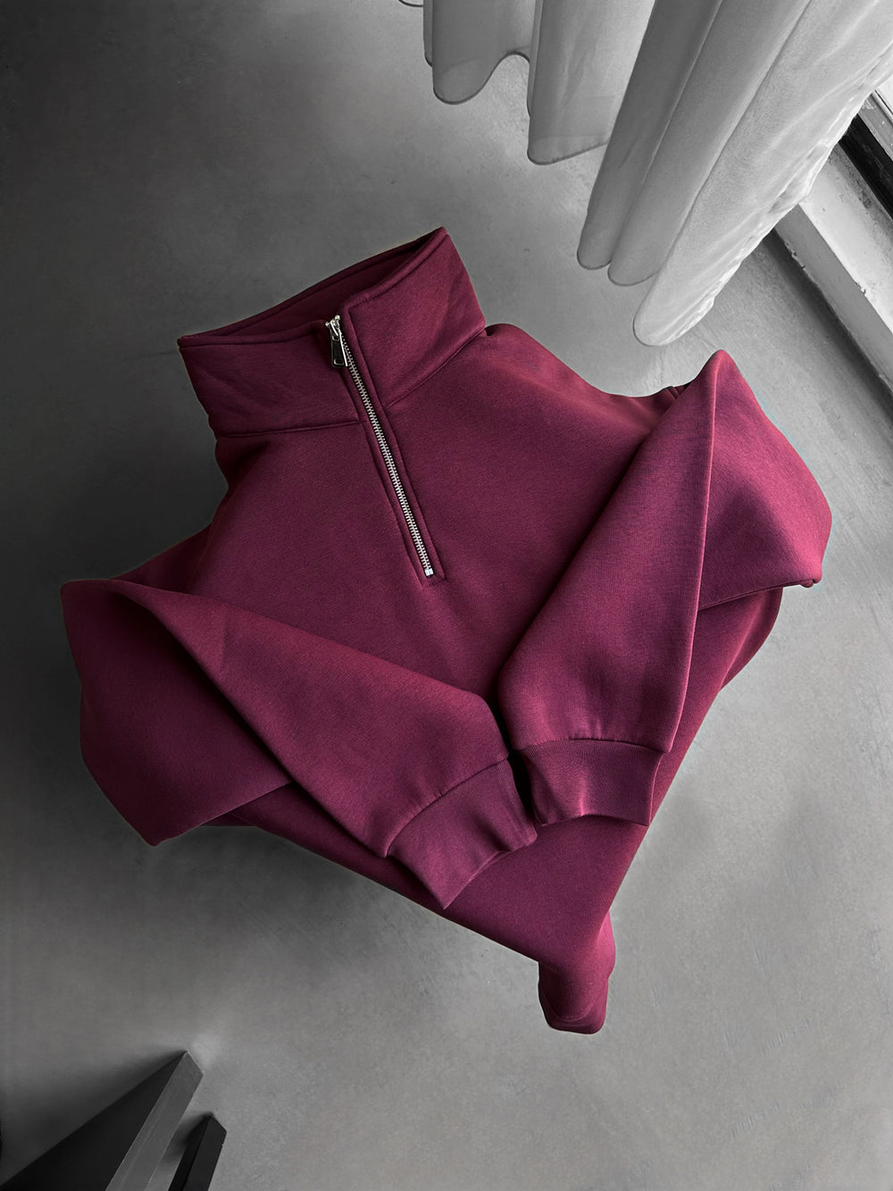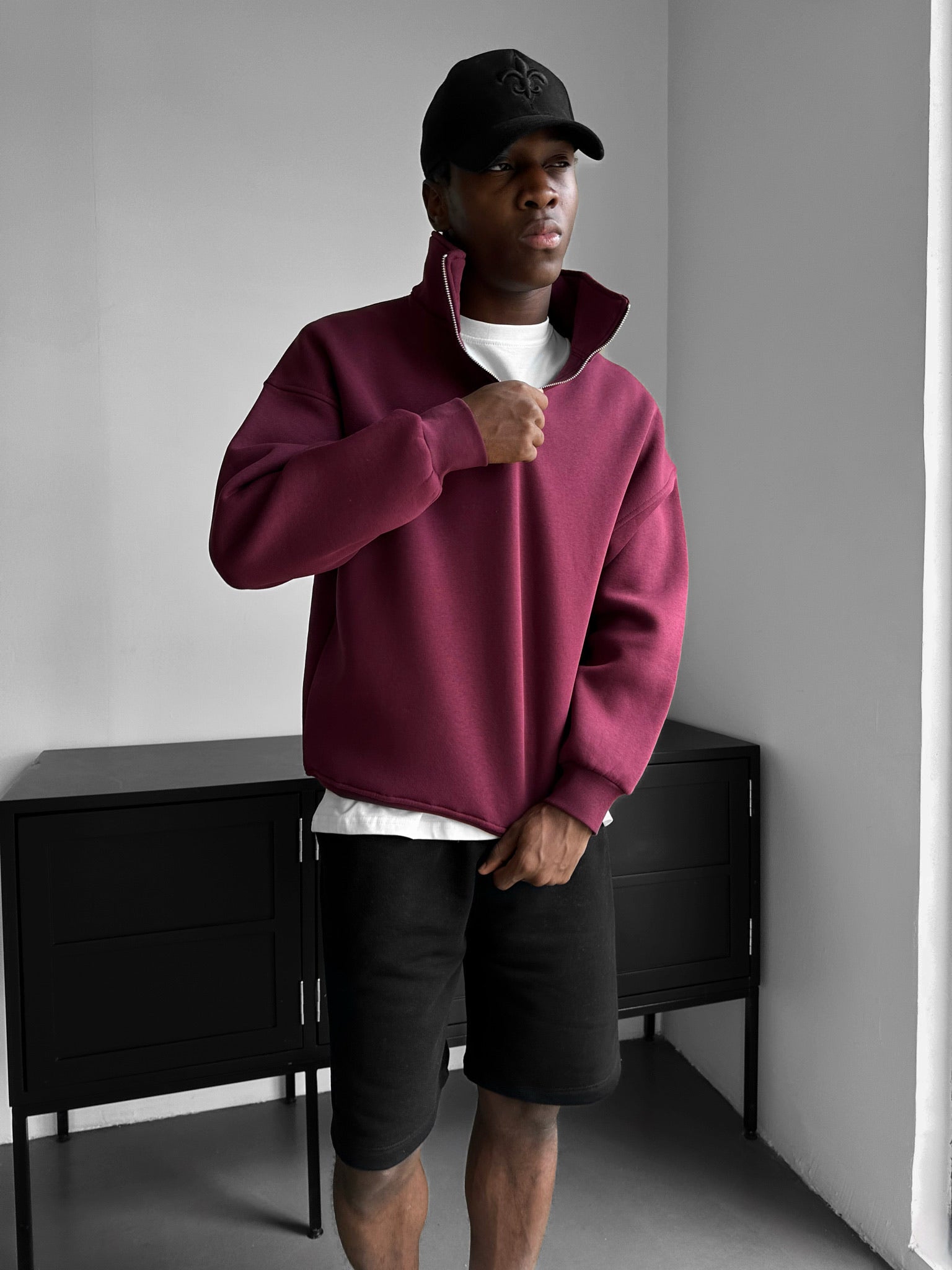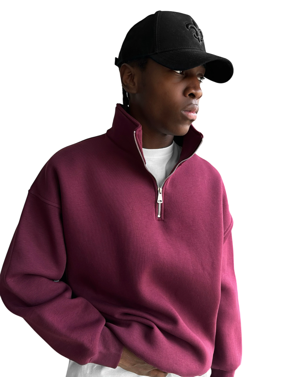 Our basic zipper polo sweatshirt features an oversized, unisex fit, ensuring both comfort and timeless style. Avoid excessive spinning in the washing machine to maintain its quality.