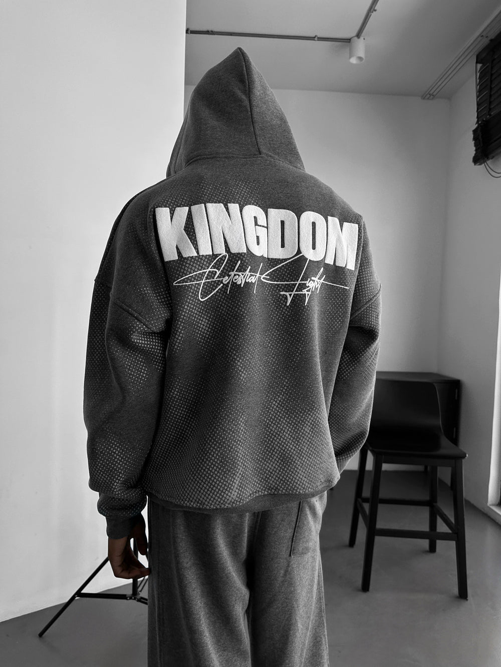 Oversize Kingdom Hoodie - Anthracite Melange and White