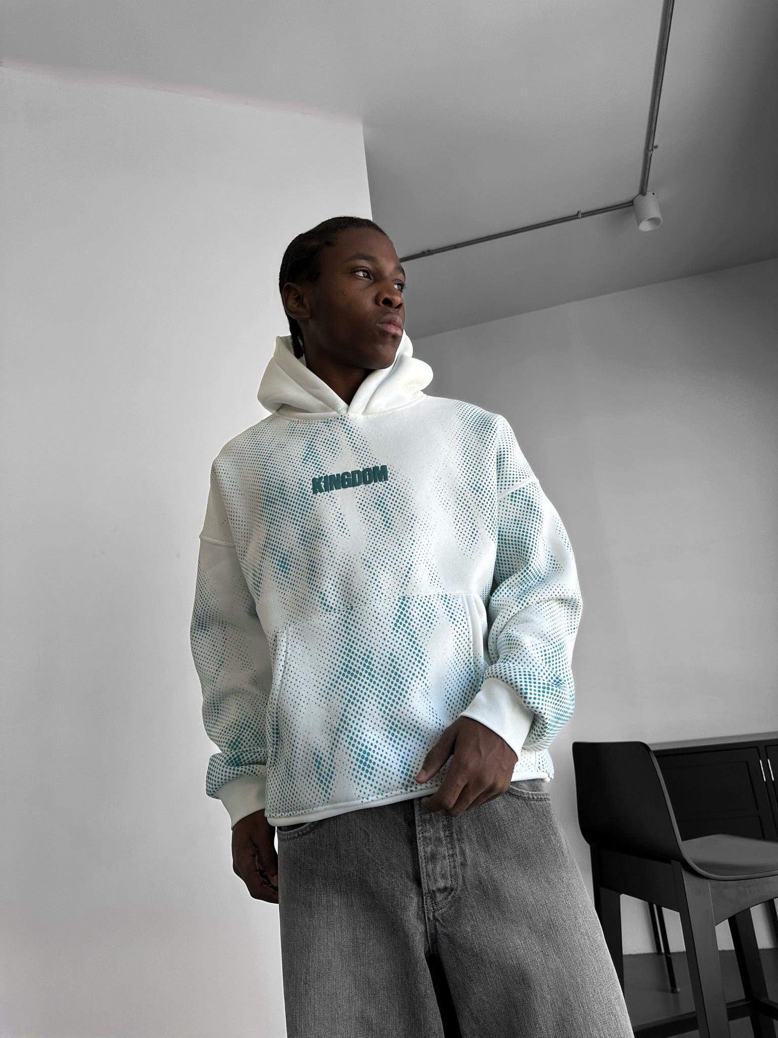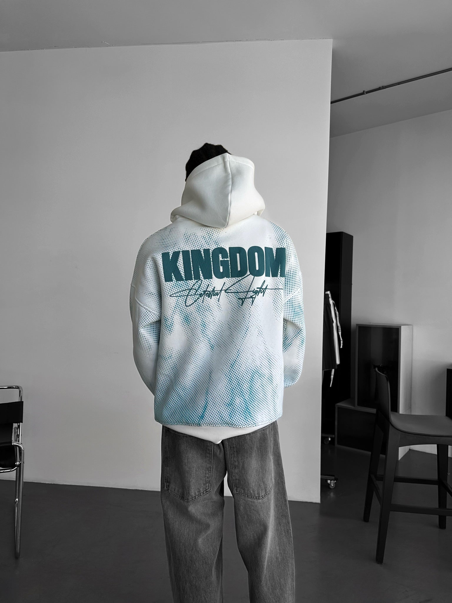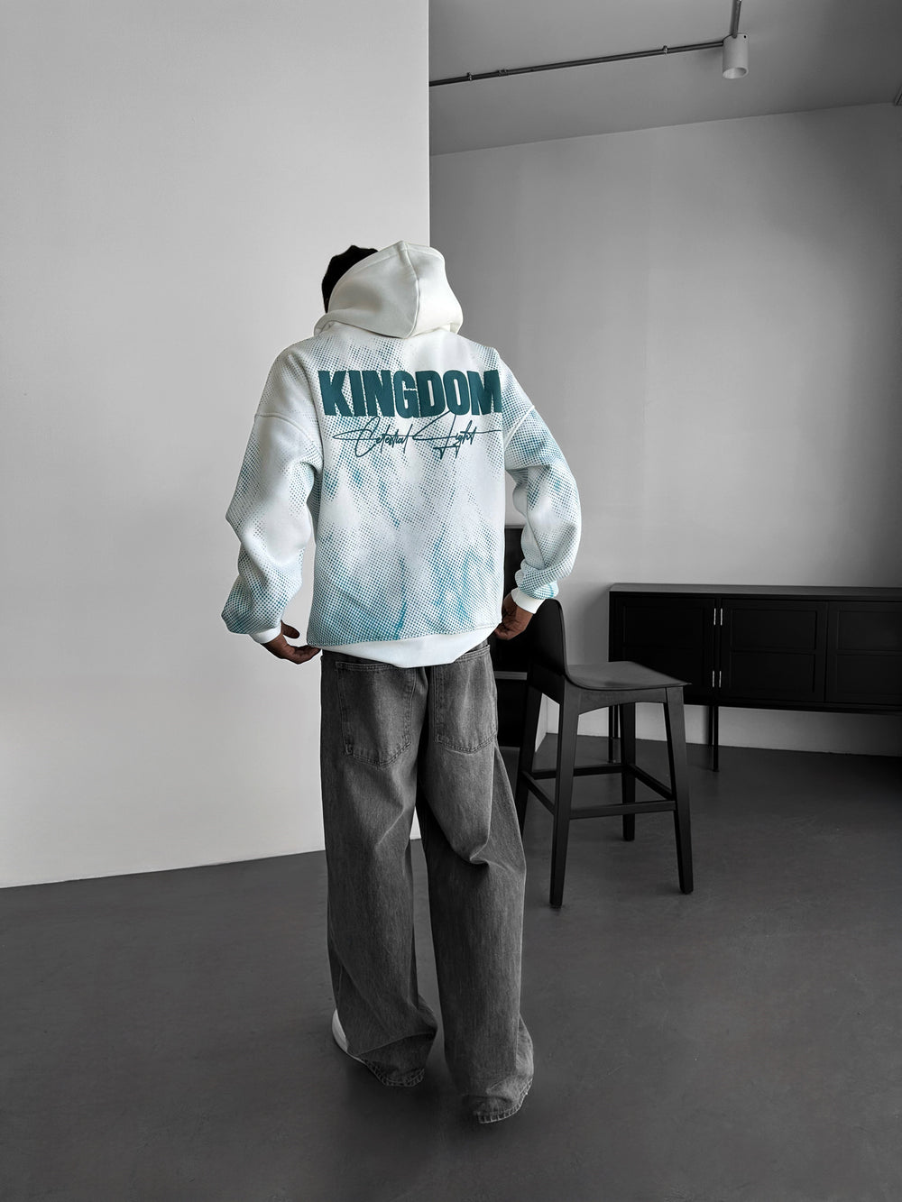 Oversize Kingdom Hoodie - Ecru and Turquoise