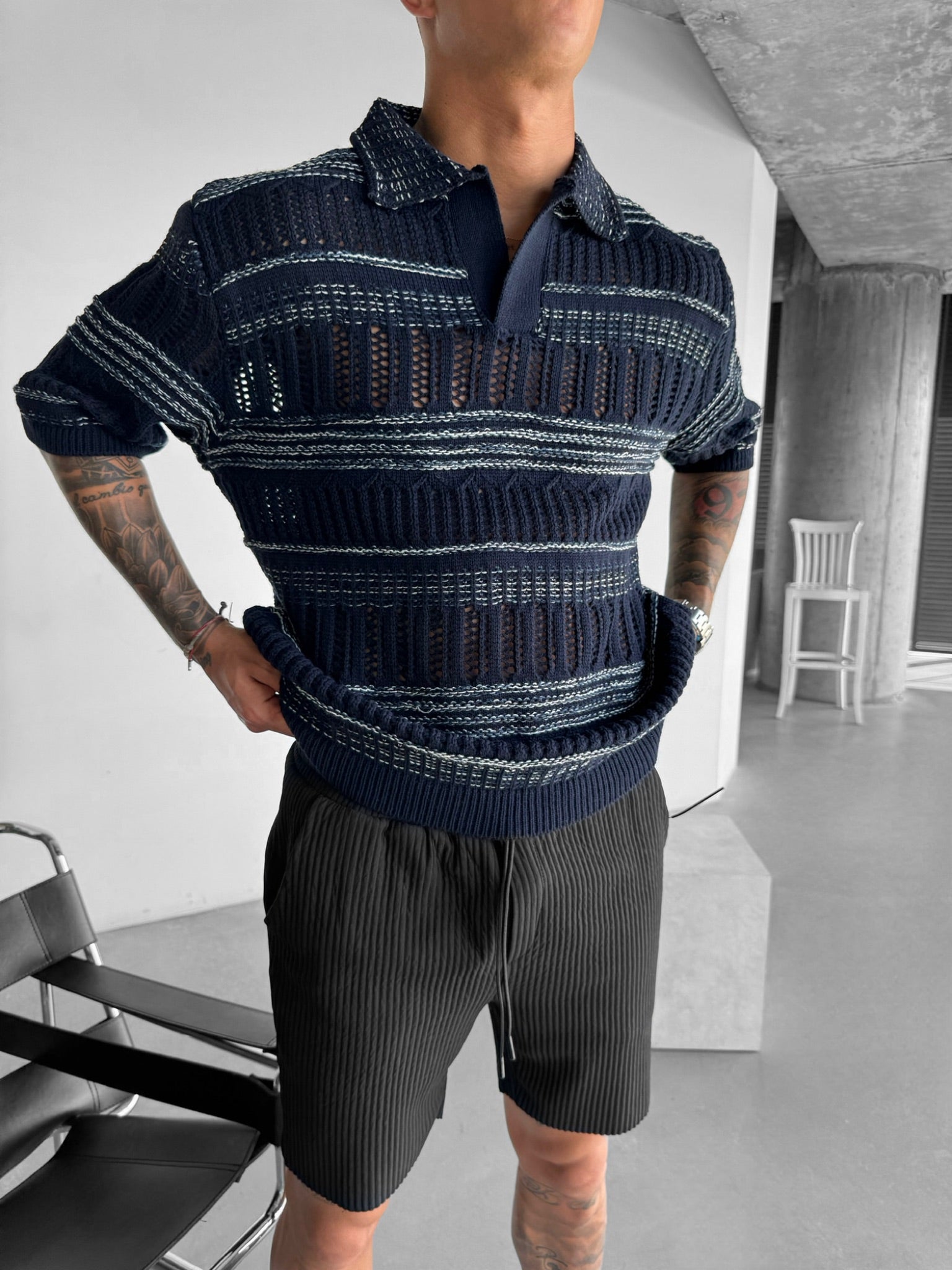 Oversize Knit Polo T-Shirt - Indigo
