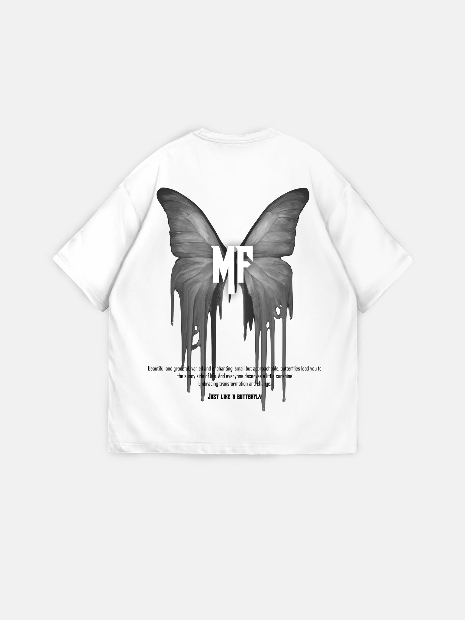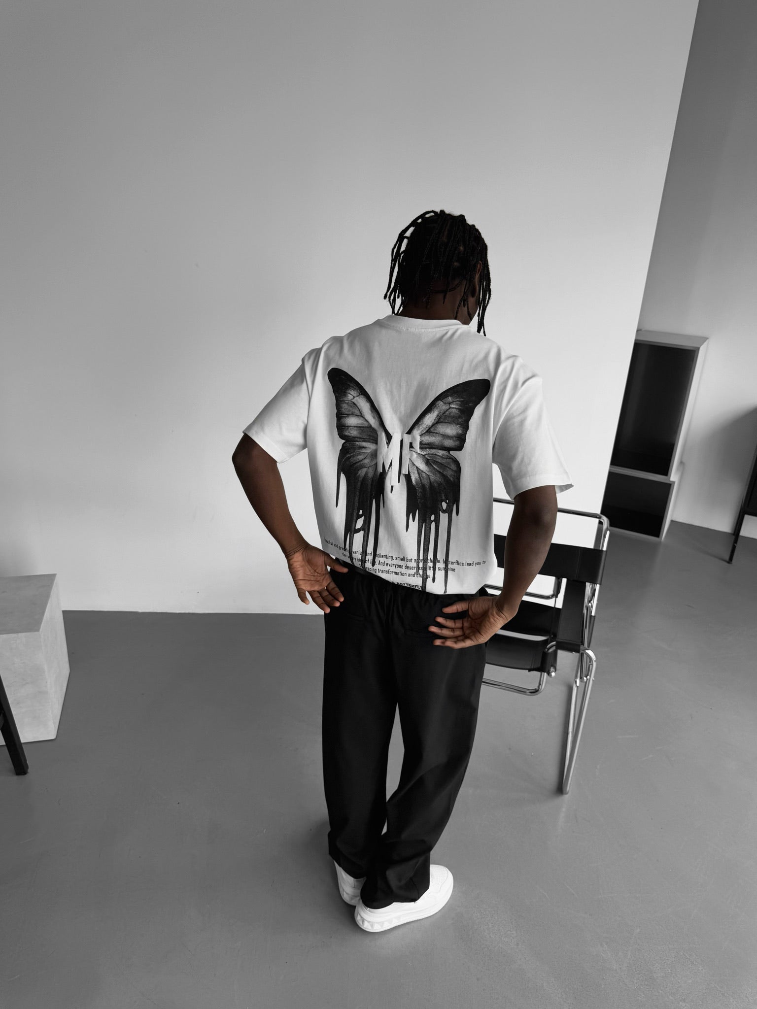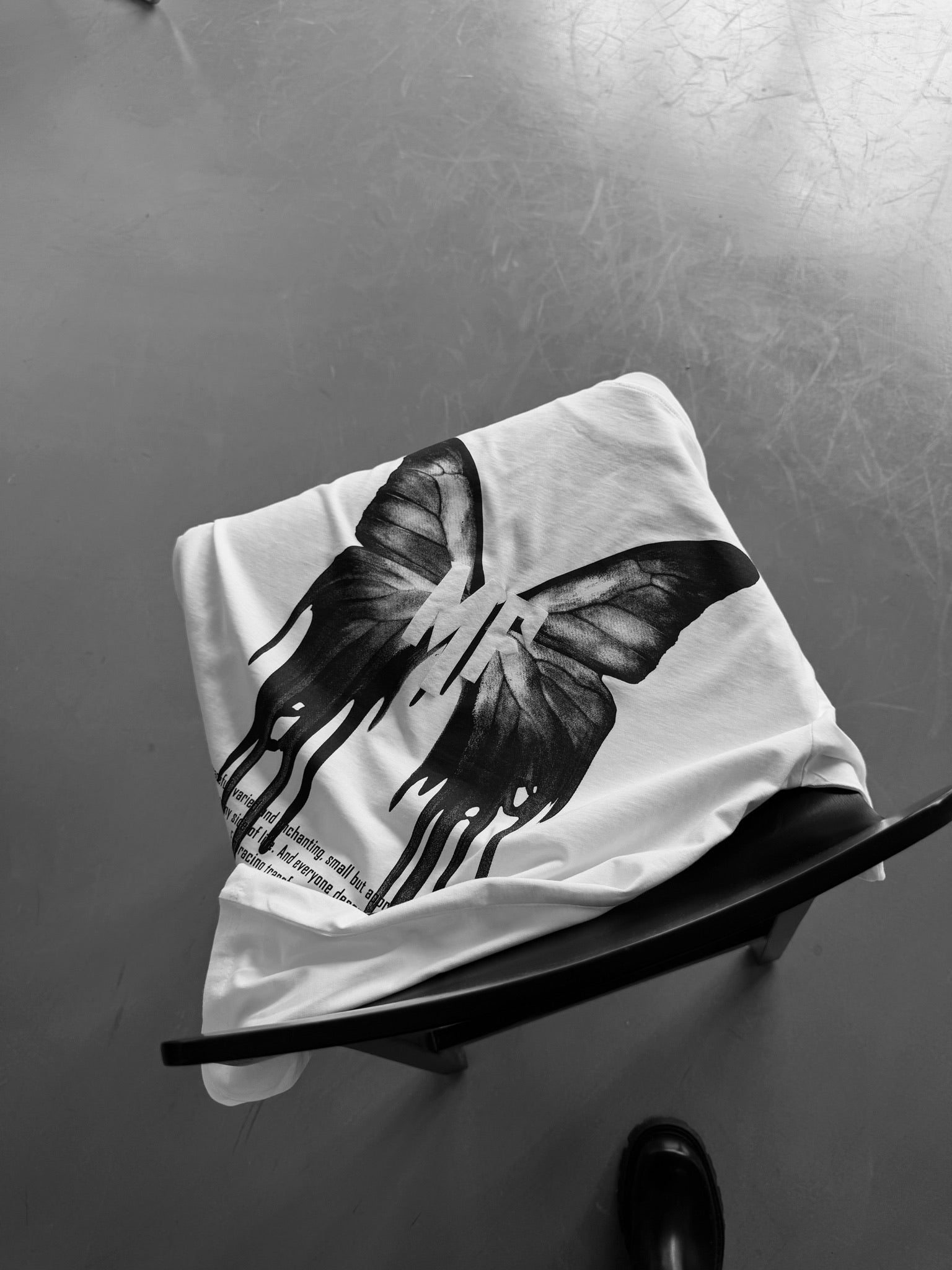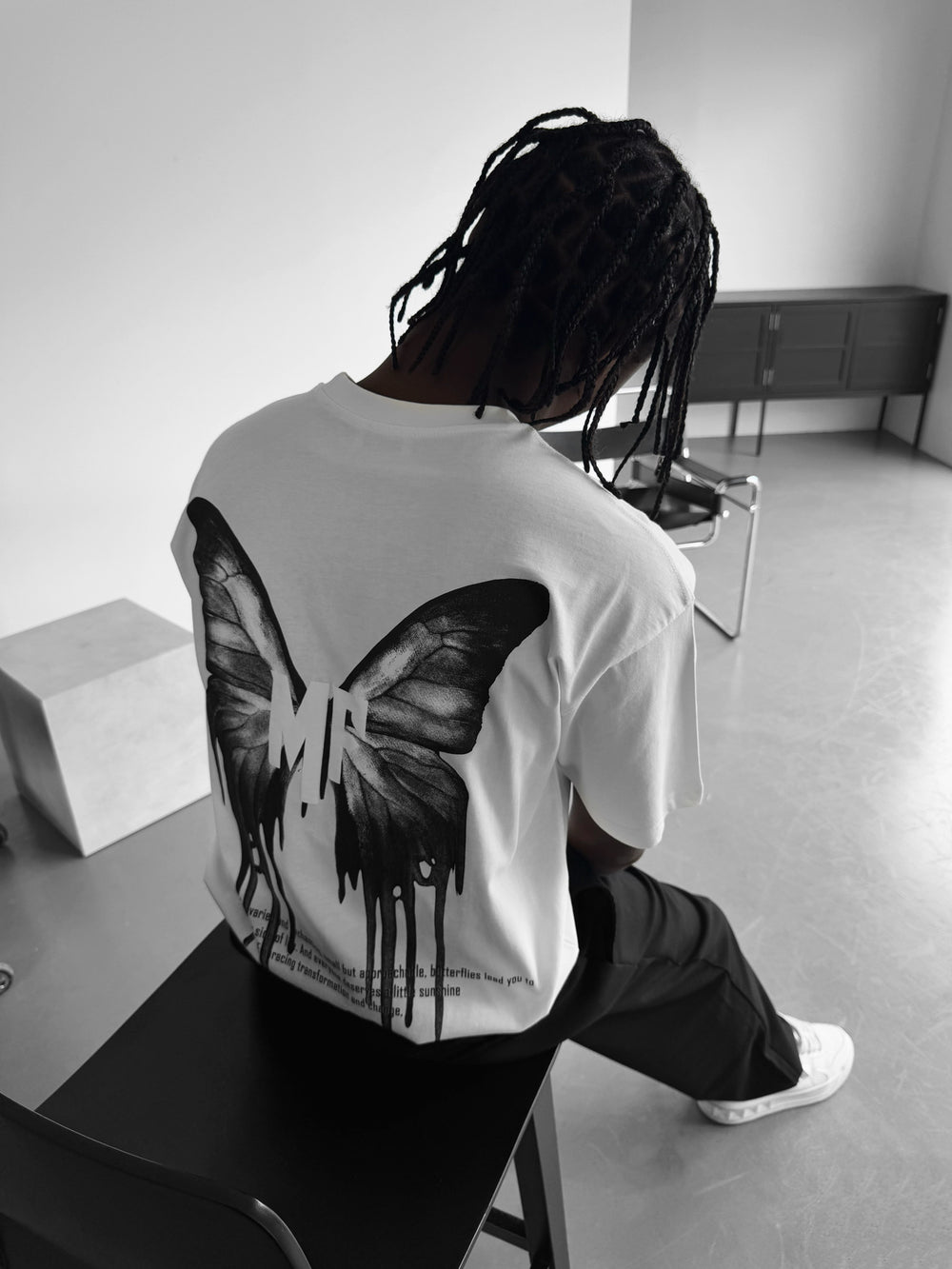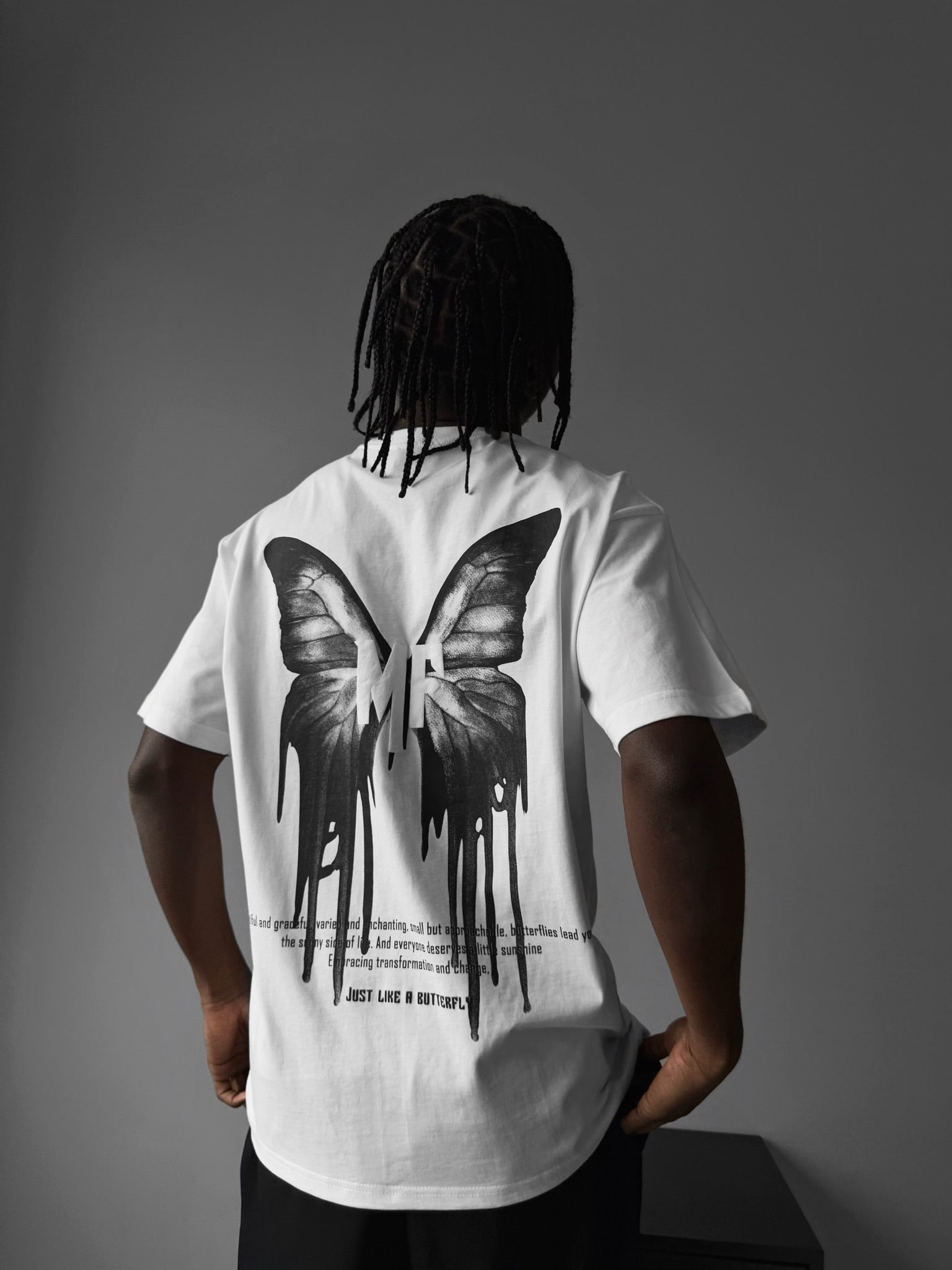 Oversize 'Like a Butterfly' T-Shirt - Ecru and Anthracite