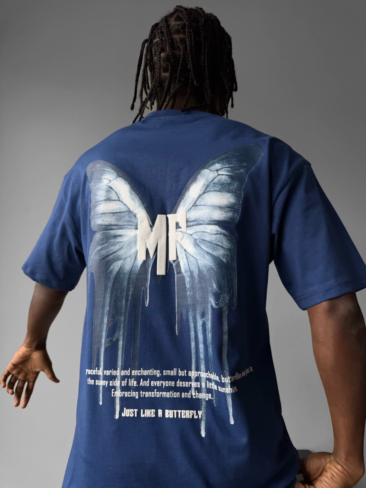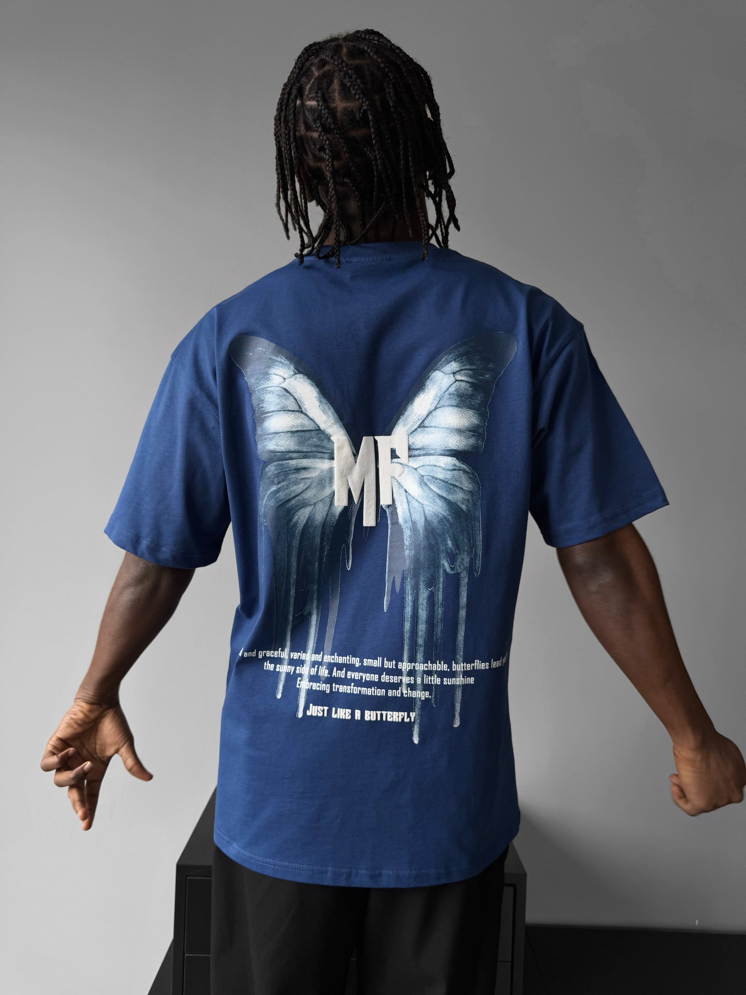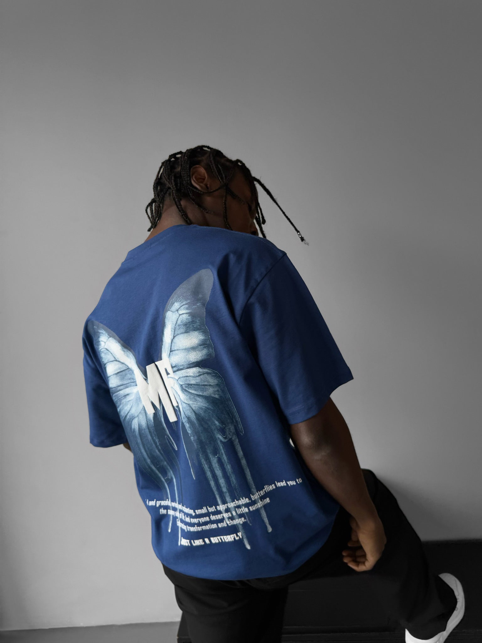 Oversize 'Like a Butterfly' T-Shirt - Navy Peony