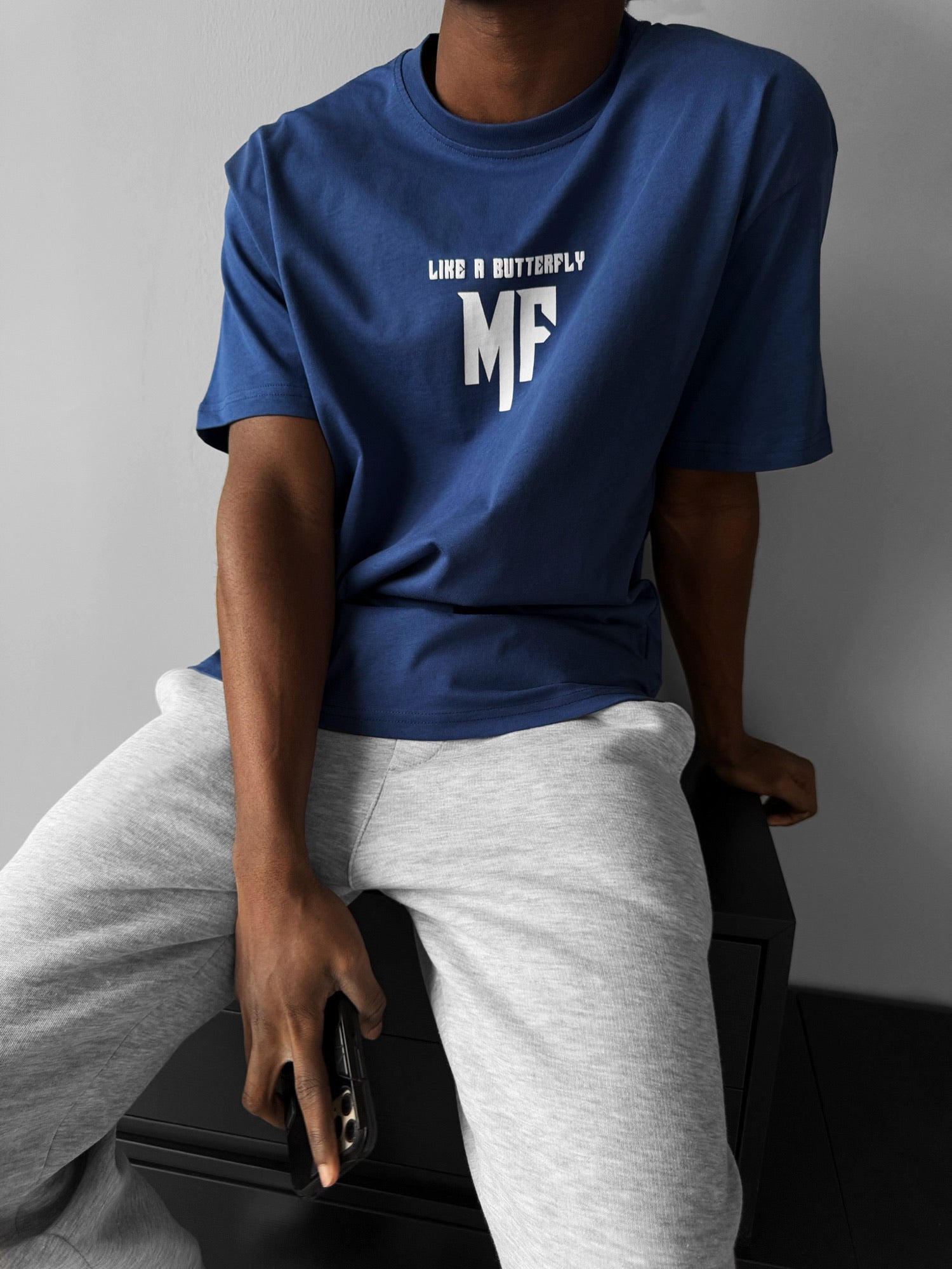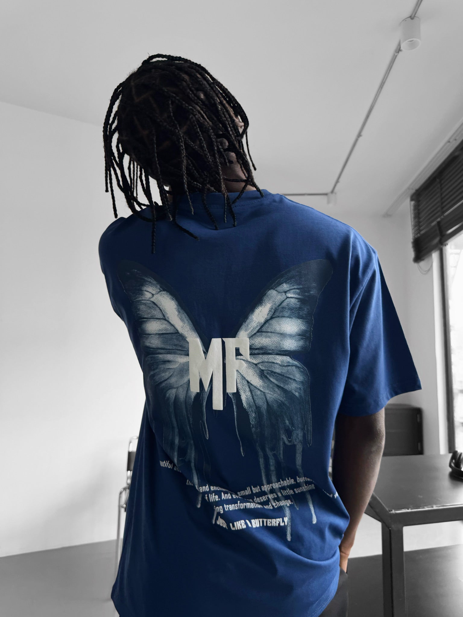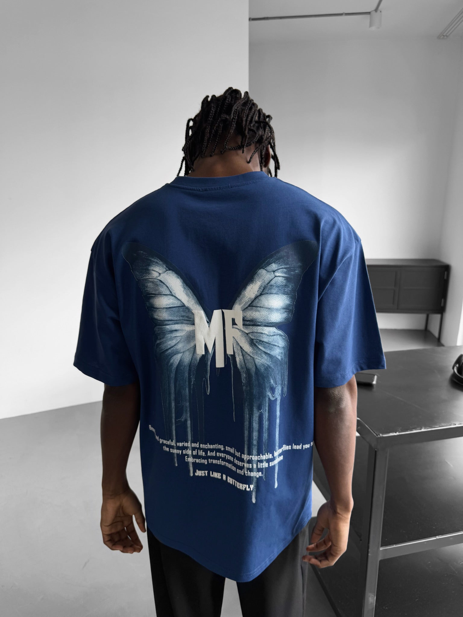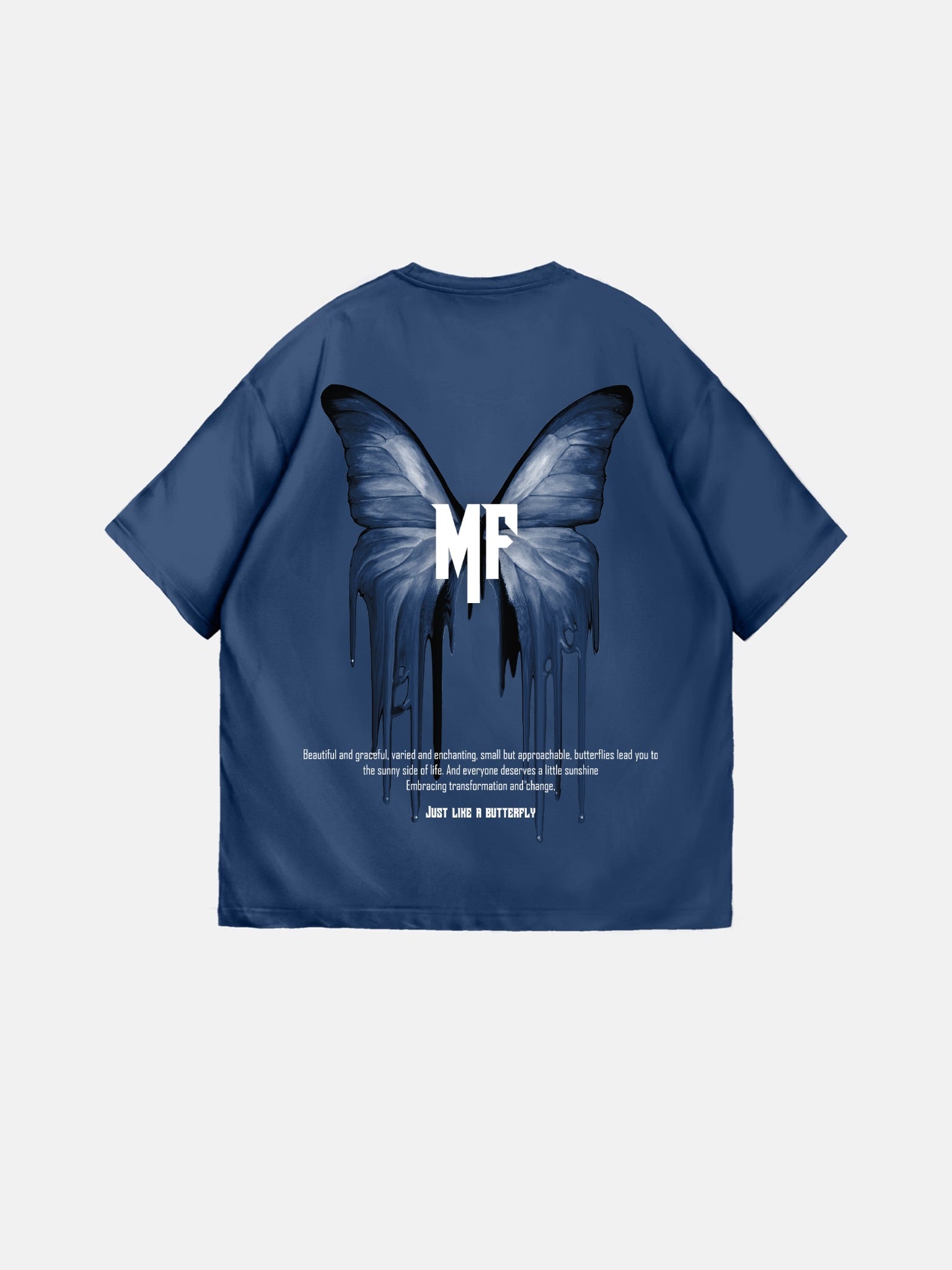 Oversize 'Like a Butterfly' T-Shirt - Navy Peony