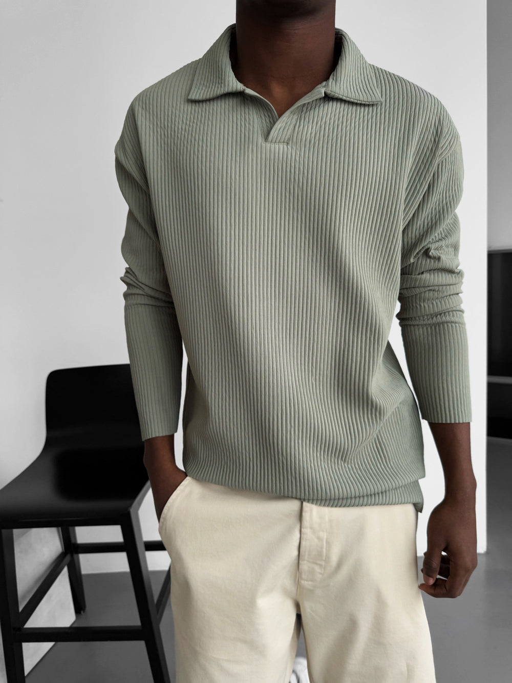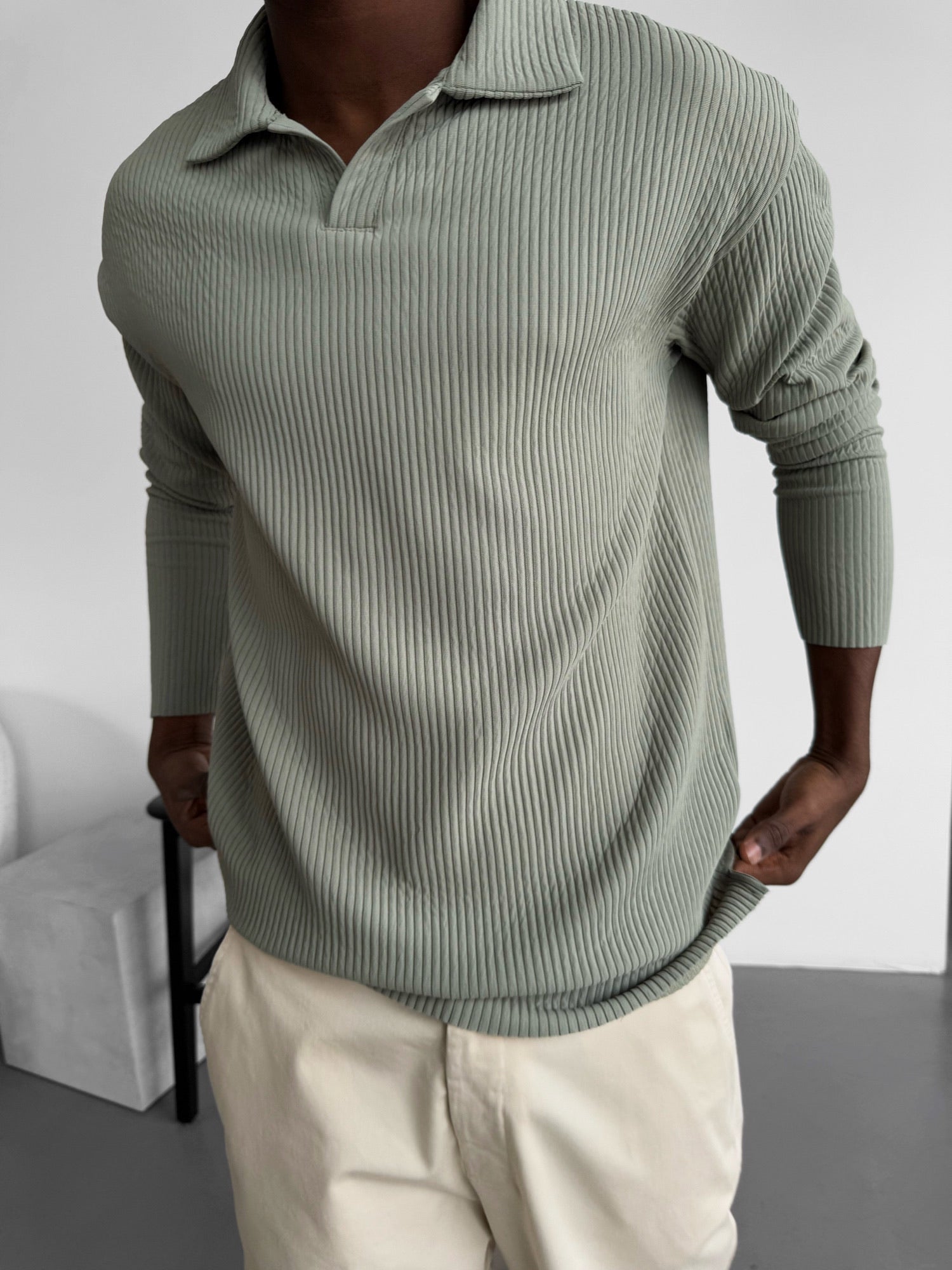 Oversize Ribbed Long Arm Polo T-shirt - Green