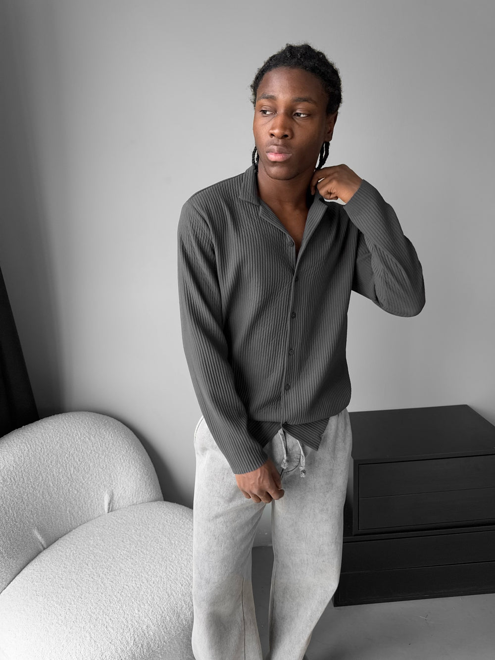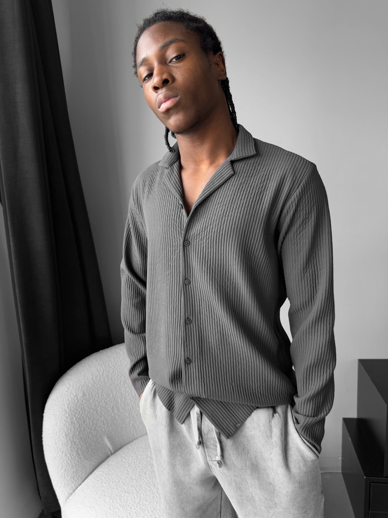 Oversize Ribbed Long Arm Shirt - Anthracite