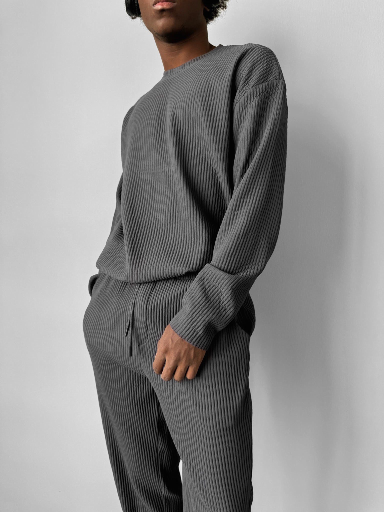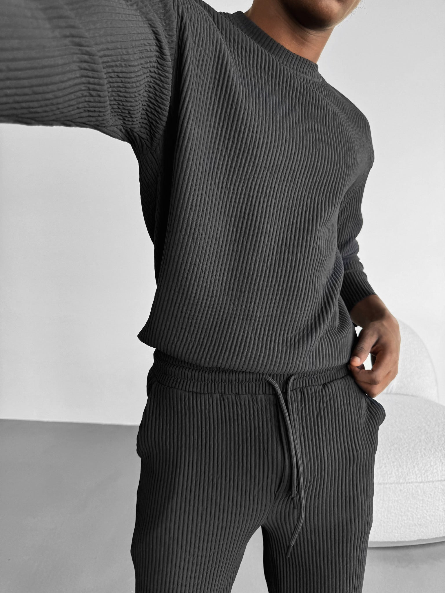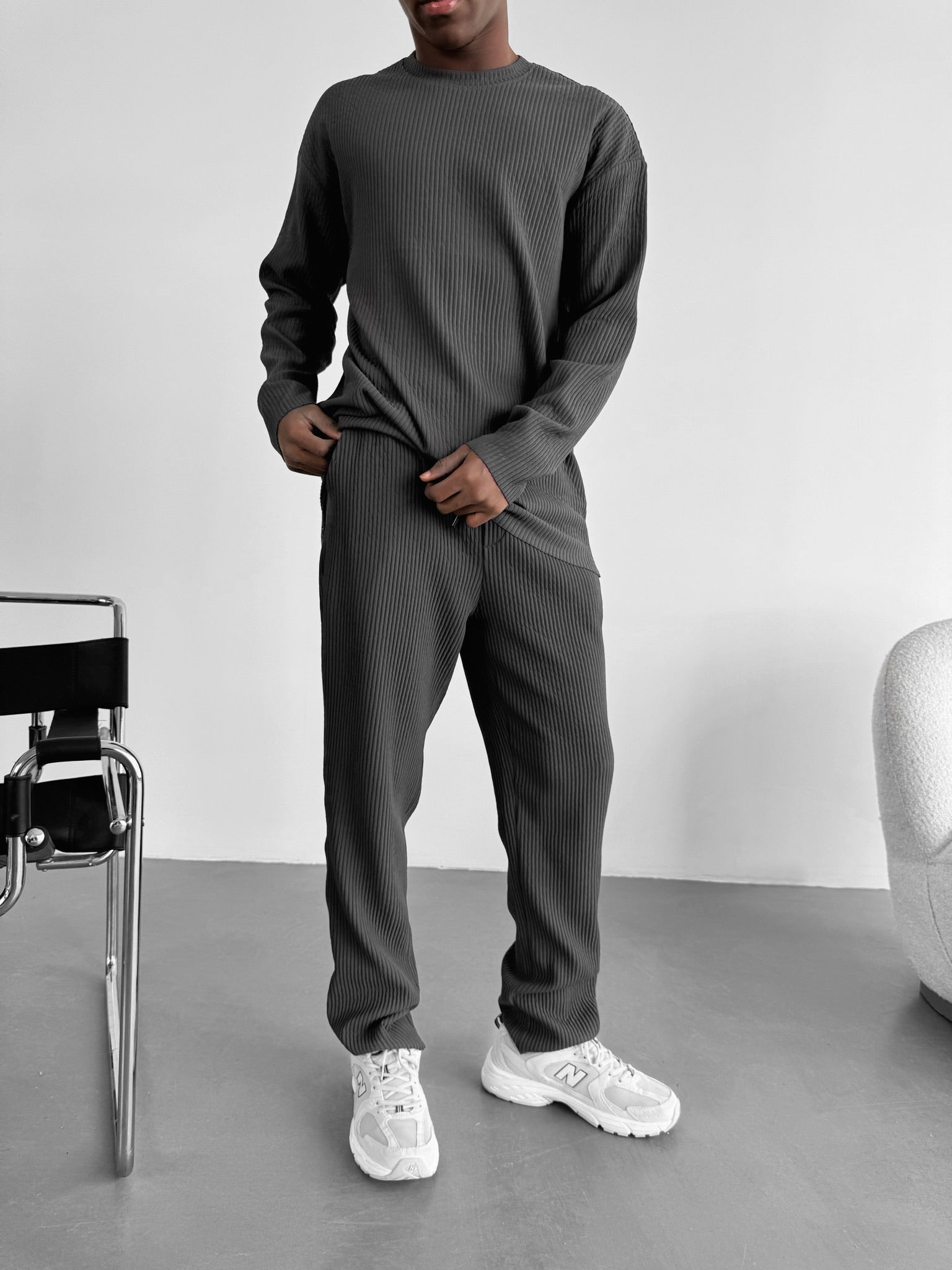 Oversize Ribbed Long Arm T-shirt - Anthracite