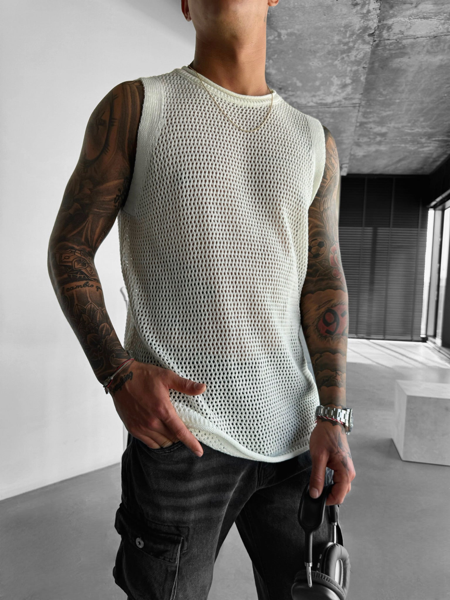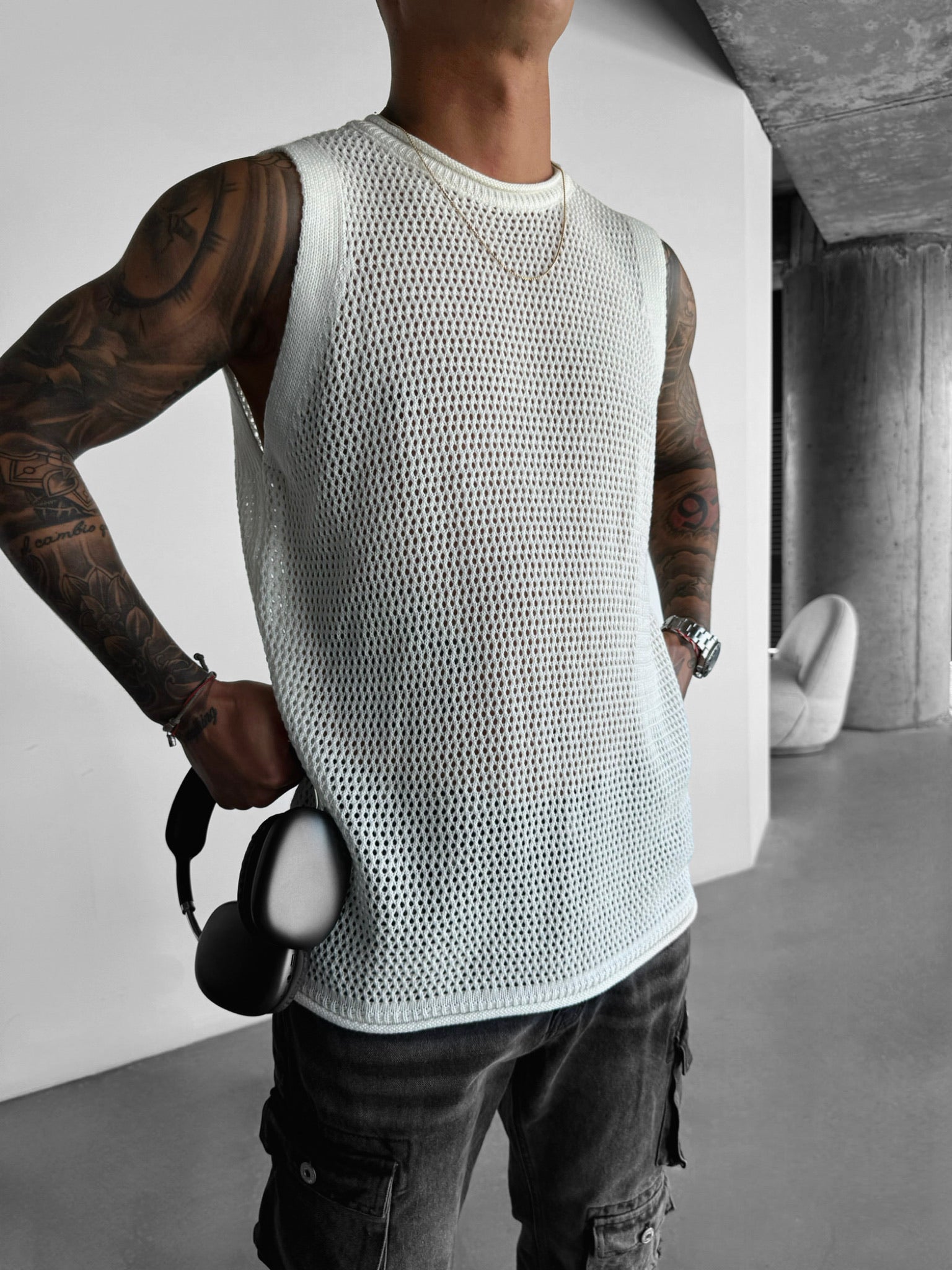Oversize Textured Tanktop - White
