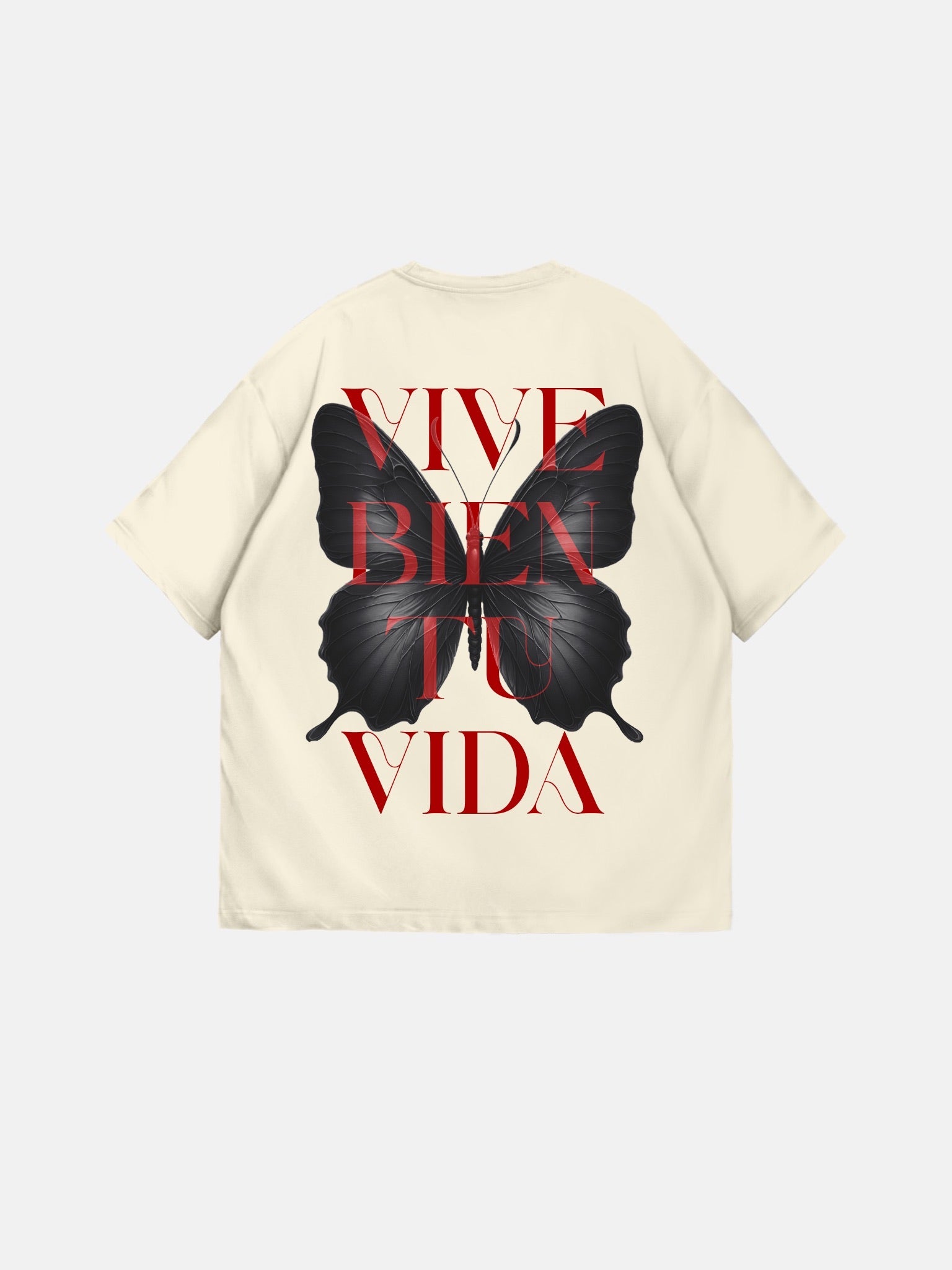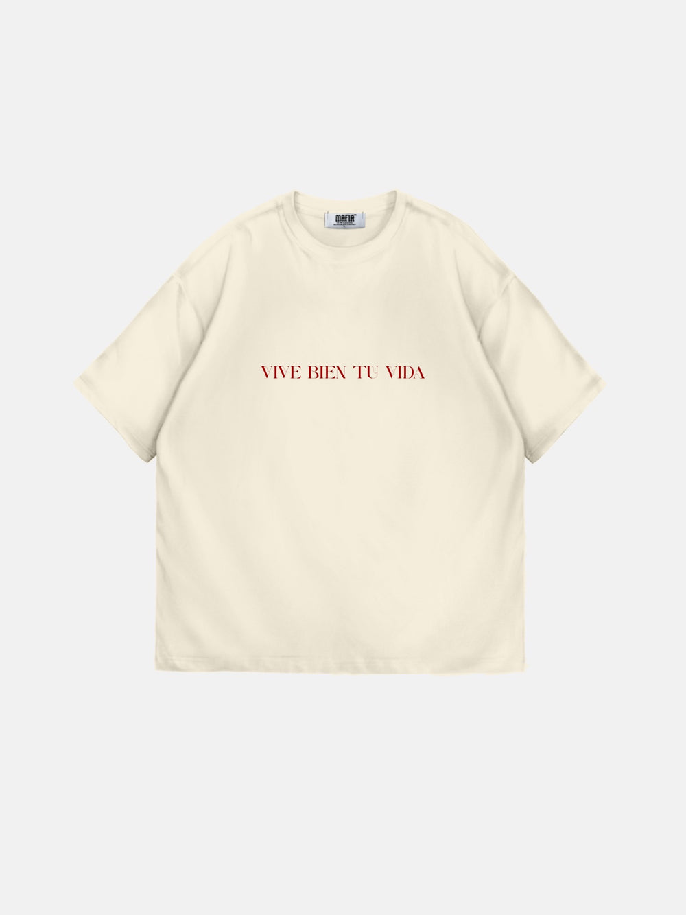 Oversize "Vive Bien Tu Vida" T-Shirt - Antique White