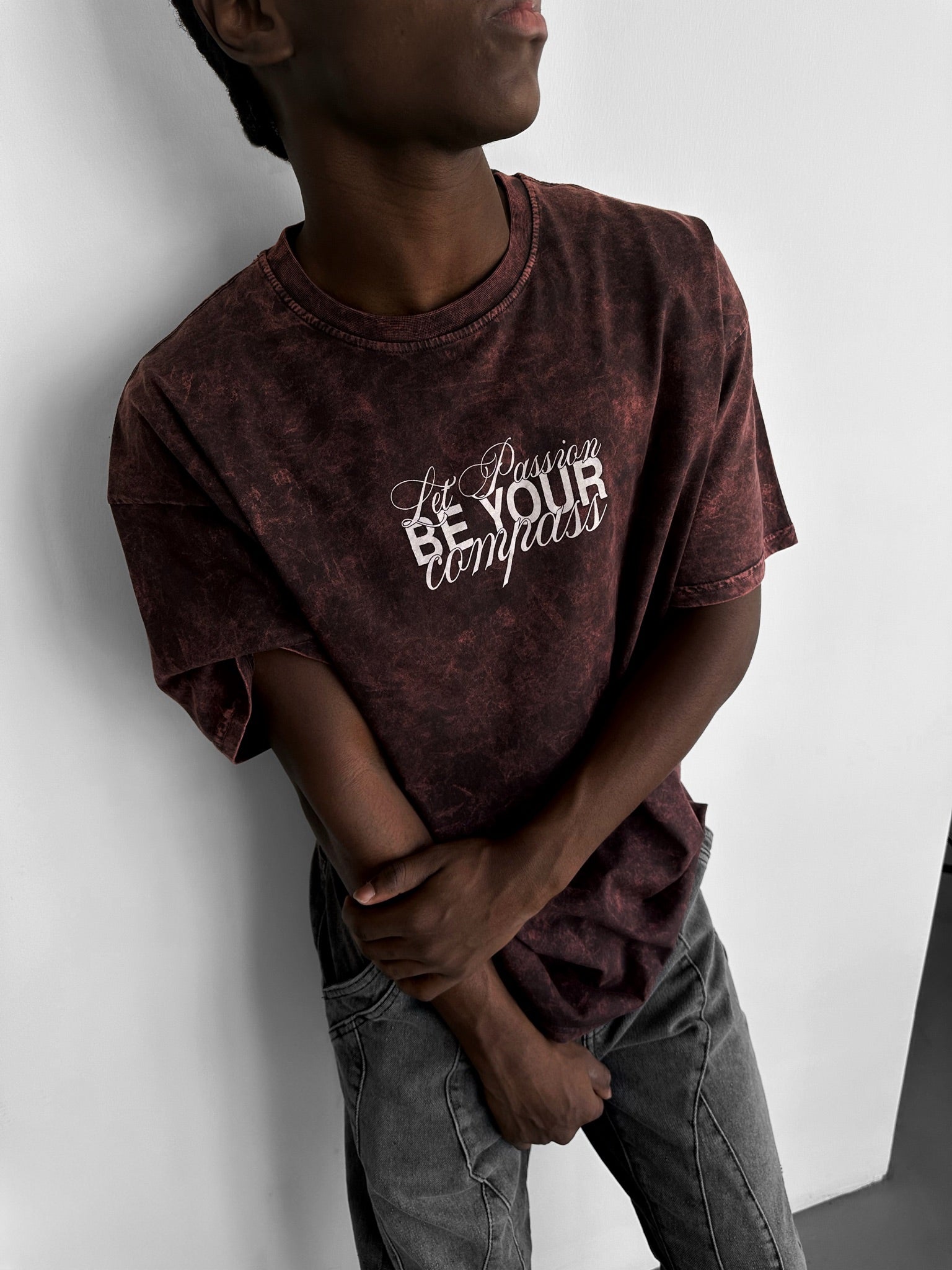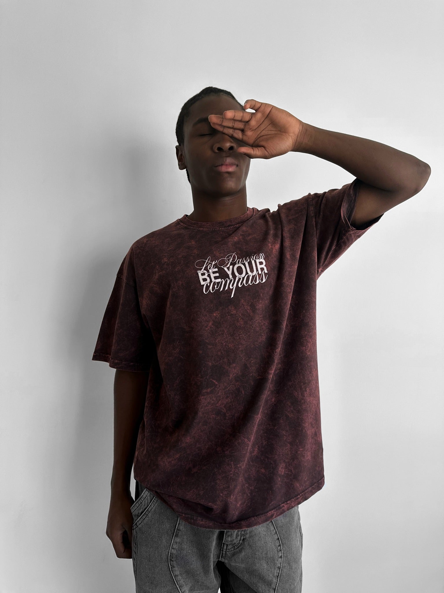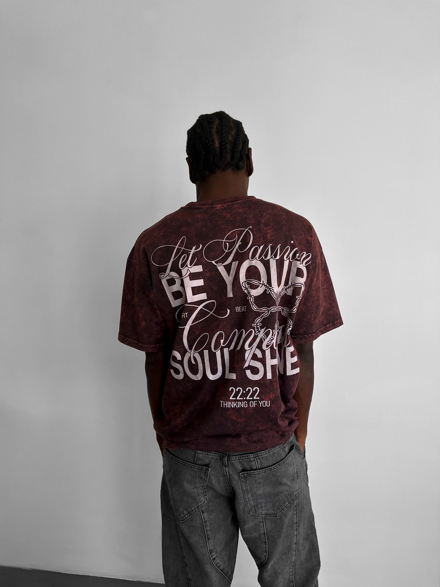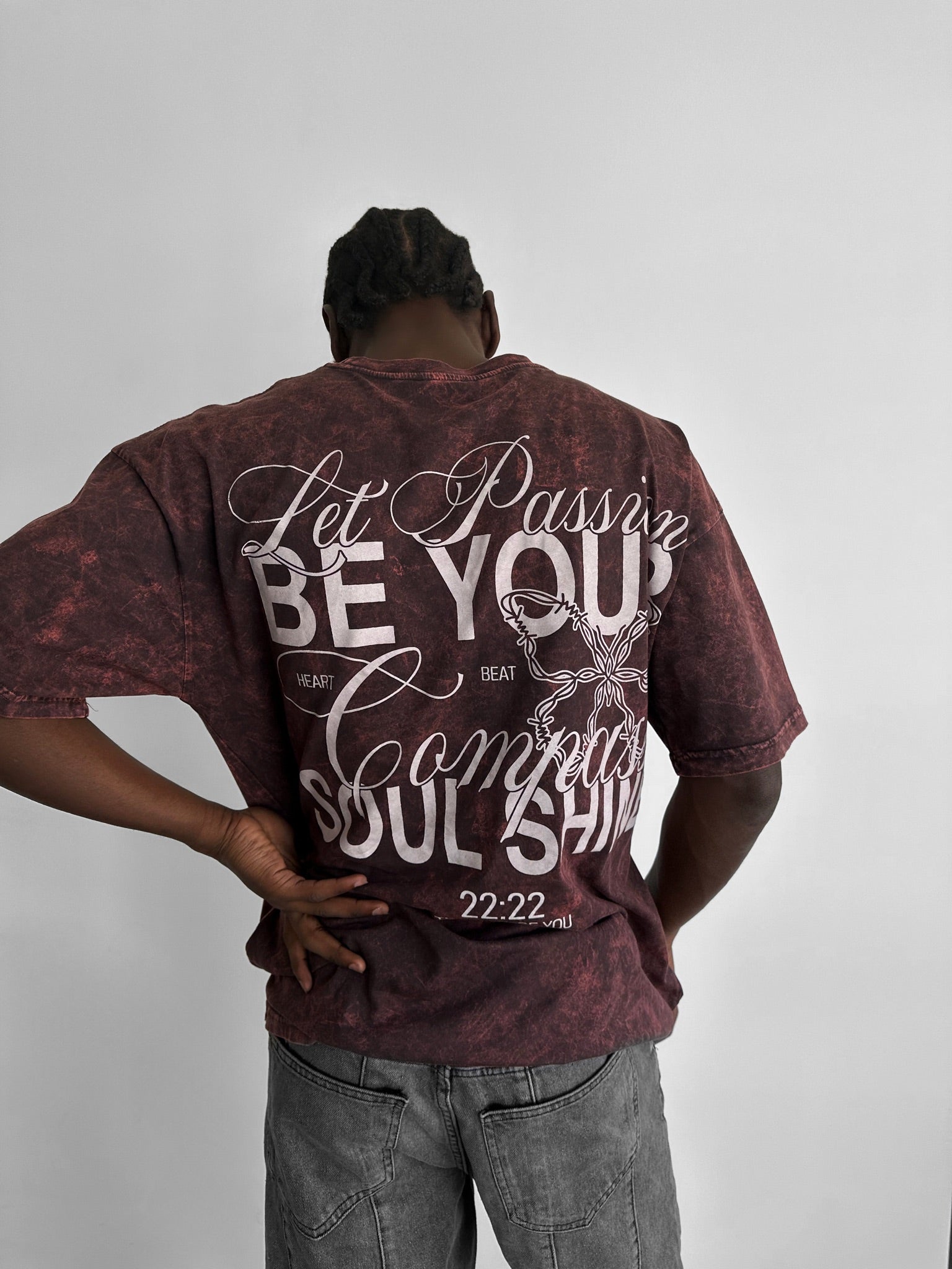 Oversize Washed 'Be your Soul Shine' T-Shirt - Bordeaux