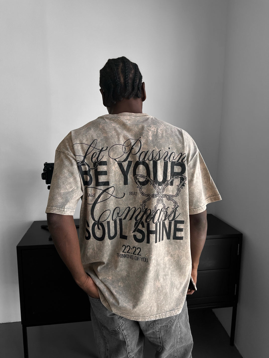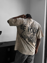 Oversize Washed 'Be your Soul Shine' T-Shirt - Stone