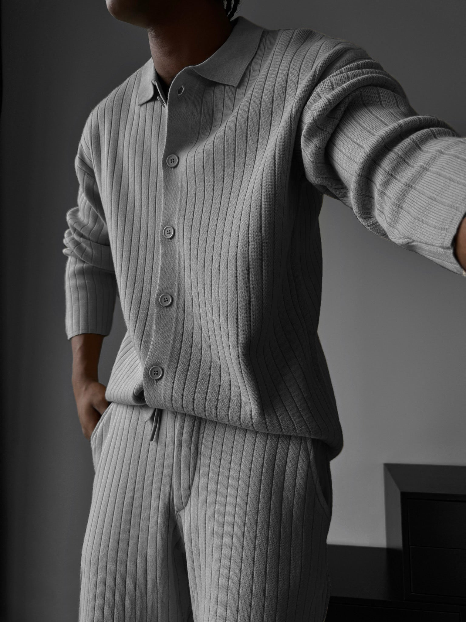 Oversize Wide Ribbed Long Arm Knit Shirt - Grey