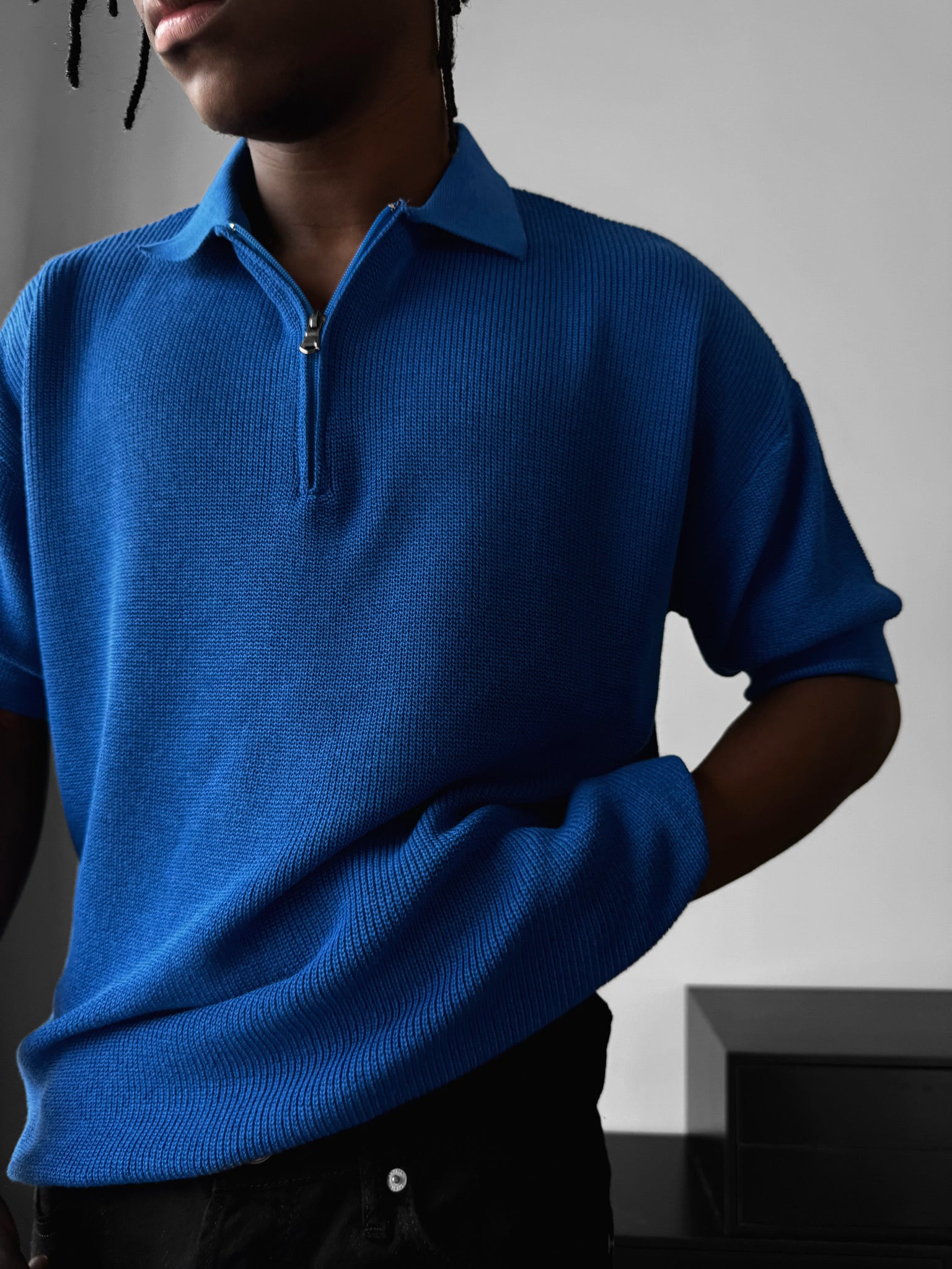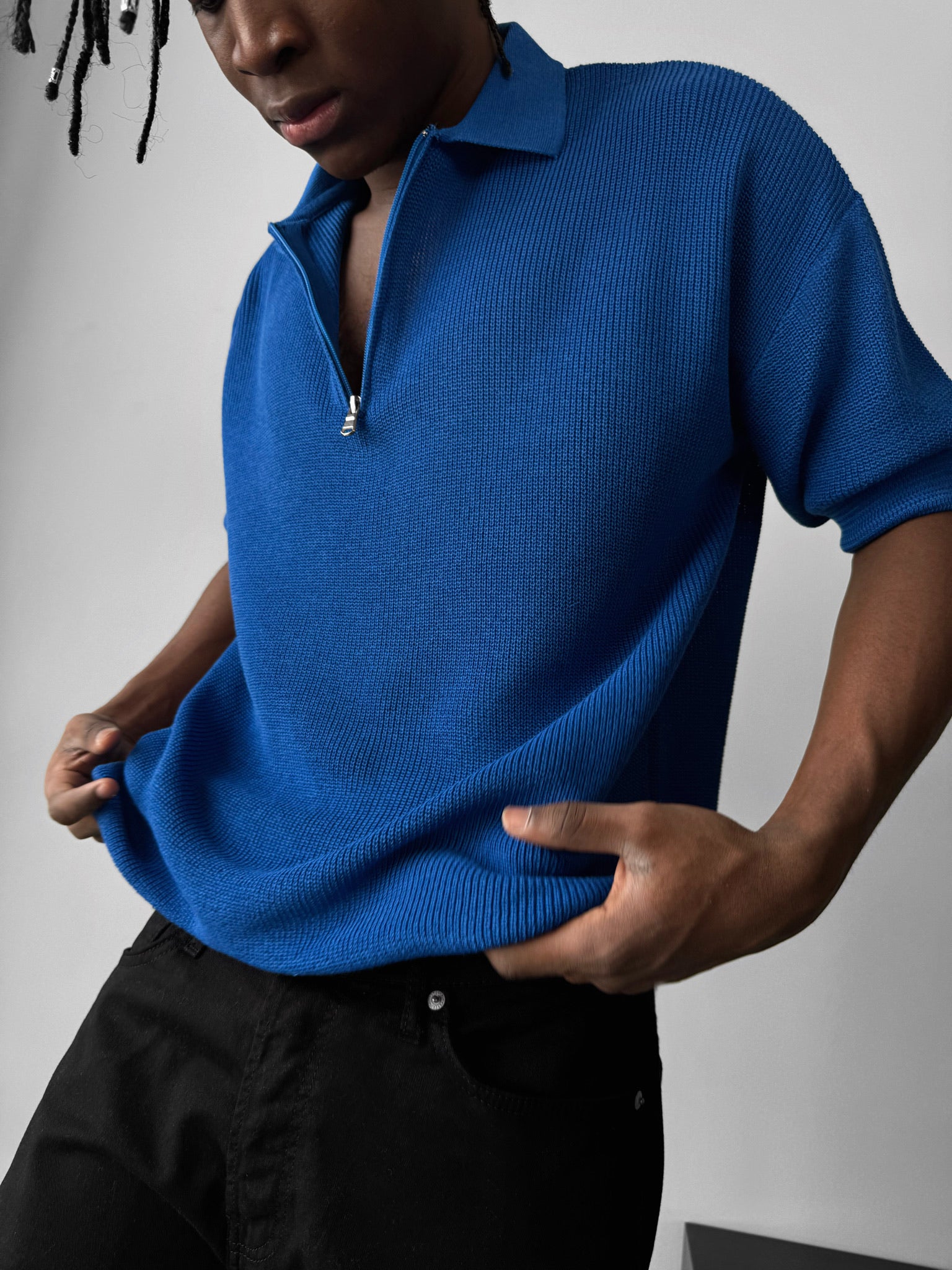 Oversize Zipper Knit Polo T-shirt - Saks