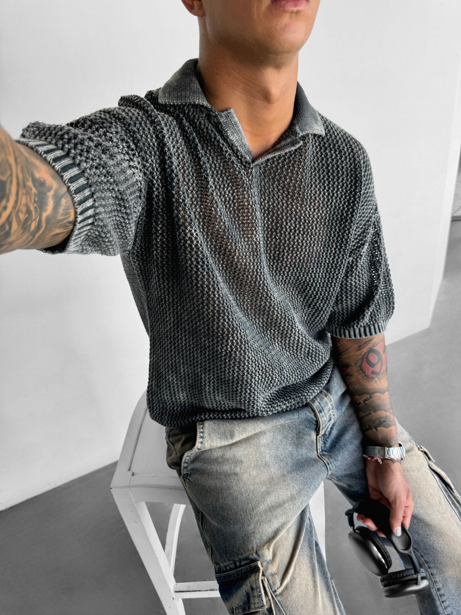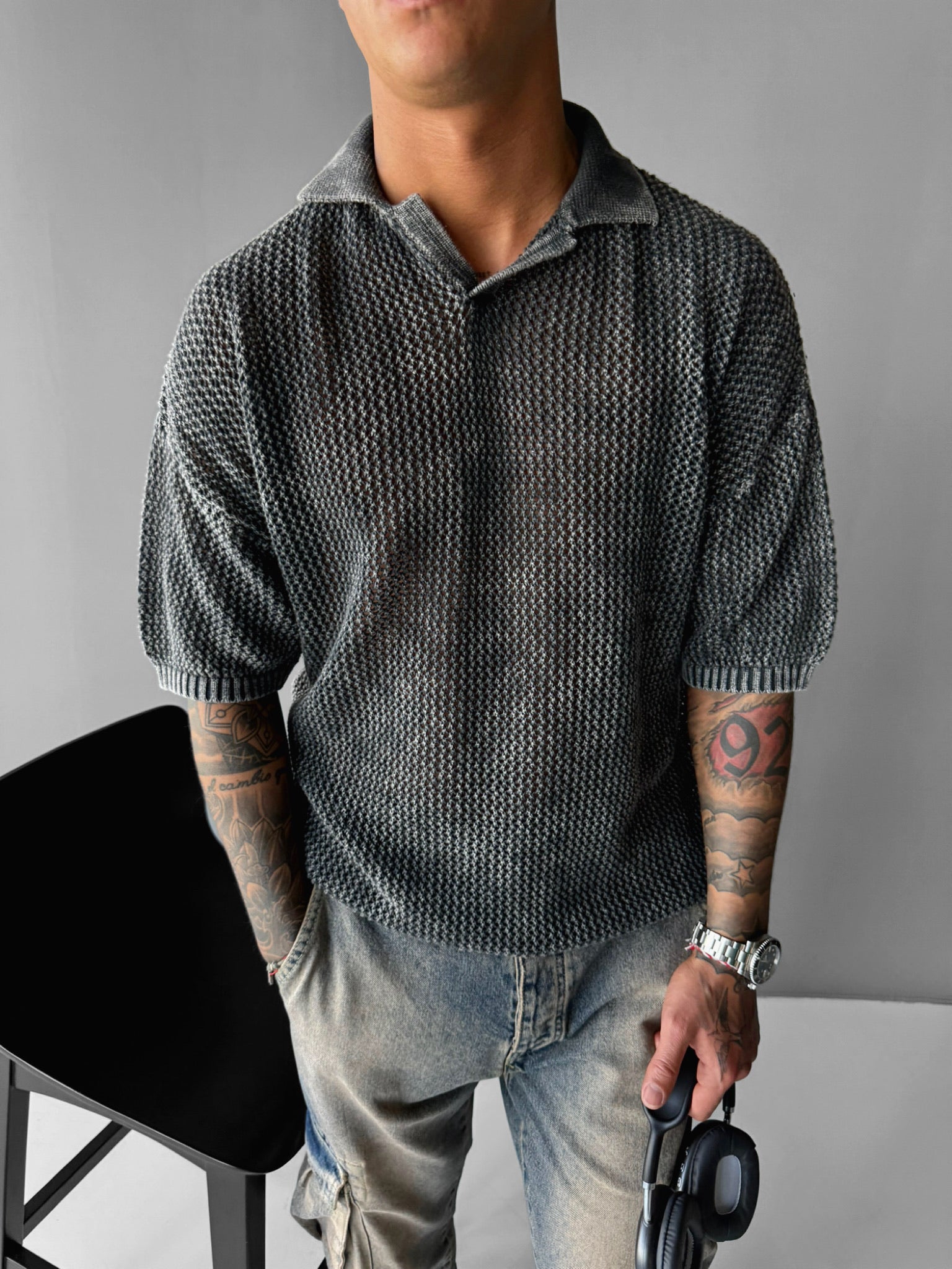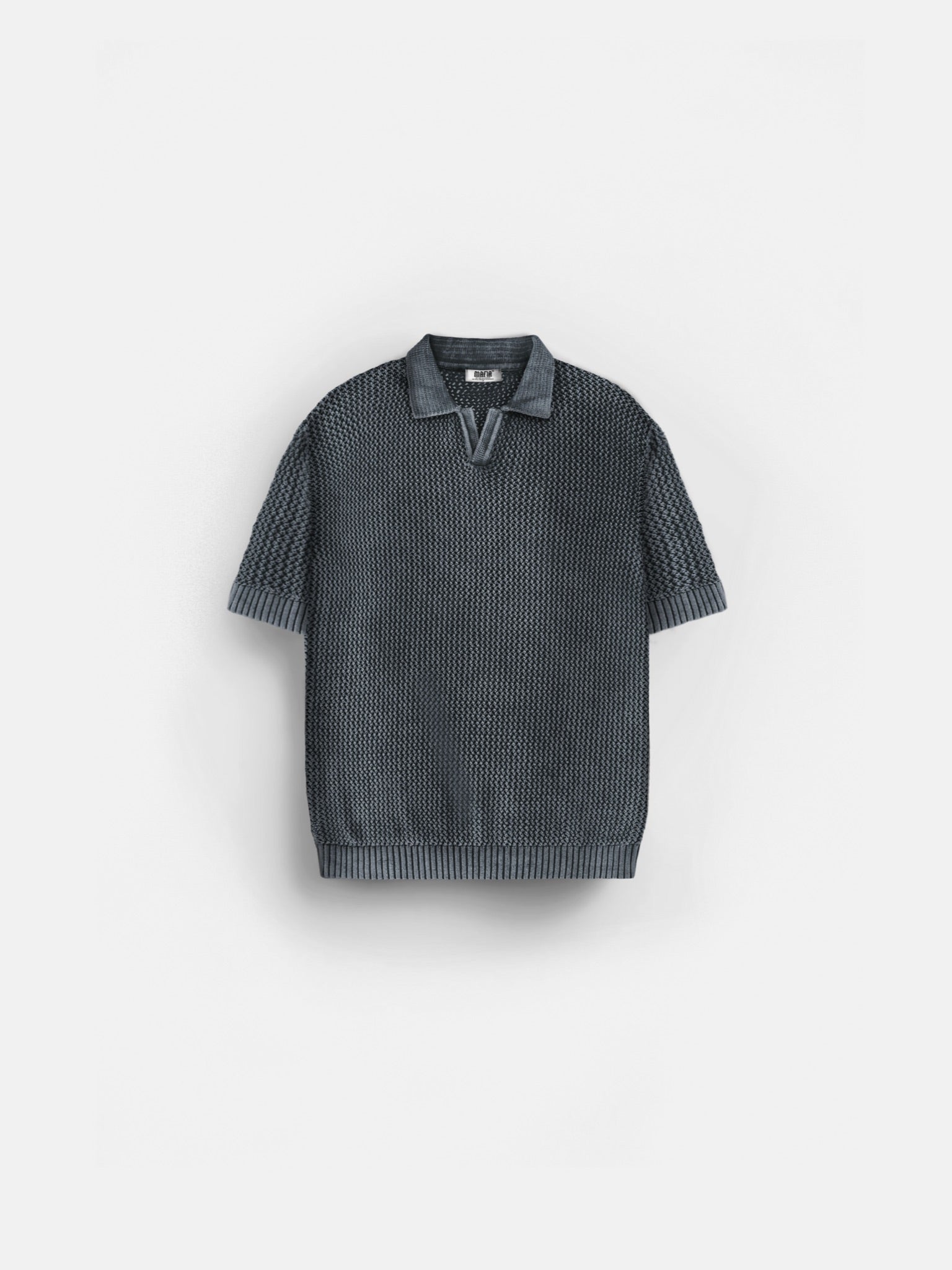 Regular Fit Knit Grid T-shirt - Stormy Weather