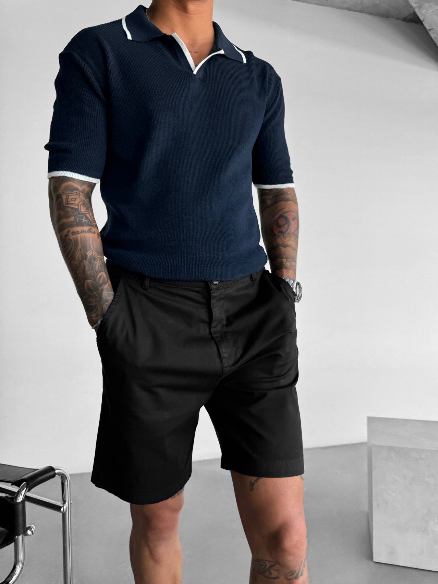 Regular Fit Knit Line Polo T-Shirt - Navy Blue