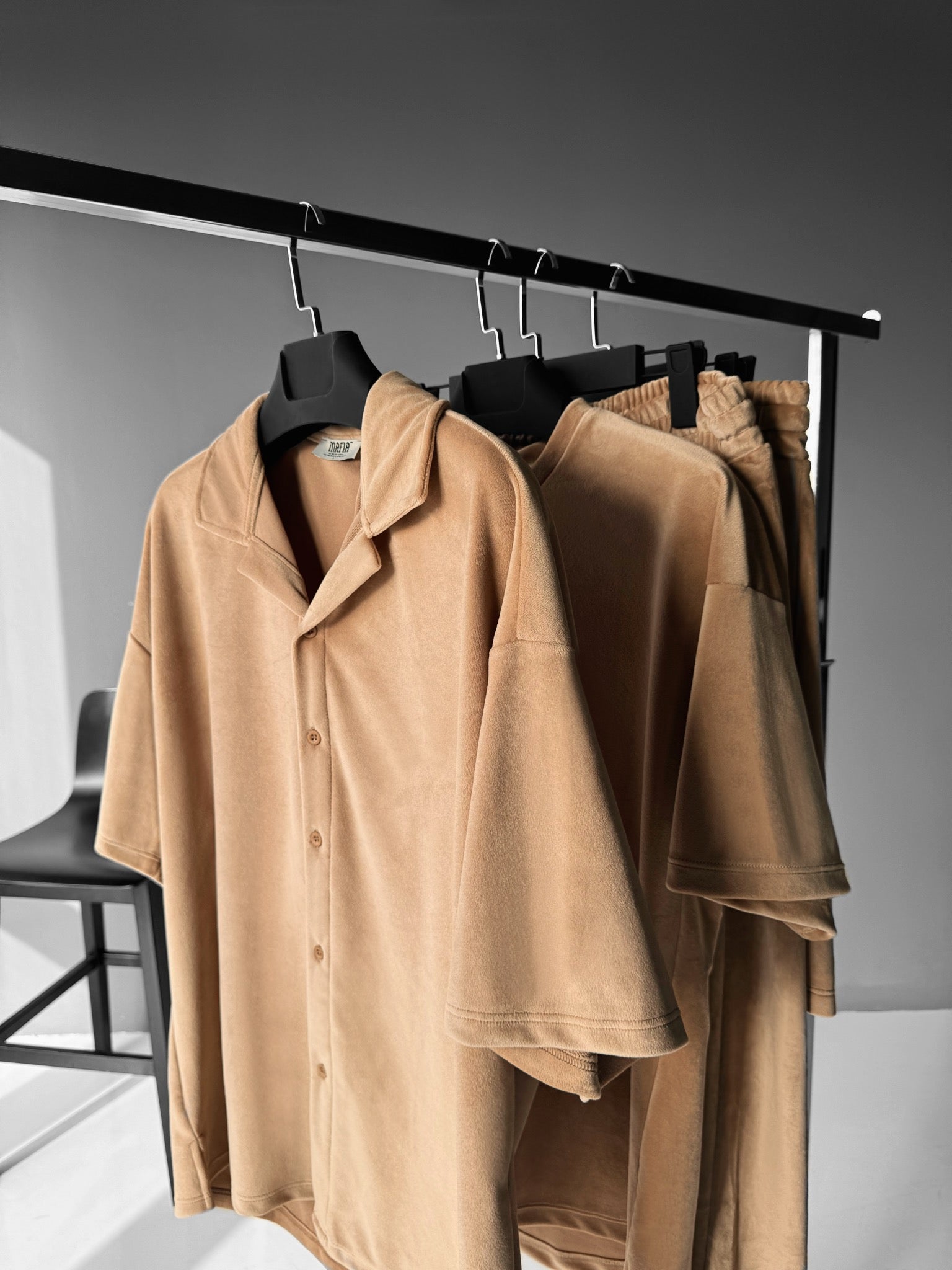 Regular Fit Velvet Shirt - Beige