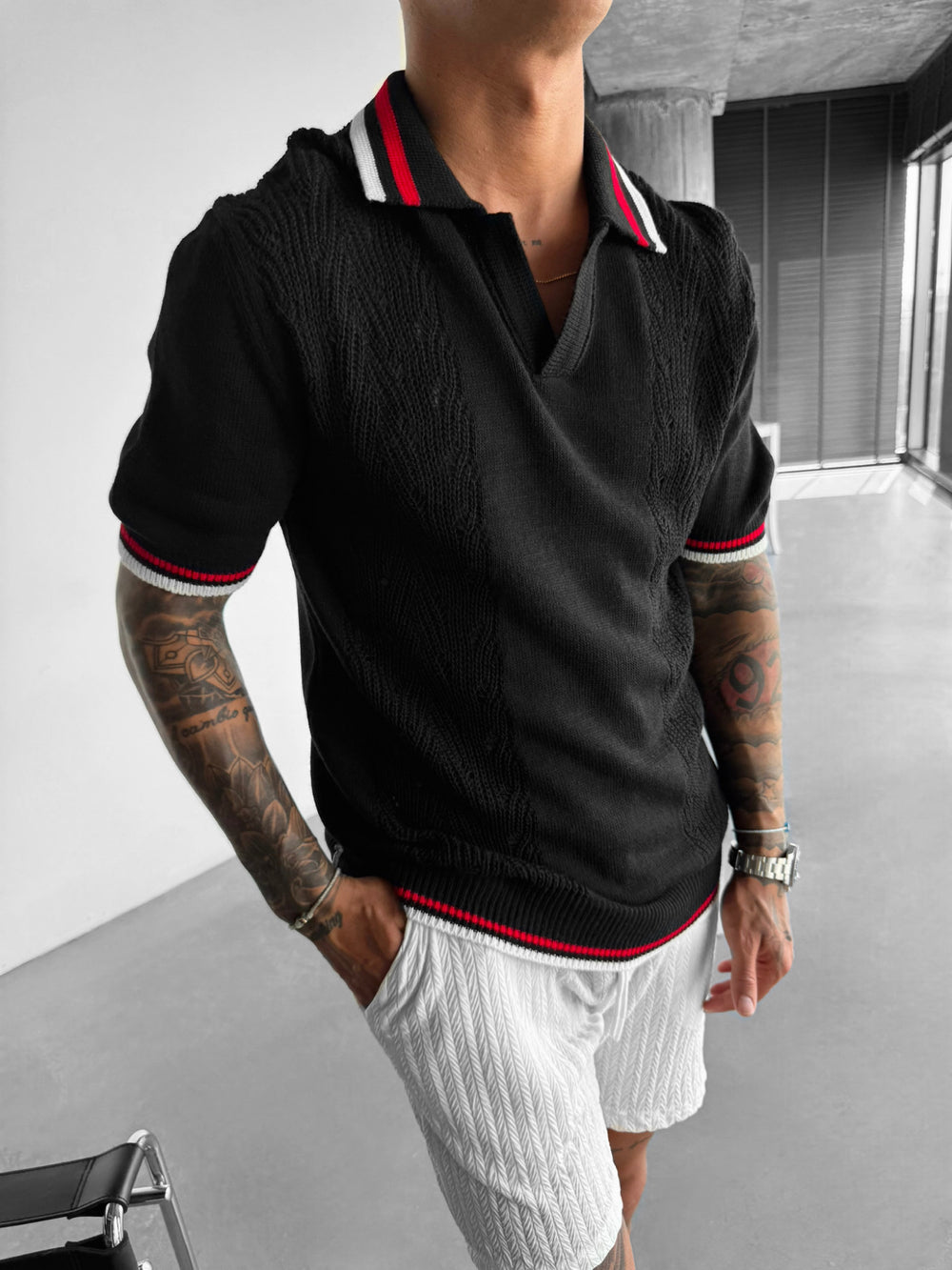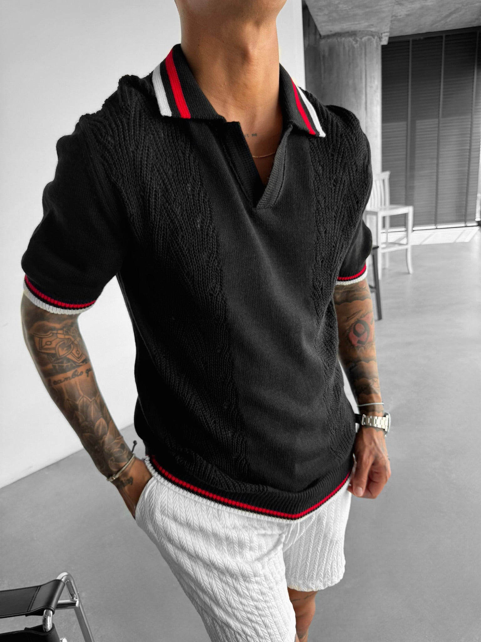 Slim Fit Detail Knit Polo T-Shirt - Black