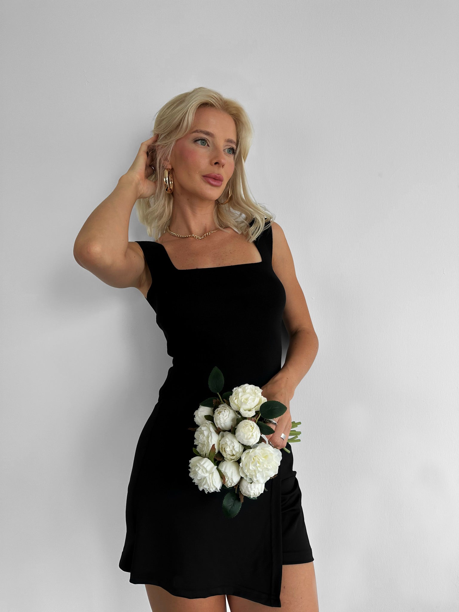 Square Neck Knit Top - Black