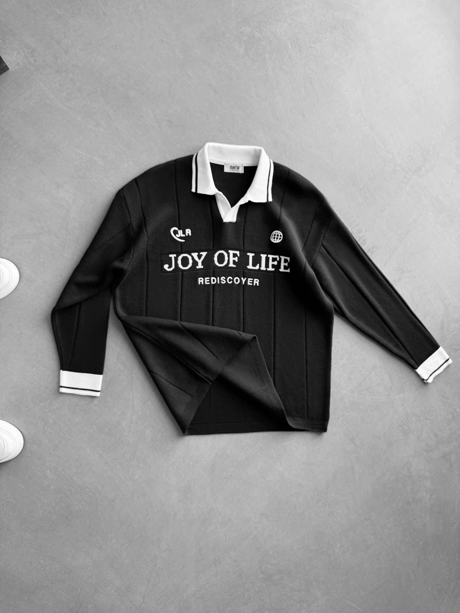 Loose Fit JLR Polo Sweater - Black and Ecru