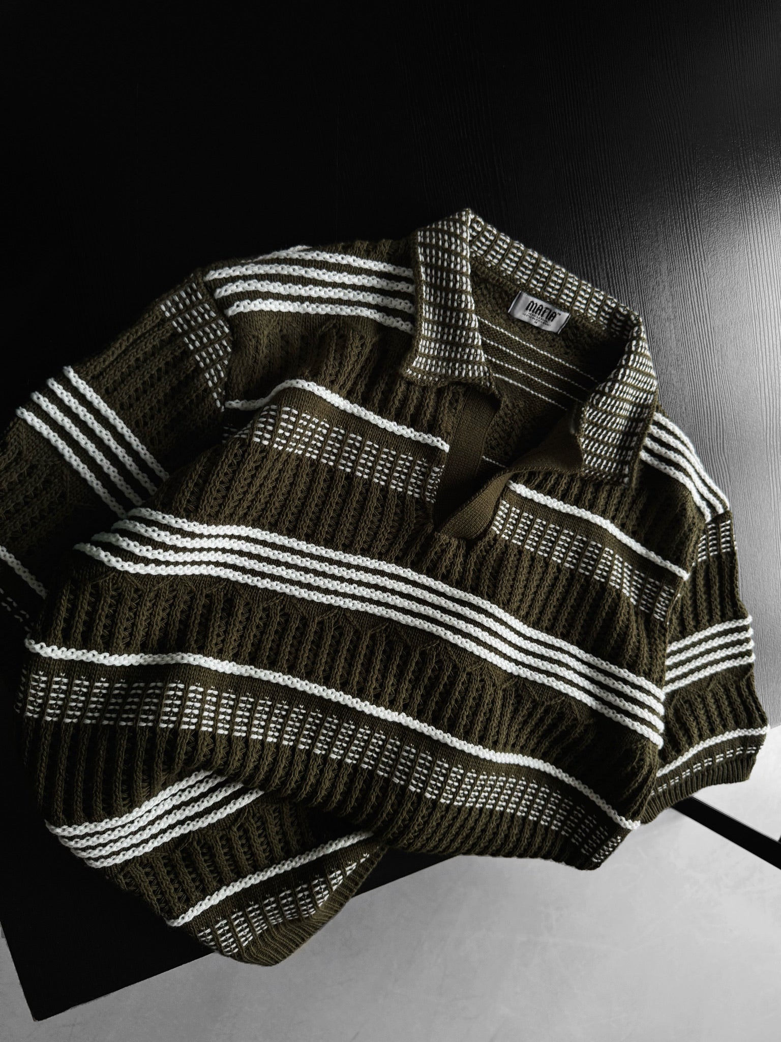 Loose Fit Patterned collar knit T-Shirt - Khaki