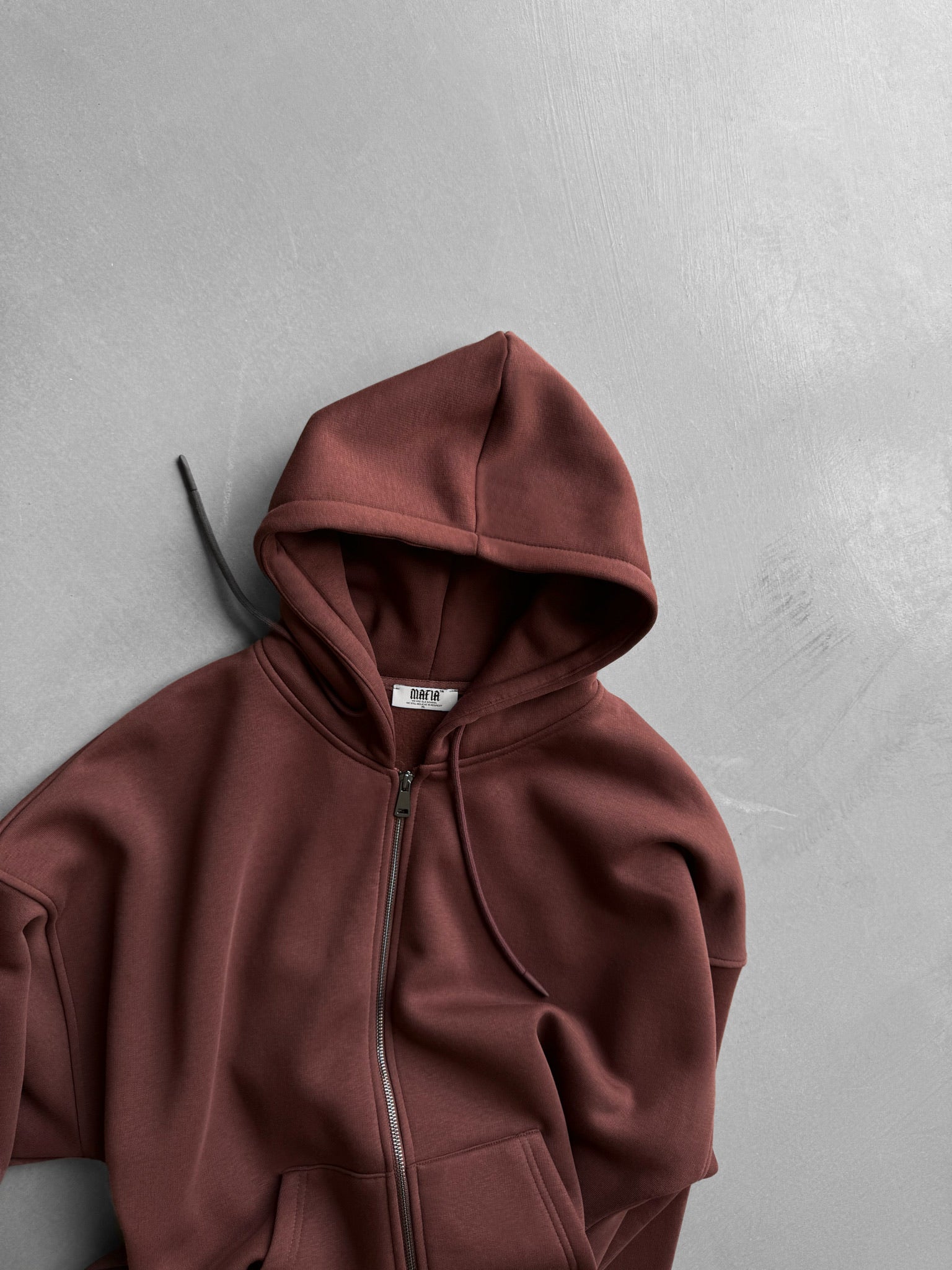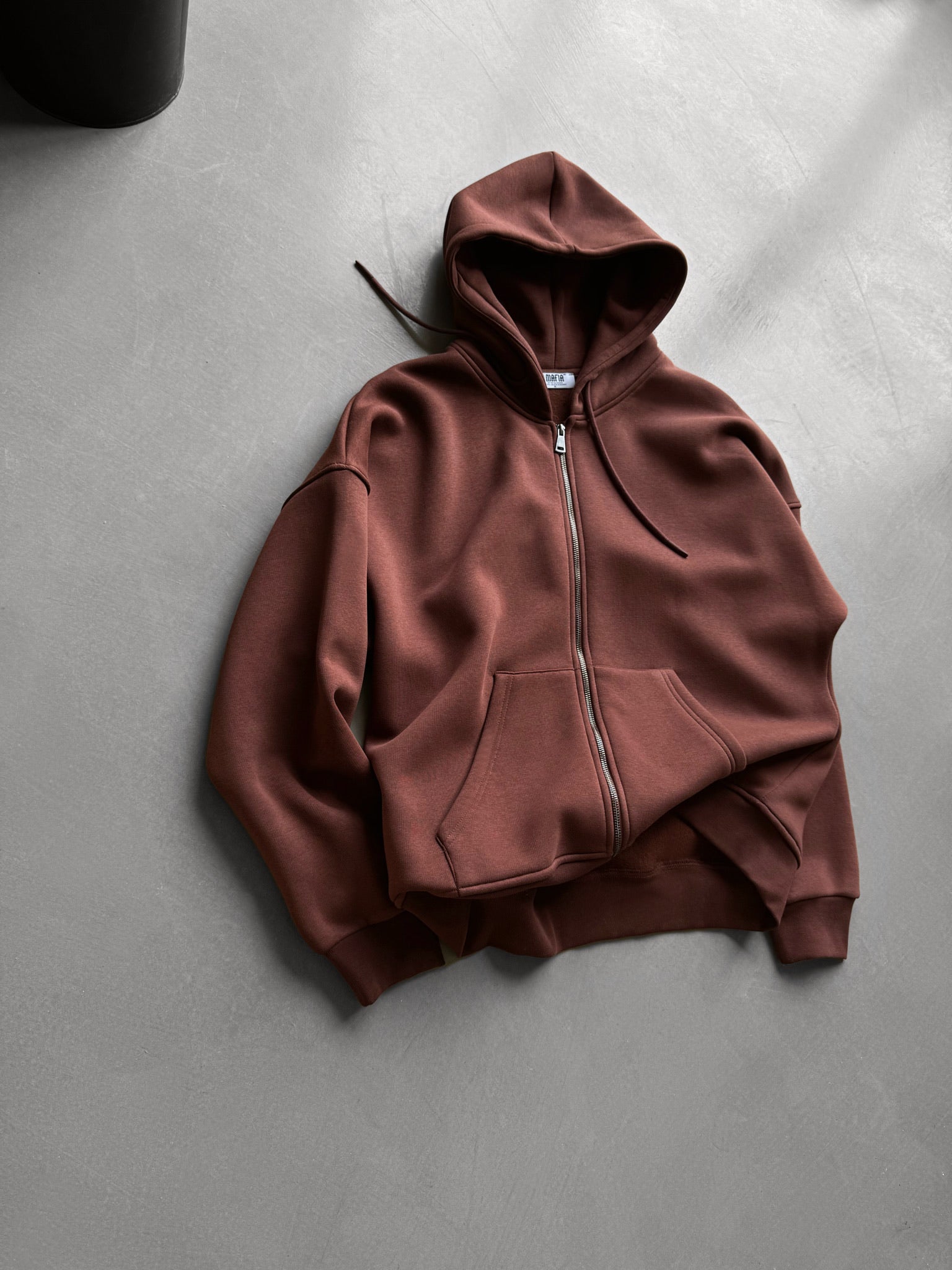 Oversize Basic Zipper Hoodie - Chocolate Brown