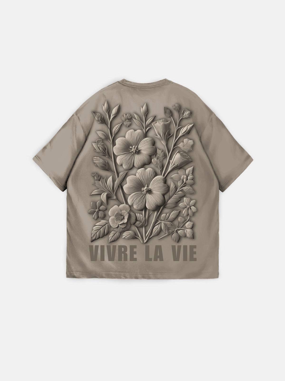 Oversize 'Vivre la Vie' T-Shirt - Beige