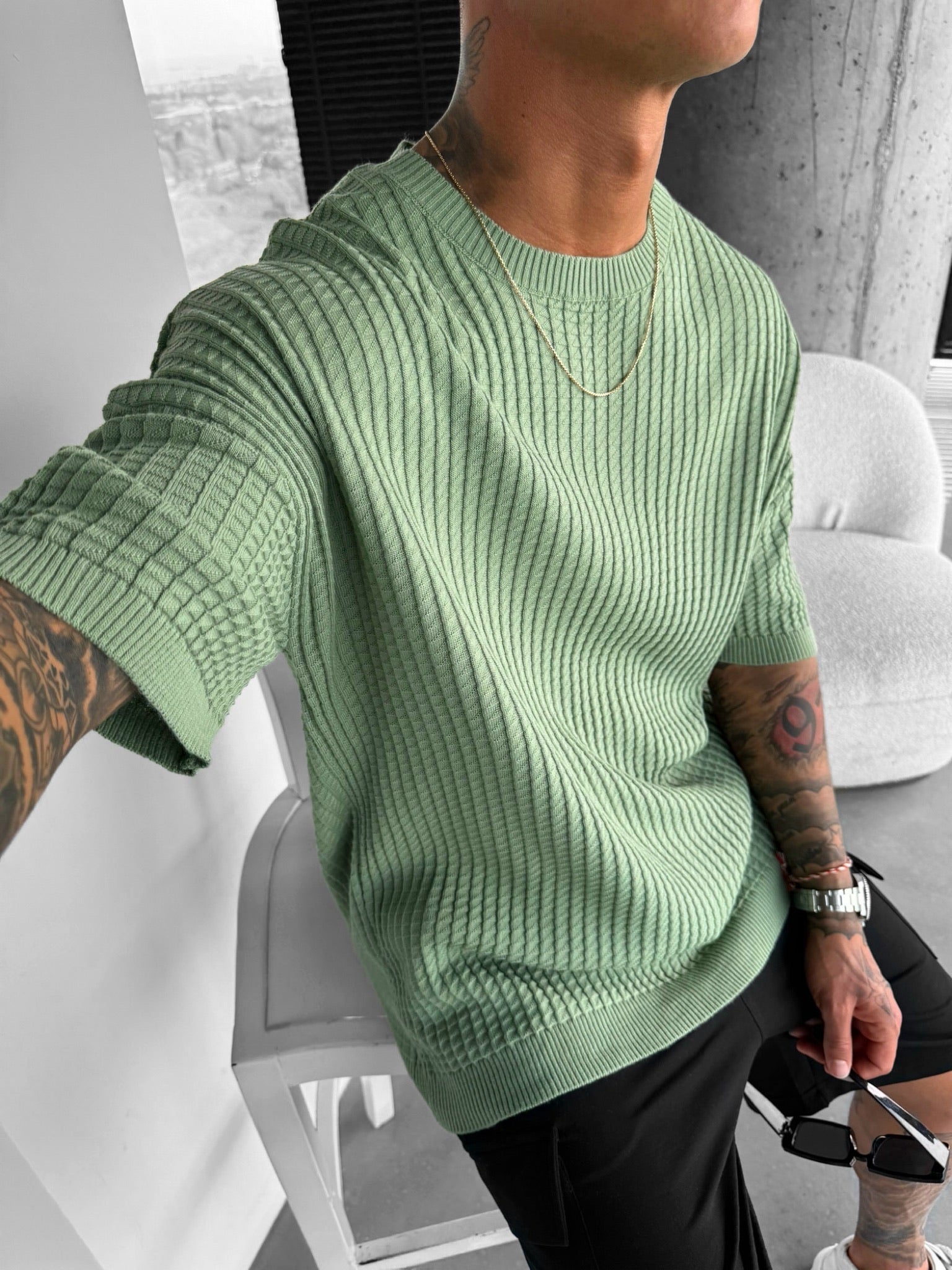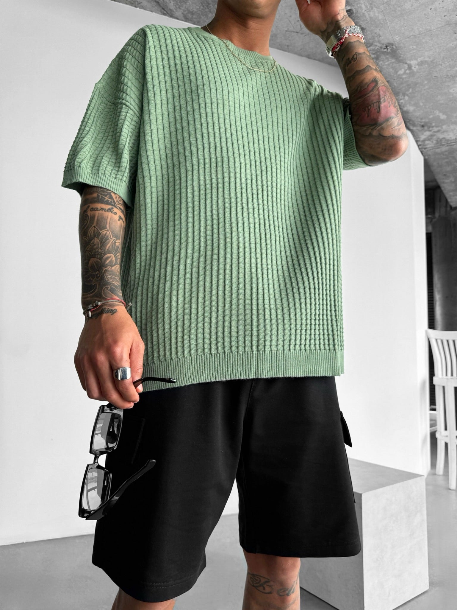 Oversize Waffle T-Shirt - Green
