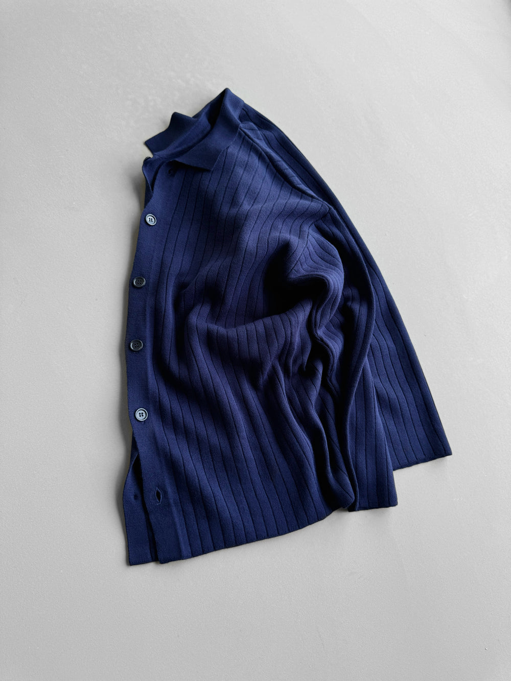 Oversize Wide Ribbed Long Arm Knit Shirt - Navy Blue